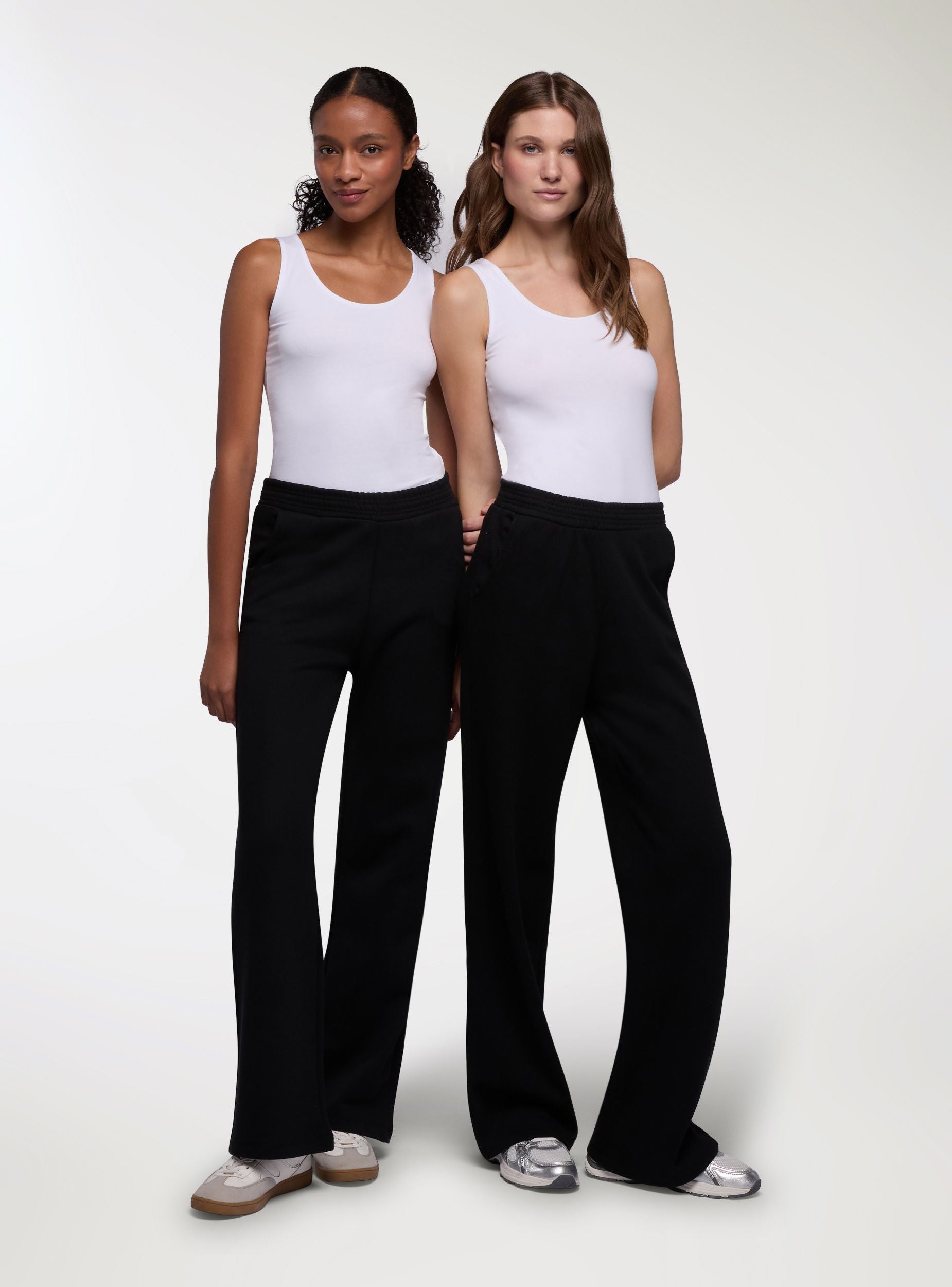 Confezione composta da 2 paia di pantaloni tuta pesanti da donna, modello a gamba ampia. Vita con elastico per un comfort quotidiano con tasche laterali a filetto. Linea regular che cade dritta e ampia, ideale per il tempo libero. Facili da abbinare a felpe con cappuccio o magliette e sneakers. Design a tinta unita, perfetti per creare outfit minimal e versatili.Dettagli