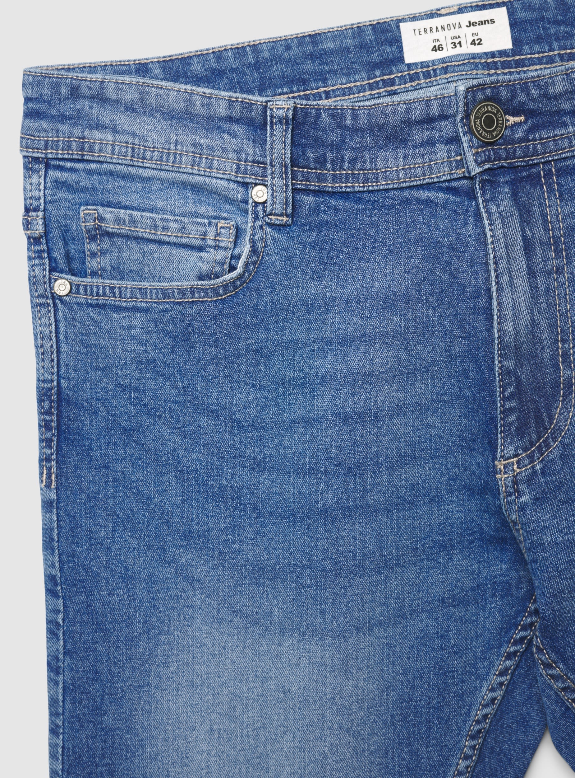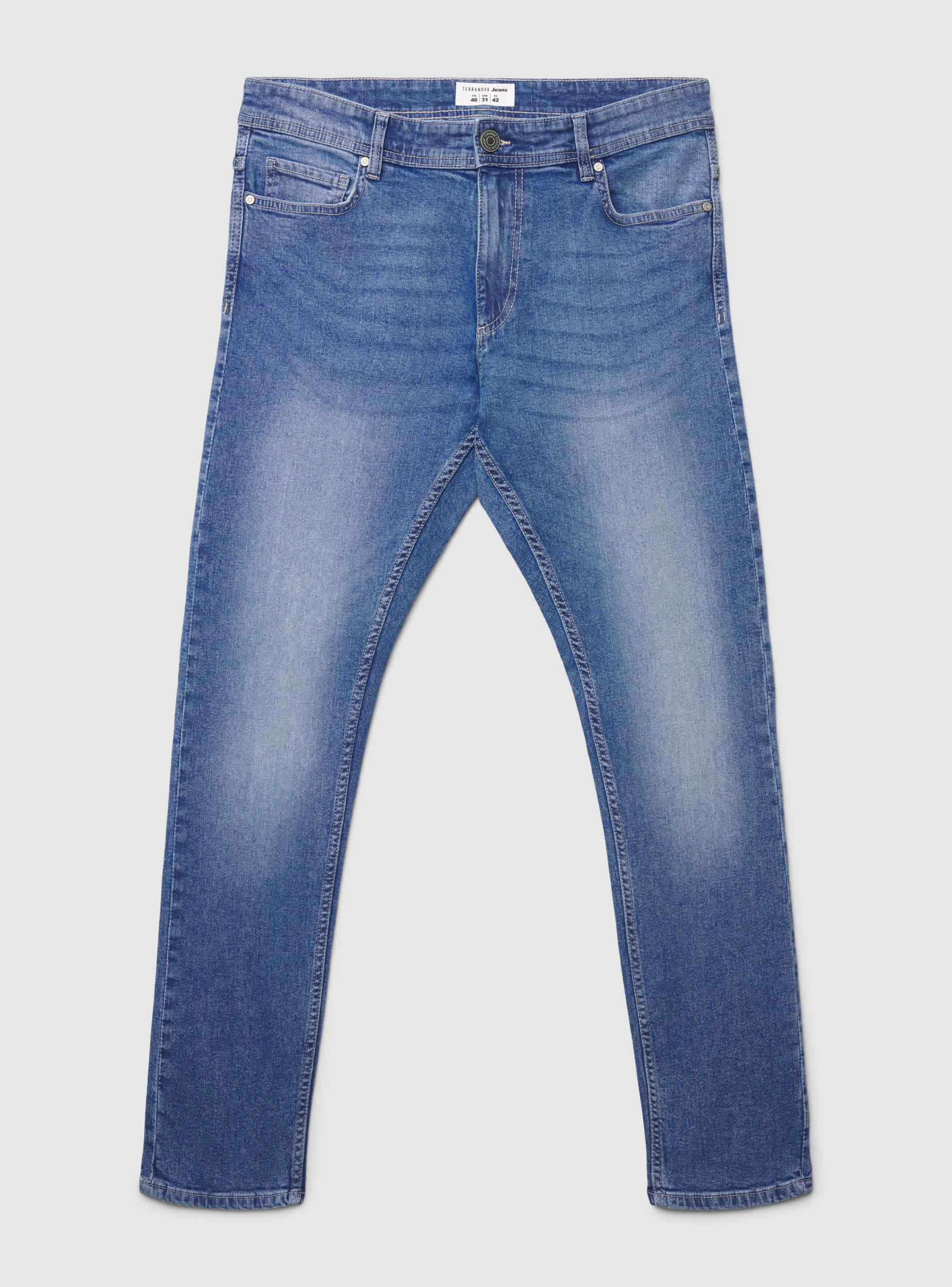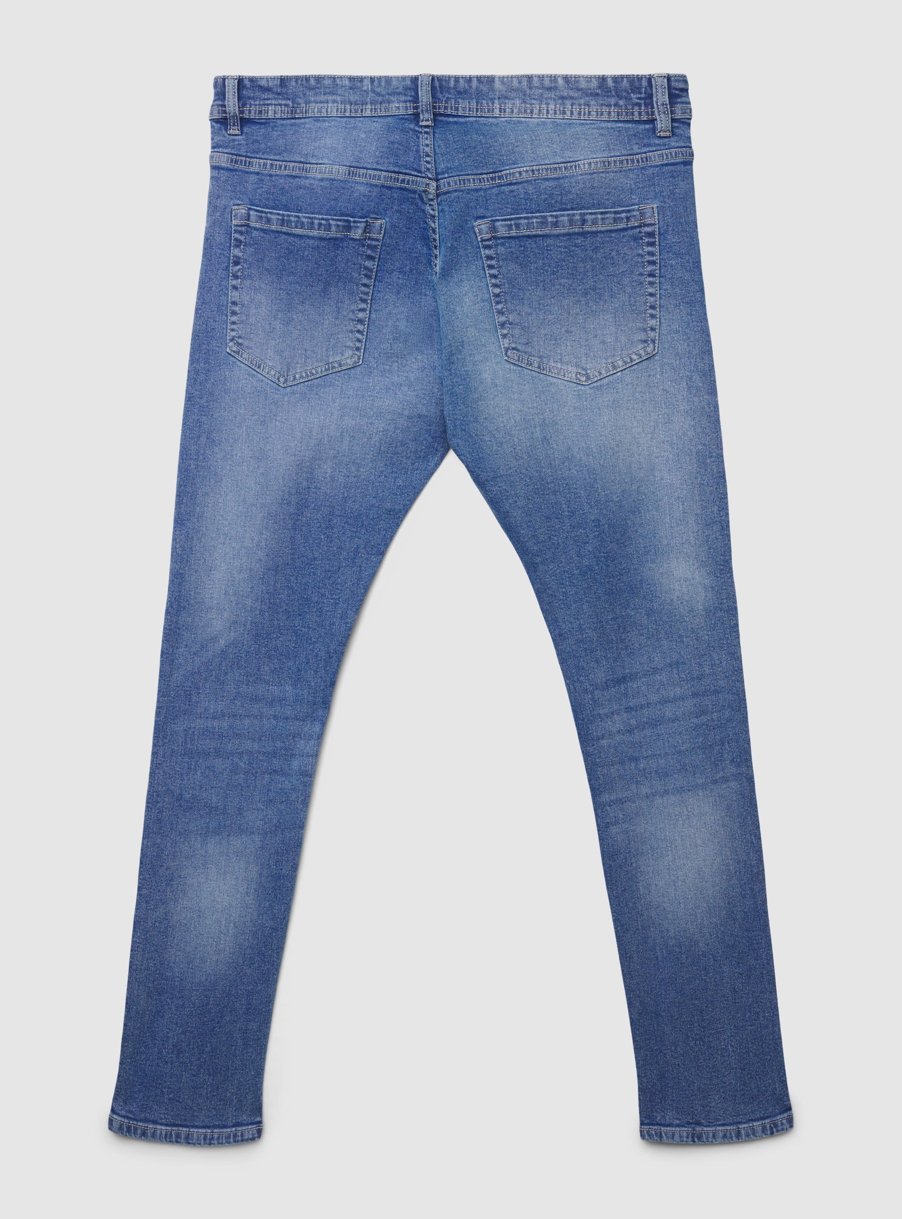 Jeans da uomo a tinta unita con lavaggio medio, pensati per ogni giorno. Modello skinny a gamba lunga con chiusura a bottone e zip. Vita media, passanti per cintura e tasche cinque. Facili da abbinare con maglietta e sneakers per un look casual, perfetti anche con camicia e cardigan.Dettagli