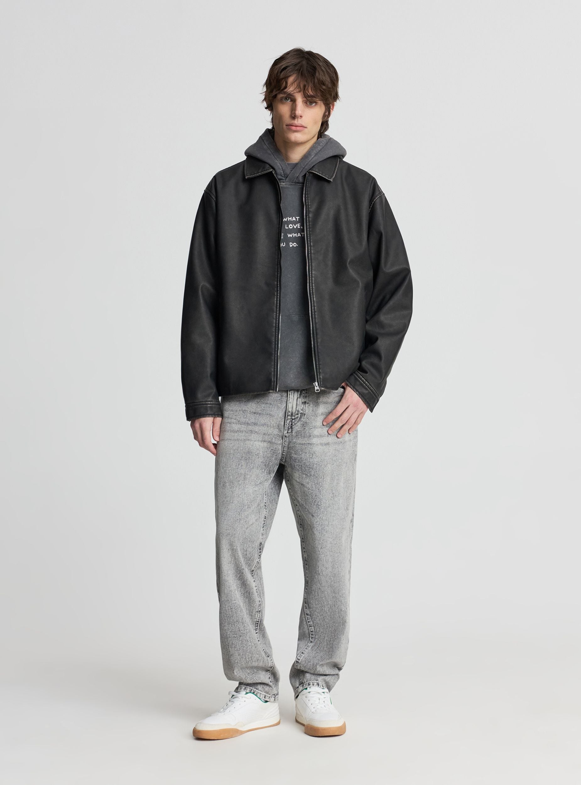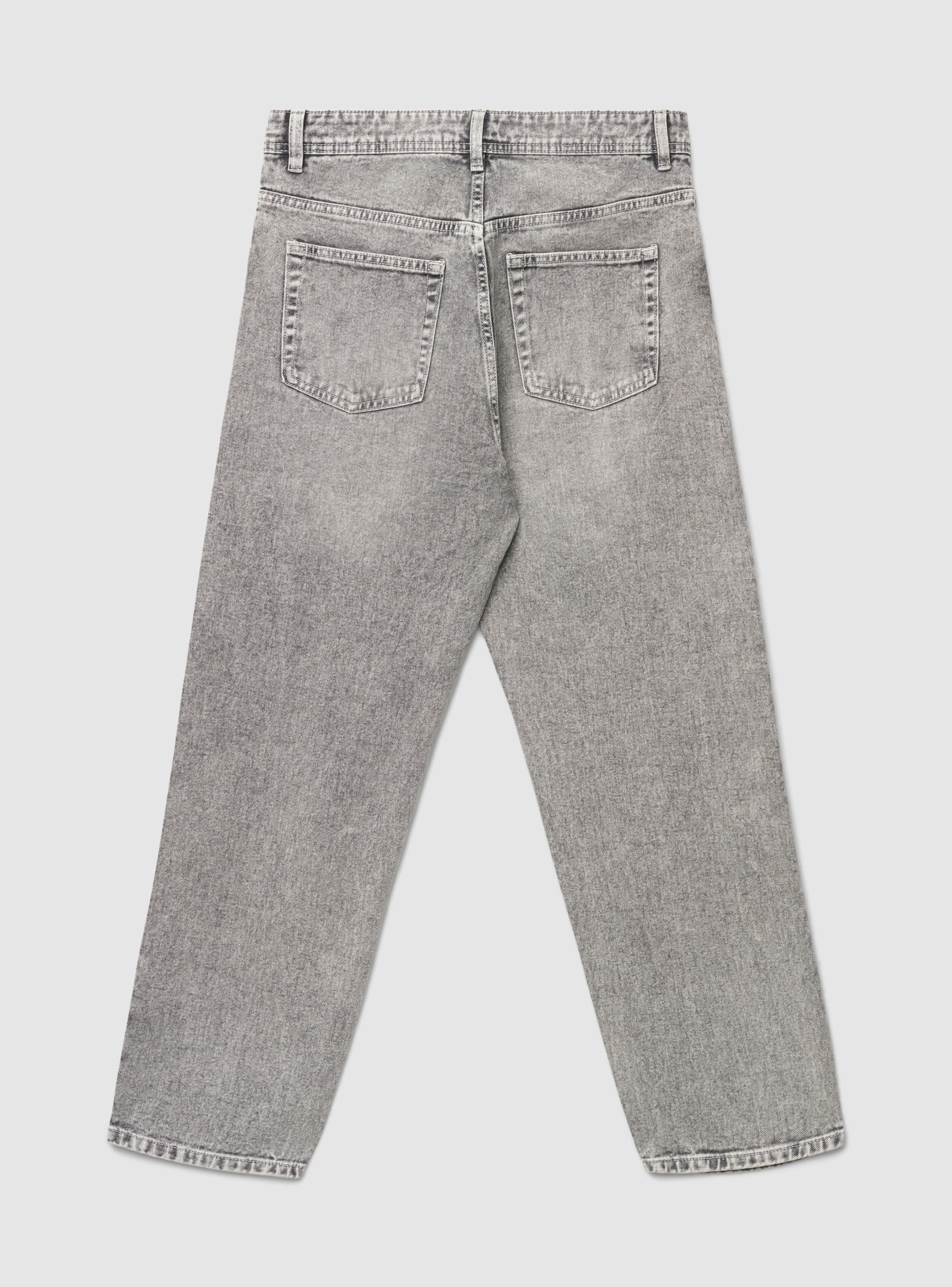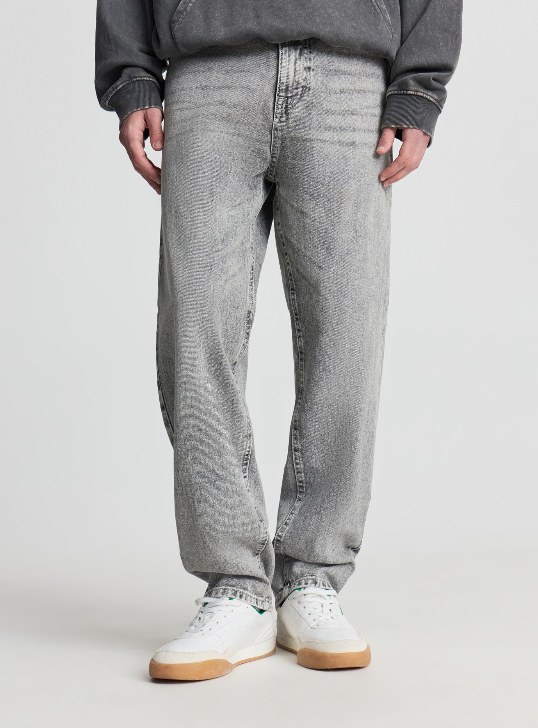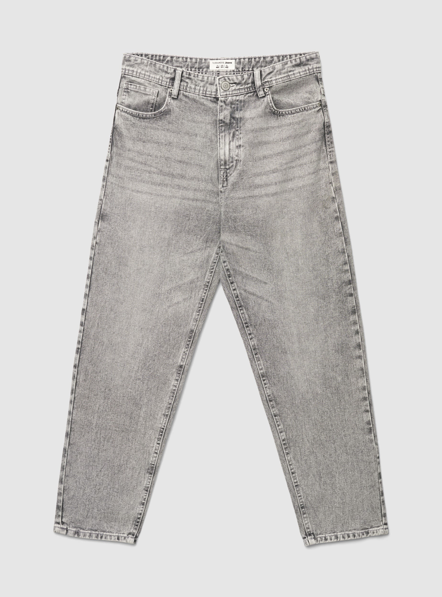 Jeans da uomo, modello baggy tinta unita. Modello a 5 tasche. Chiusura con bottone e zip e passanti per cintura. Lavaggio effetto used che dona carattere al look urbano. Versatili con t-shirt e sneakers per il tempo libero o con camicia e stivaletti per un tocco più curato.Dettagli