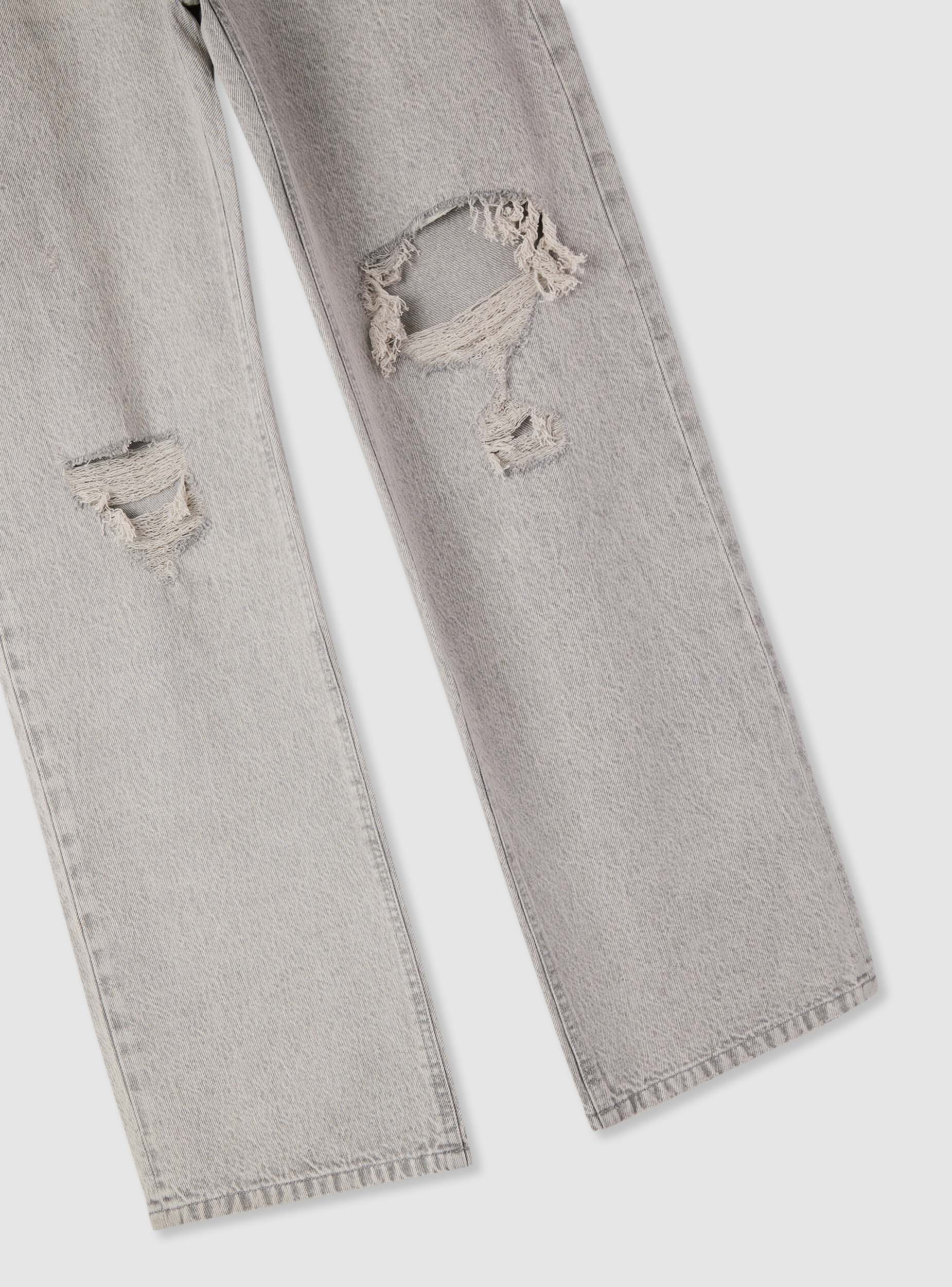 Jeans da donna a tinta unita con vestibilità wide leg e vita alta. Modello lungo con chiusura a bottone e zip, cinque tasche e dettagli con strappi sul fronte che aggiungono un tocco grintoso. Perfetti per look casual e urban, si abbinano a maglietta e sneakers o a camicia e stivaletti. Ideali per tutti i giorni grazie alla linea dritta e al design essenziale.Dettagli