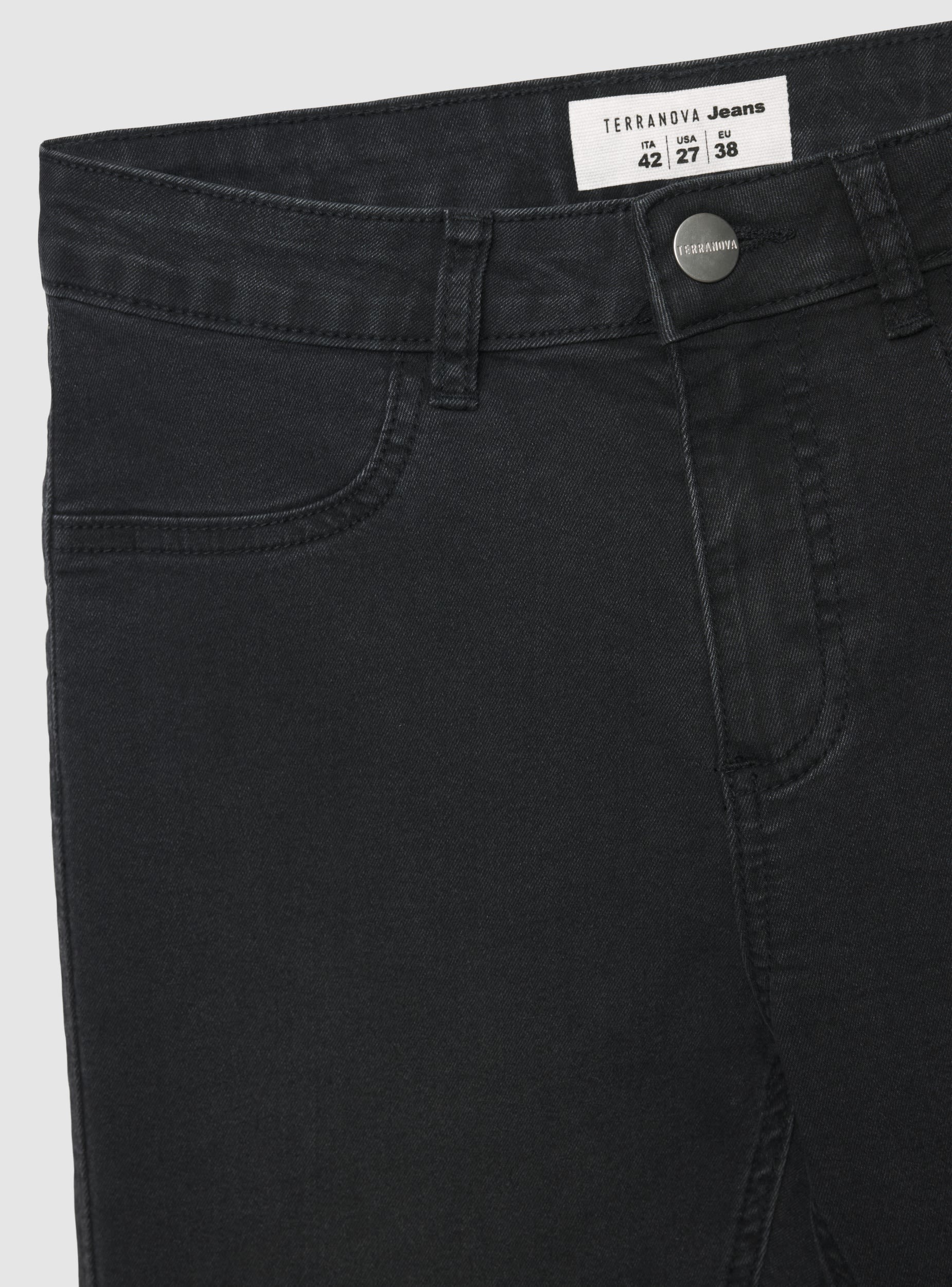 Jeggings da donna dal taglio skinny e lunghezza alla caviglia, perfetti per outfit casual o urban. Modello a tinta unita con passanti in vita e chiusura davanti con bottone e zip. Presenta tasche anteriori stile western e tasche posteriori applicate. Facili da abbinare a maglietta e sneakers per il giorno, oppure con camicia e stivaletti per la sera. Vestibilità aderente che valorizza la silhouette.Dettagli