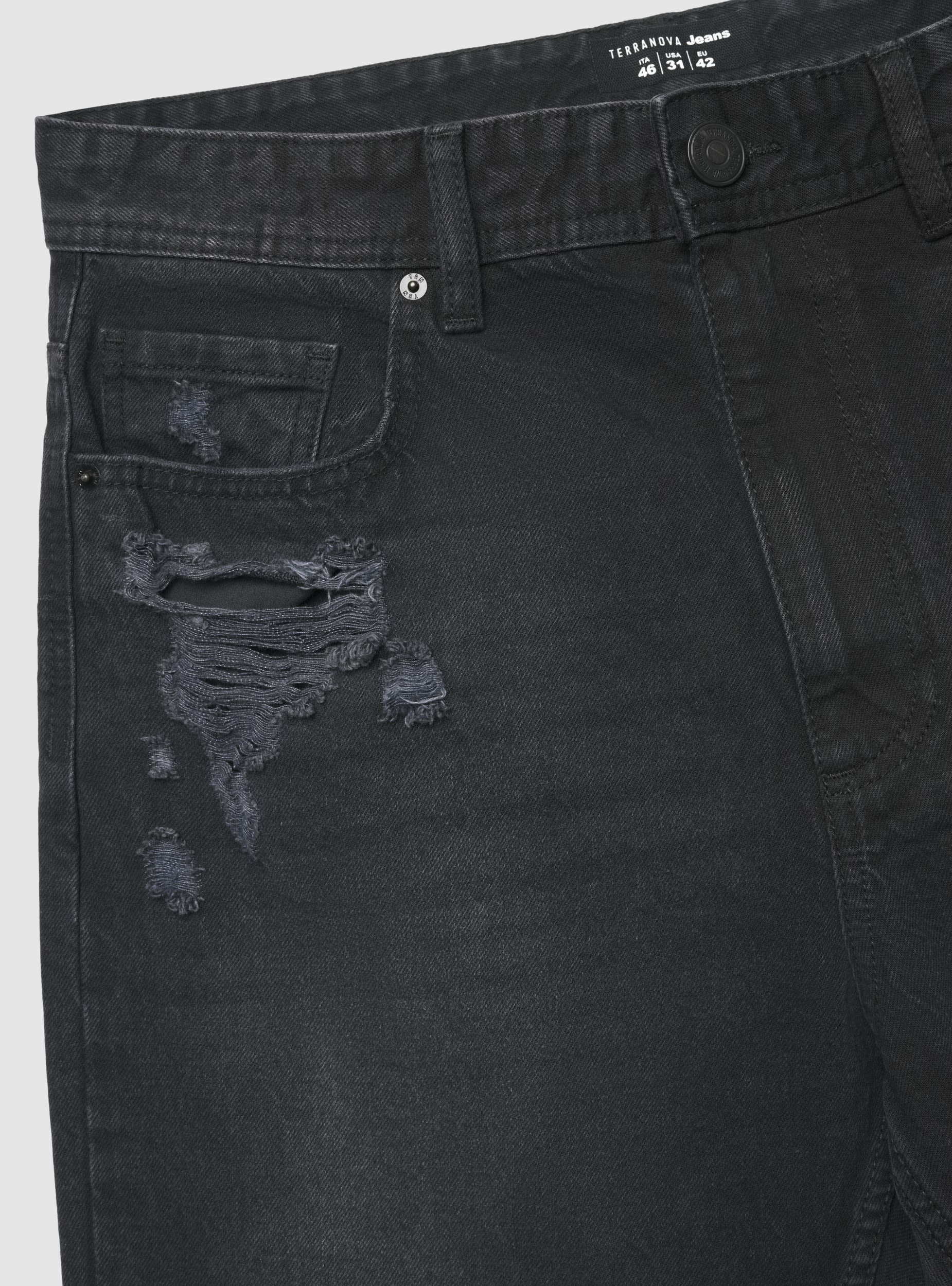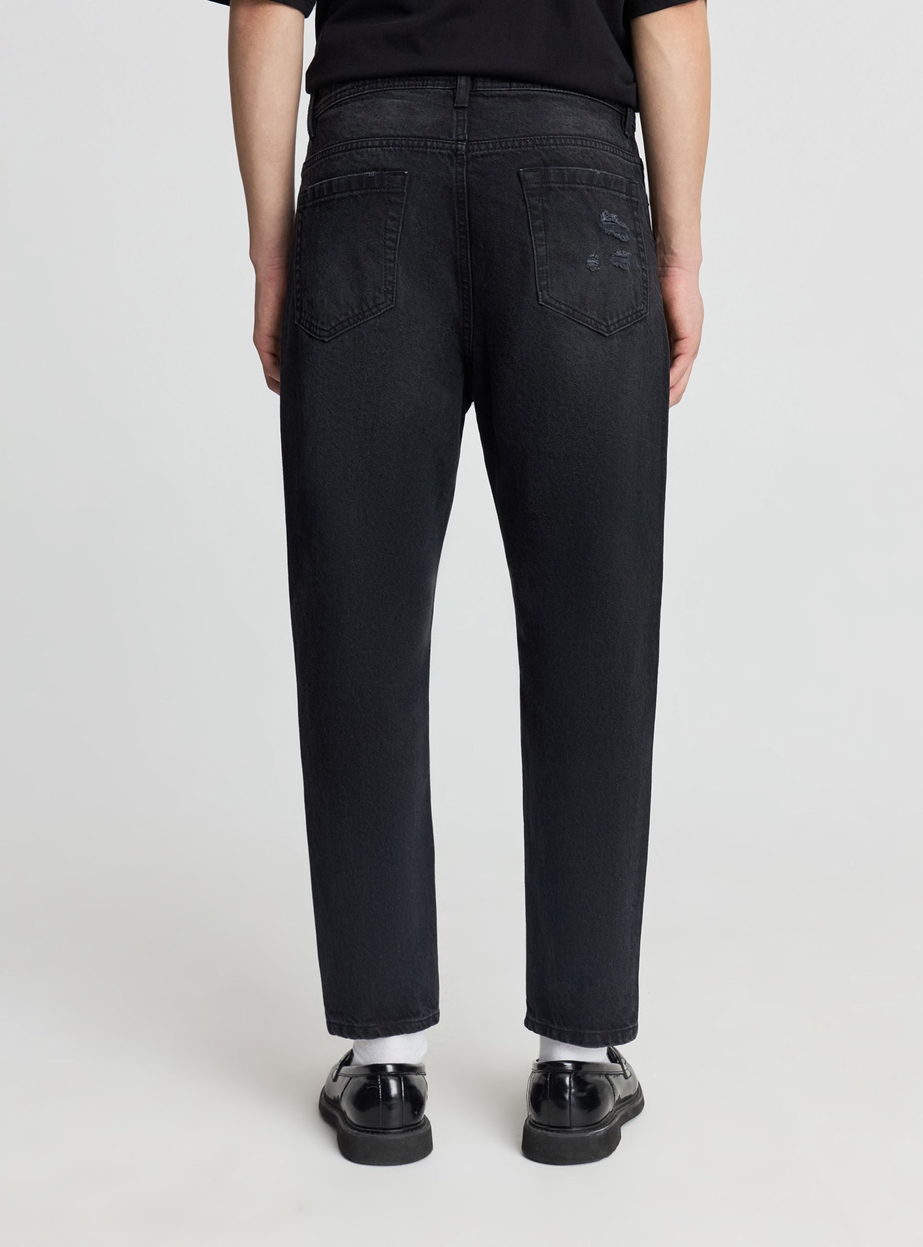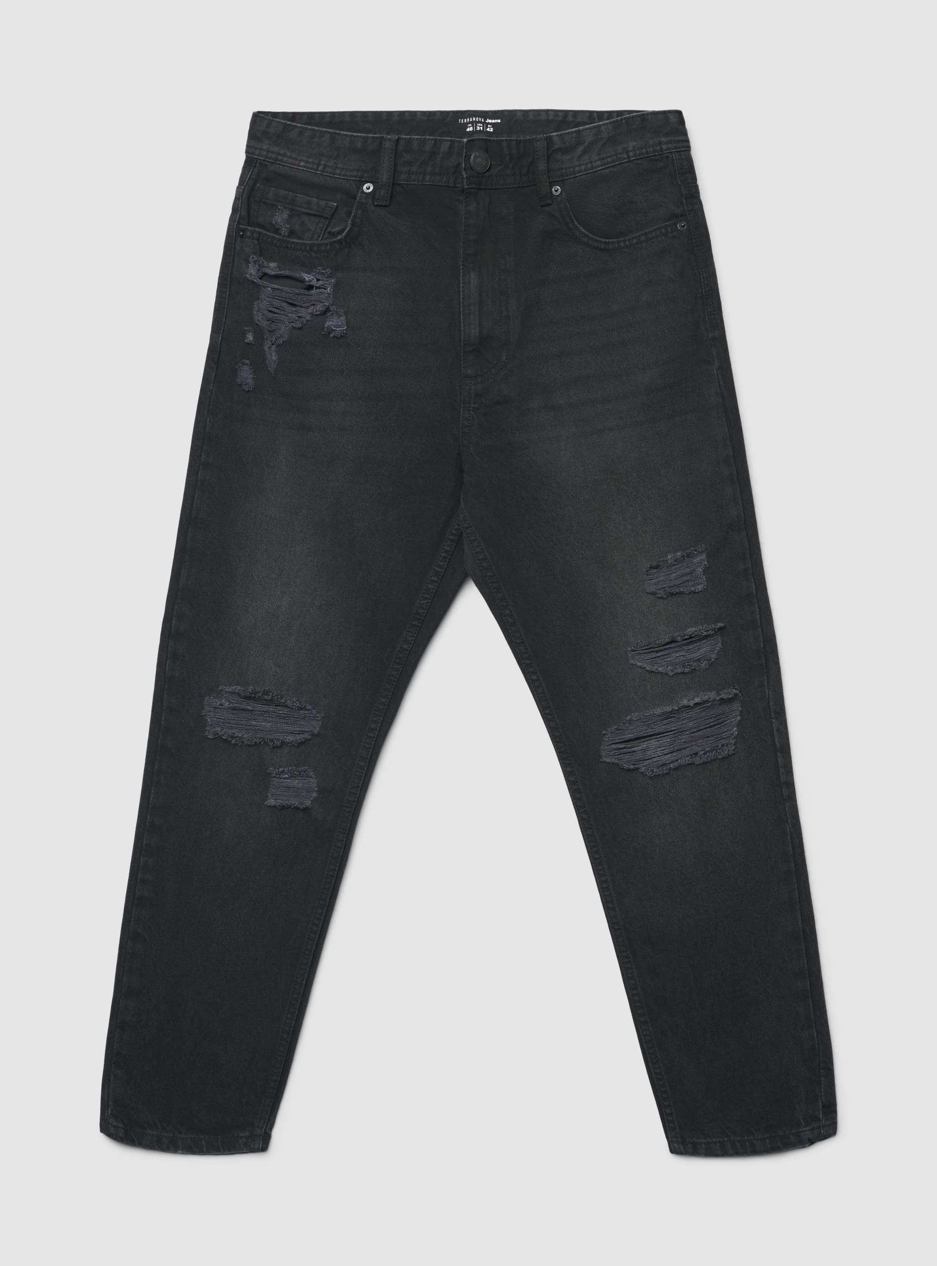 Jeans da uomo a tinta unita con vestibilità relaxed e gamba lunga, perfetti per look urbani. Presentano chiusura con bottone e zip, passanti per cintura e cinque tasche. Le abrasioni con strappi sul fronte aggiungono carattere. Facili da abbinare a felpe e sneakers per il tempo libero o a camicie e stivaletti per un outfit casual curato.Dettagli