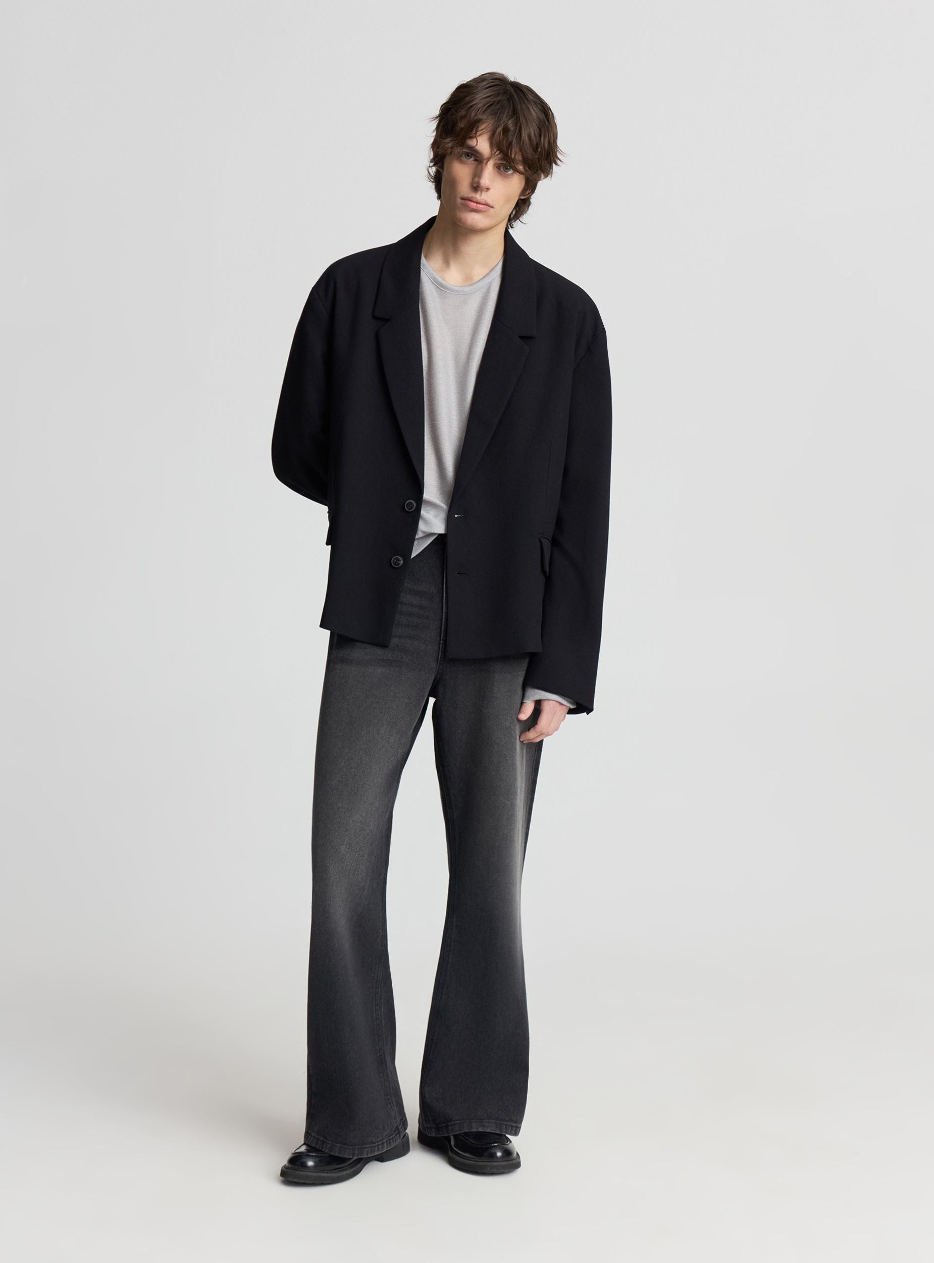 Jeans da uomo modello flare, perfetti per look casual e urban. Chiusura con bottone e zip, cinque tasche. Lavaggio denim scuro con effetto acid wash che valorizzano la linea ampia al fondo. Ideali con t-shirt e sneakers per il tempo libero o con camicia e stivaletti per un outfit più curato.Dettagli
