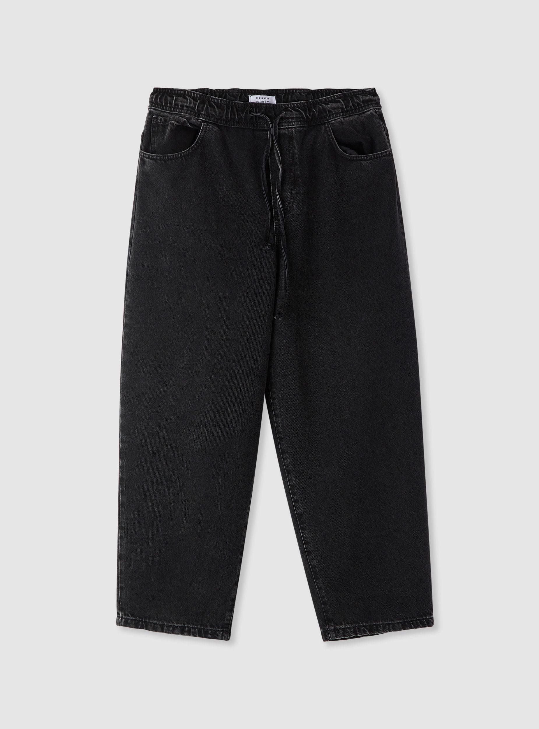 Jeans da uomo a tinta unita con vestibilità ampia e vita elasticizzata con coulisse, ideale per il tempo libero e look urban. Modello lungo con gamba dritta e tasche laterali. Perfetto con felpa e sneakers per un outfit casual oppure con camicia e anfibi per un tocco più deciso.Dettagli