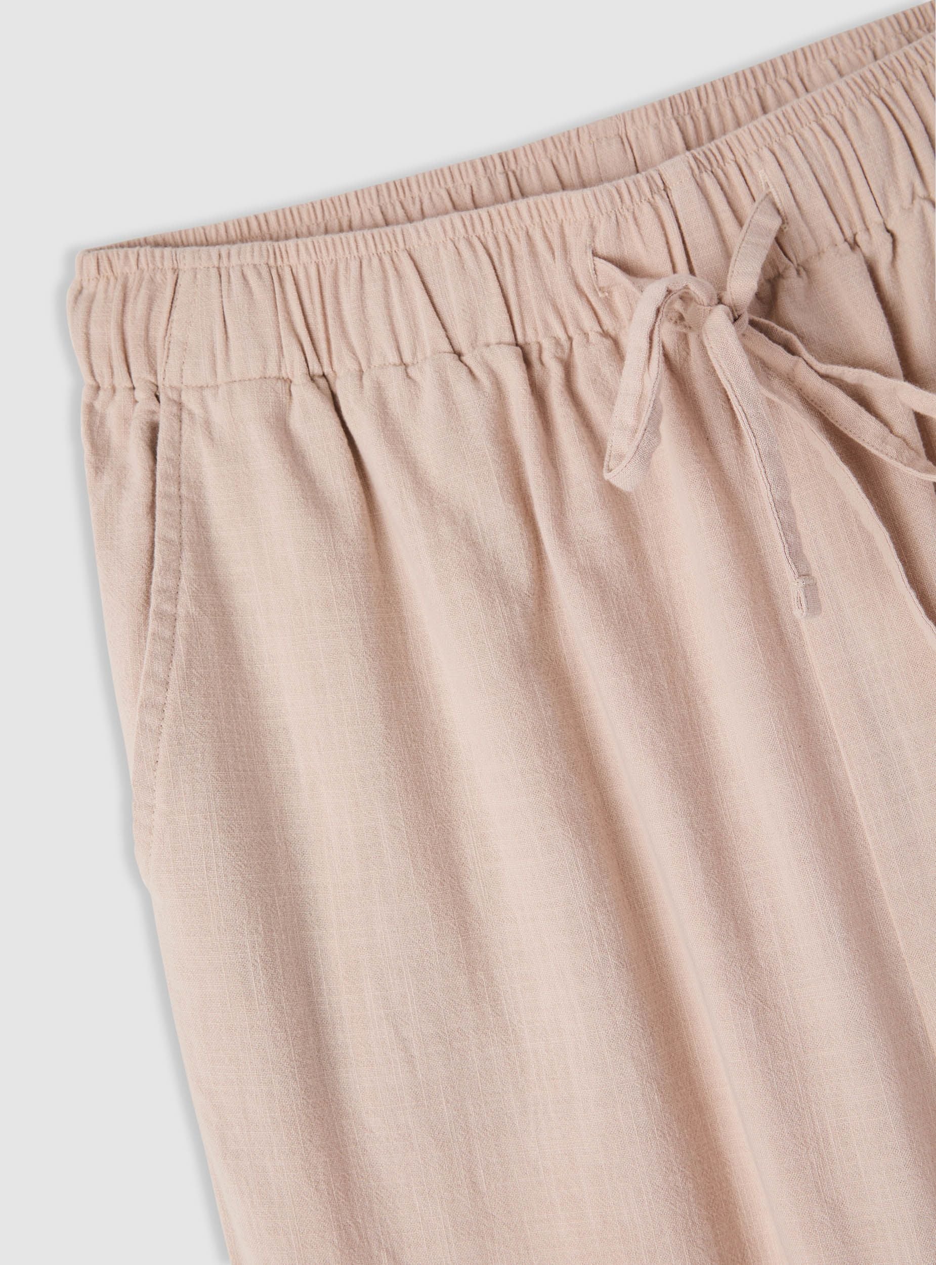Pantaloni lunghi da donna in tessuto cotone a tinta unita, perfetti per il tempo libero e look casual. Modello wide leg con vestibilità confortevole e vita elasticizzata regolabile tramite coulisse. Presentano tasche laterali a filetto e linea morbida che cade dritta fino alla caviglia. Facili da abbinare a maglietta e sandali o a una camicia leggera per outfit rilassati dalla silhouette ariosa.Dettagli