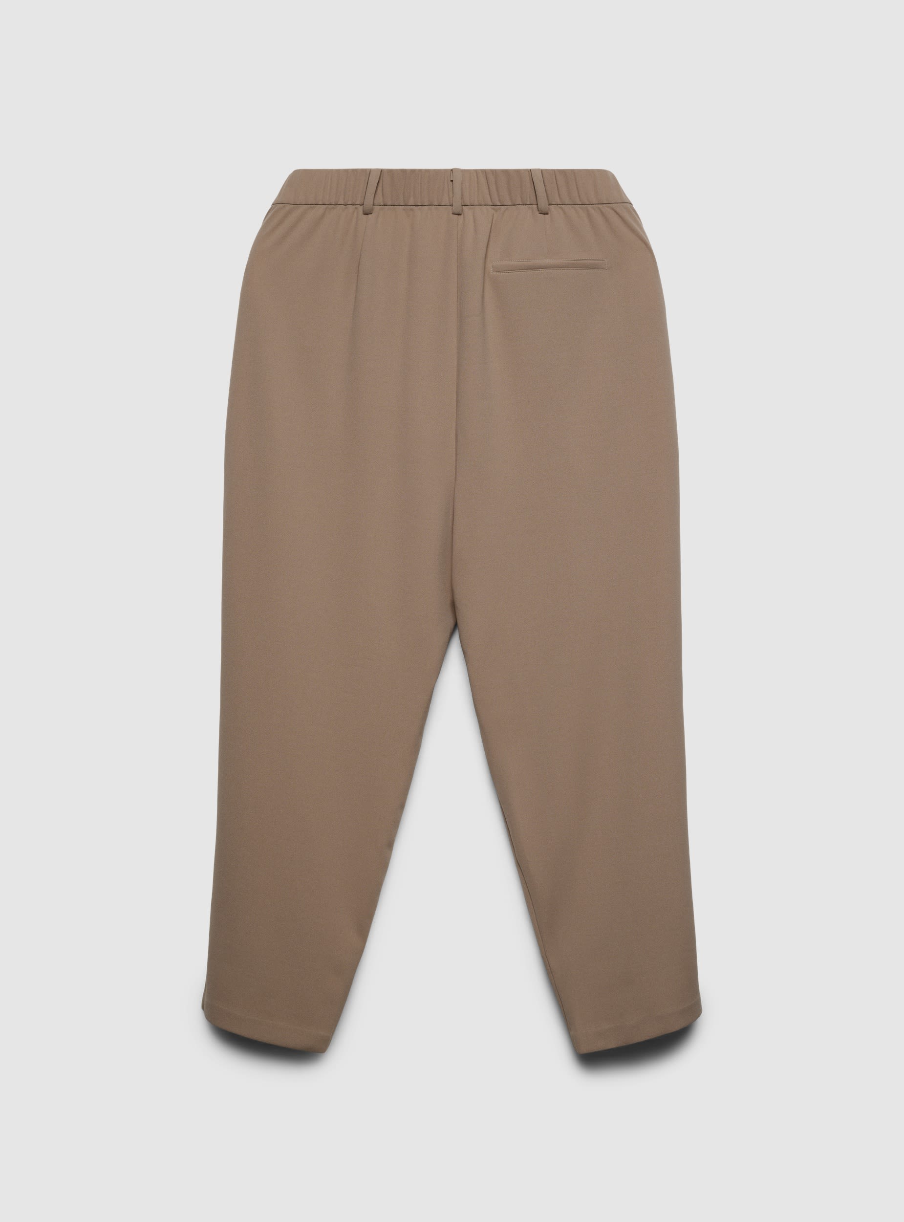 Pantaloni da donna a tinta unita con linea dritta e vita regolare. Chiusura frontale con bottone e zip, passanti per cintura e elastico sul retro per maggiore comfort. Tasche anteriori alla francese e taschino posteriore a filetto. Perfetti per il lavoro o il tempo libero, si abbinano a camicie, blazer o magliette per look versatili dalle scarpe eleganti alle sneakers.Dettagli