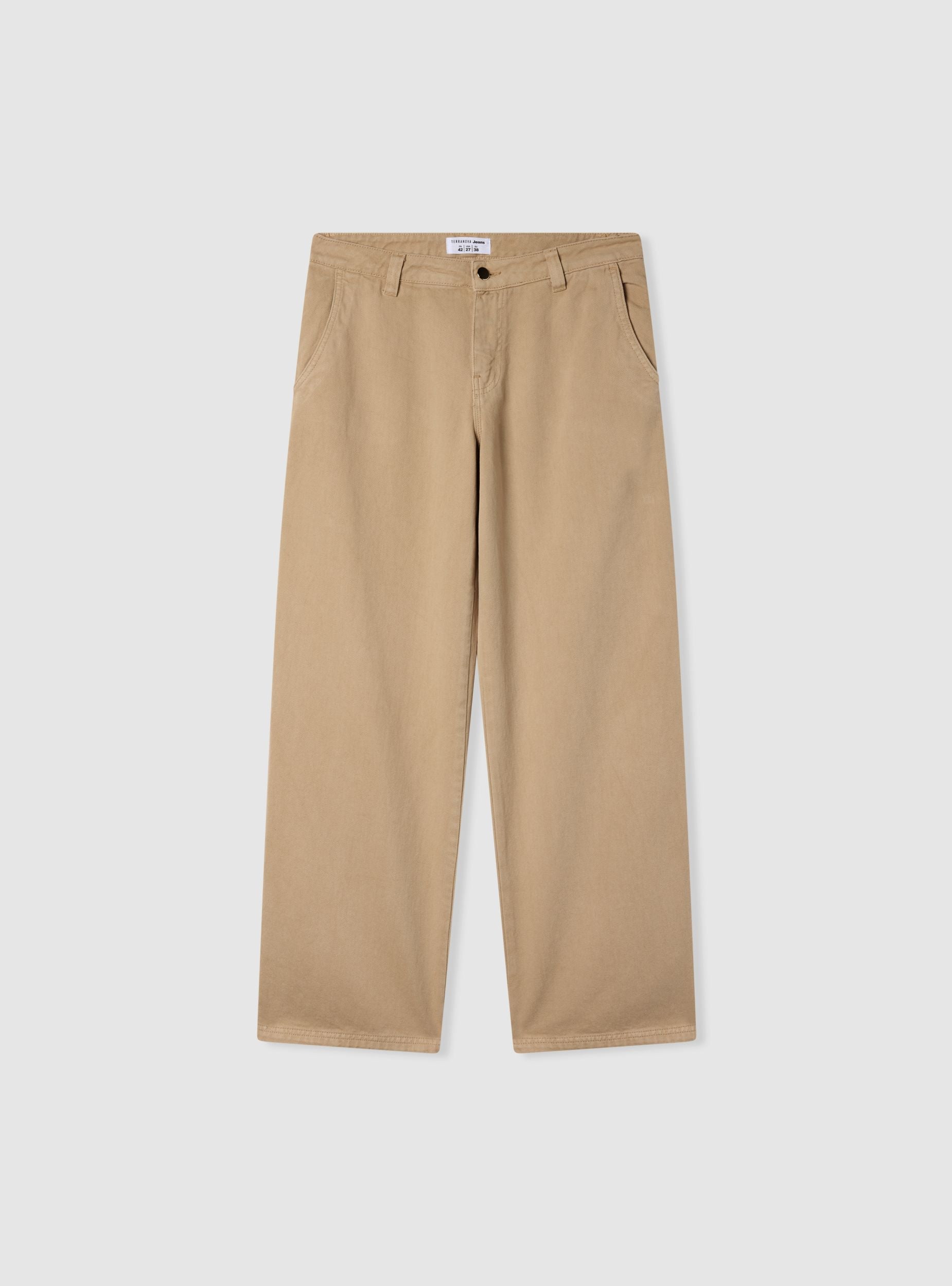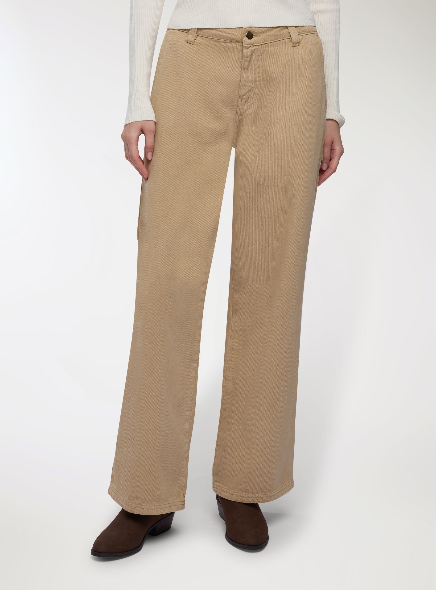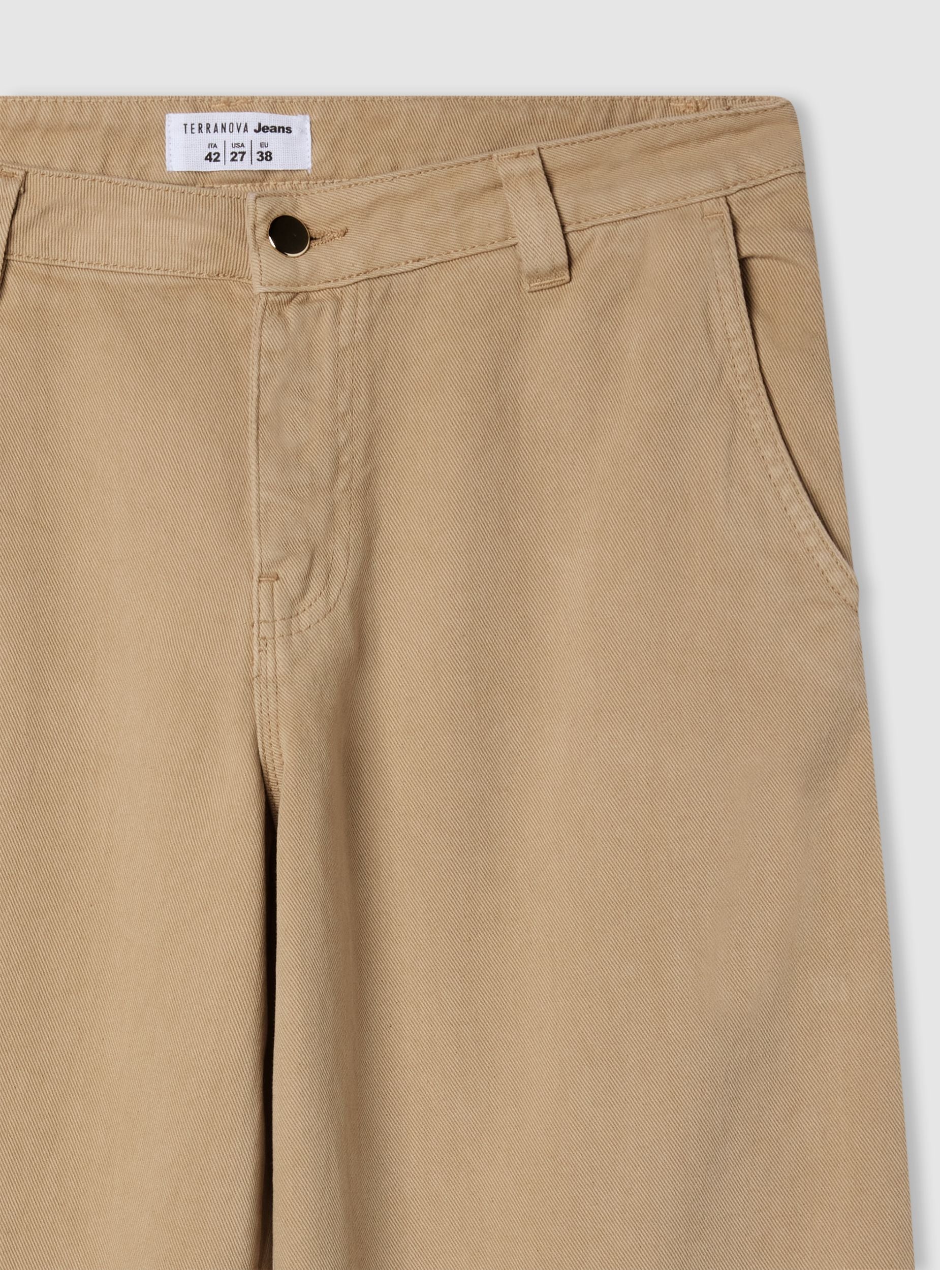 Pantaloni lunghi da donna a tinta unita in cotone, modello carpenter. Chiusura con bottone e zip frontale, tasche laterali. Perfetti per outfit casual chic con camicie o magliette, abbinabili a sneakers o mocassini. La vestibilità regolare offre comfort quotidiano e un look curato ideale per l’ufficio e il tempo libero.Dettagli