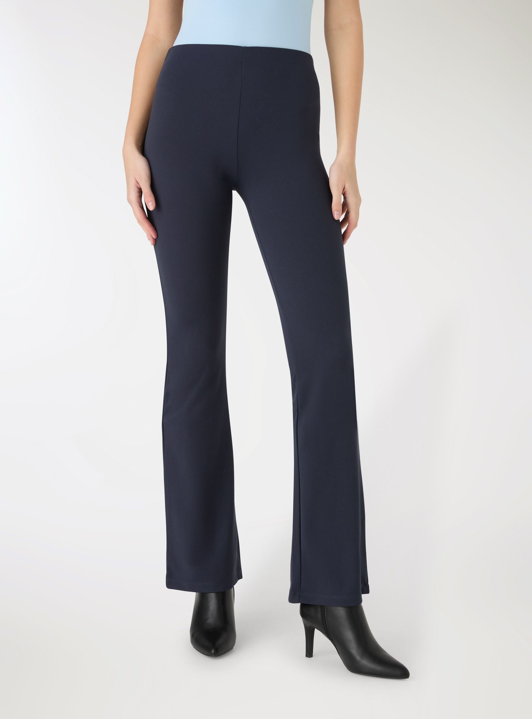 Pantaloni da donna tinta unita con linea a zampa e vita media, perfetti per look quotidiani o serate informali. Il taglio lungo slancia la figura. Facili da abbinare a maglietta e sneakers per il giorno, oppure a camicia e blazer per un outfit più curato. Ideali per un design essenziale e confortevole.Dettagli
