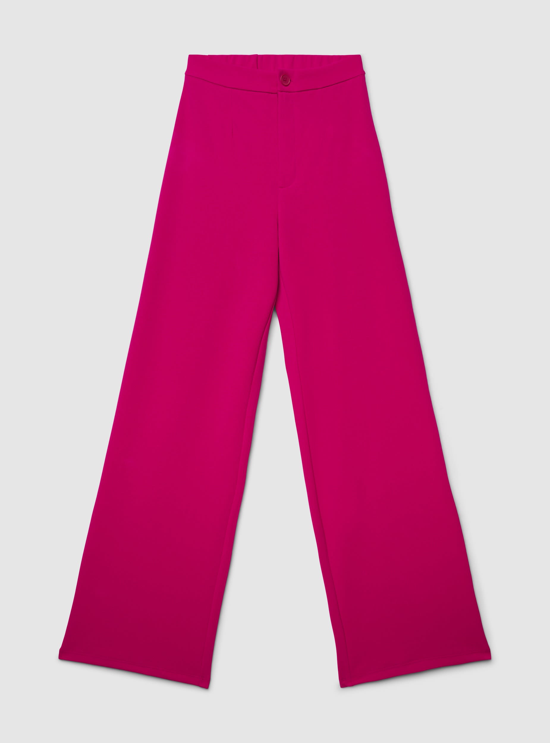 Pantaloni da donna a tinta unita con linea wide leg. Chiusura frontale con bottone e zip, retro elasticizzato per maggiore comfort. Ideale per ufficio, eventi informali o serate. Si abbinano a camicie o top aderenti e blazer per look curati. Vestibilità regolare con gamba ampia che slancia la figura.Dettagli