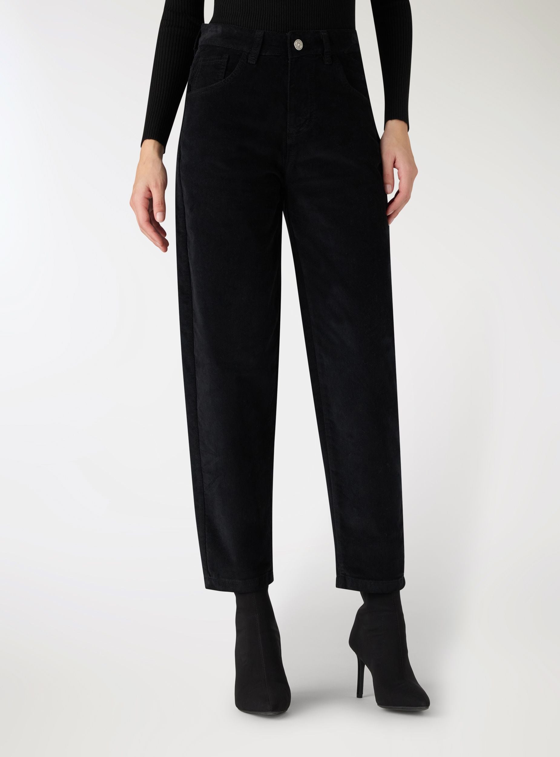 Pantaloni da donna a tinta unita con taglio dritto e risvolto al fondo, perfetti per il tempo libero o l’ufficio. Chiusura con bottone e zip, passanti in vita e 5 tasche. Vestibilità regular che valorizza senza costringere e lunghezza alla caviglia facile da abbinare con maglietta basica e sneakers oppure con camicia e mocassini per un look curato.Dettagli