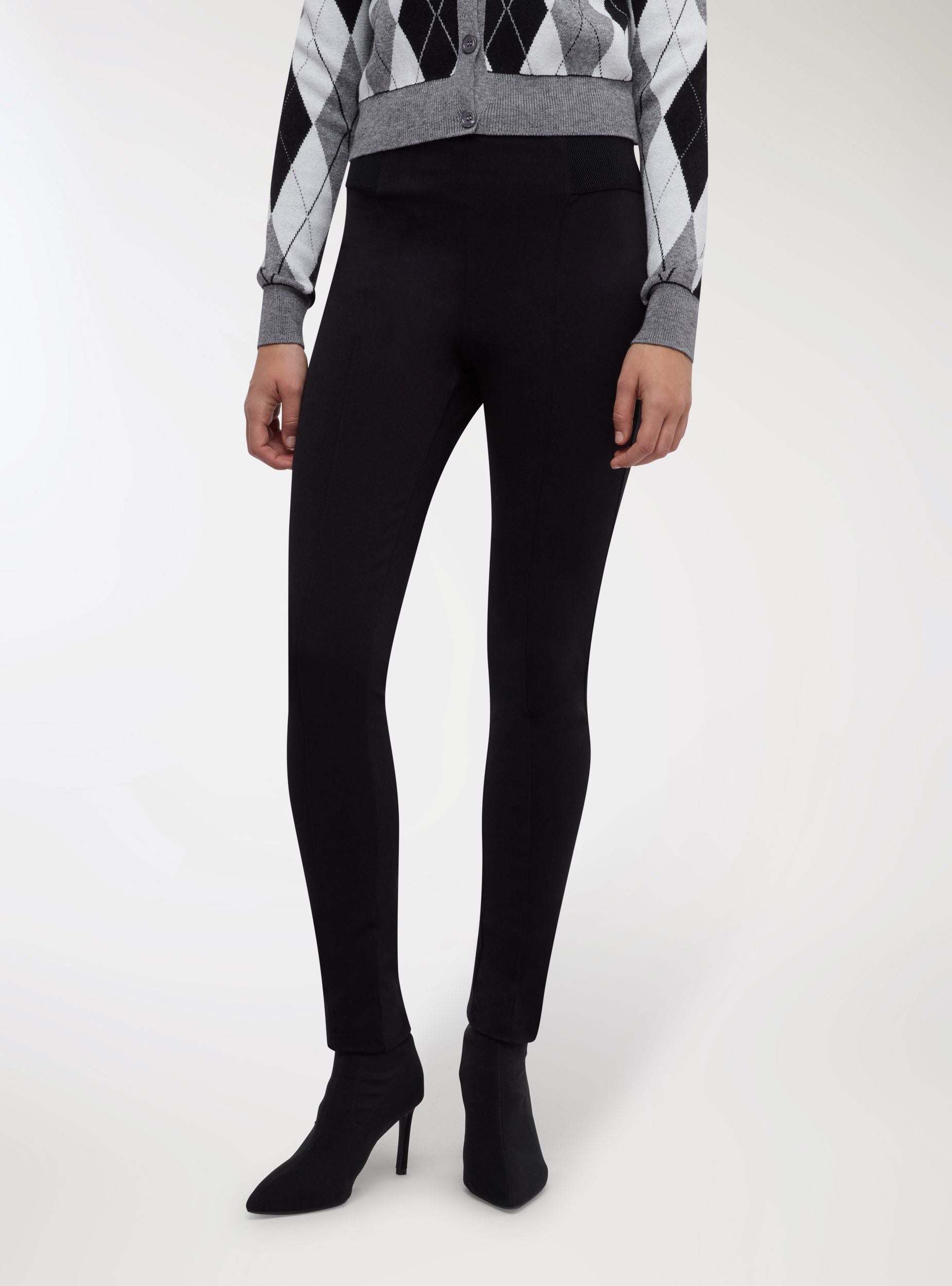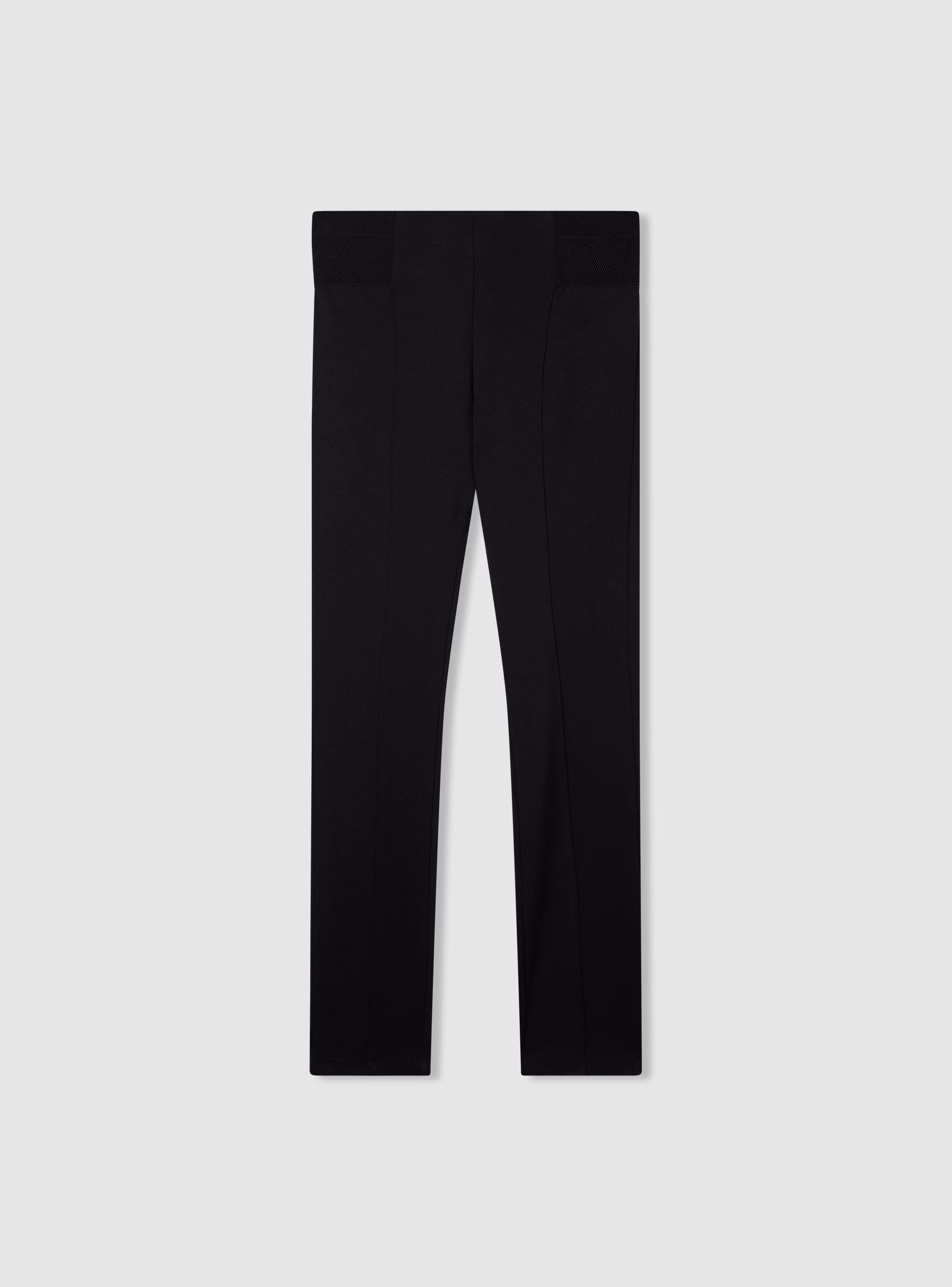 Pantaloni da donna a tinta unita con linea dritta e vita elasticizzata che garantisce comfort per tutta la giornata. Modello lungo con cucitura centrale che slancia la gamba e pannelli elastici laterali in rete per maggiore aderenza. Ideali per outfit casual chic con maglietta e sneakers o per l’ufficio con camicia e blazer.Dettagli