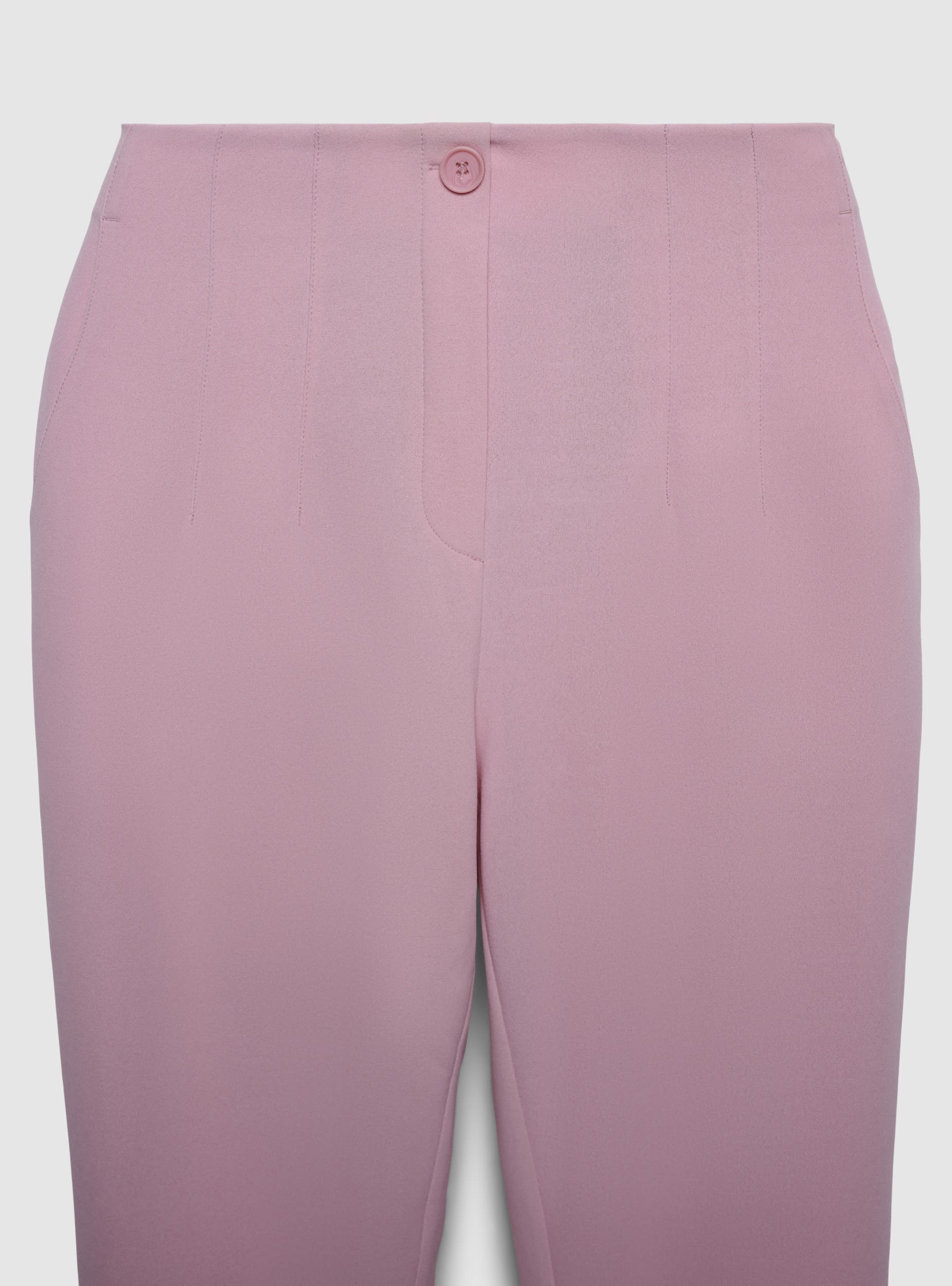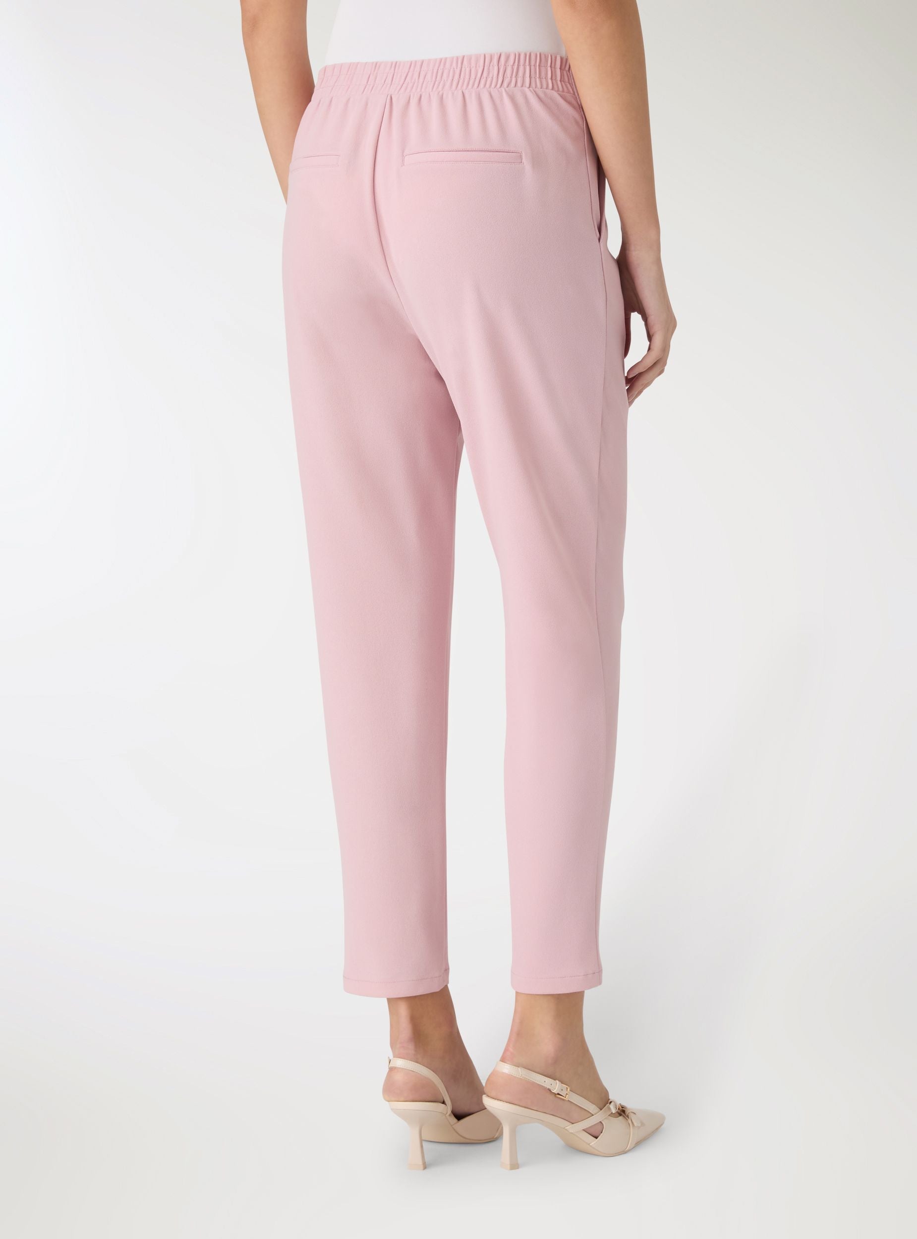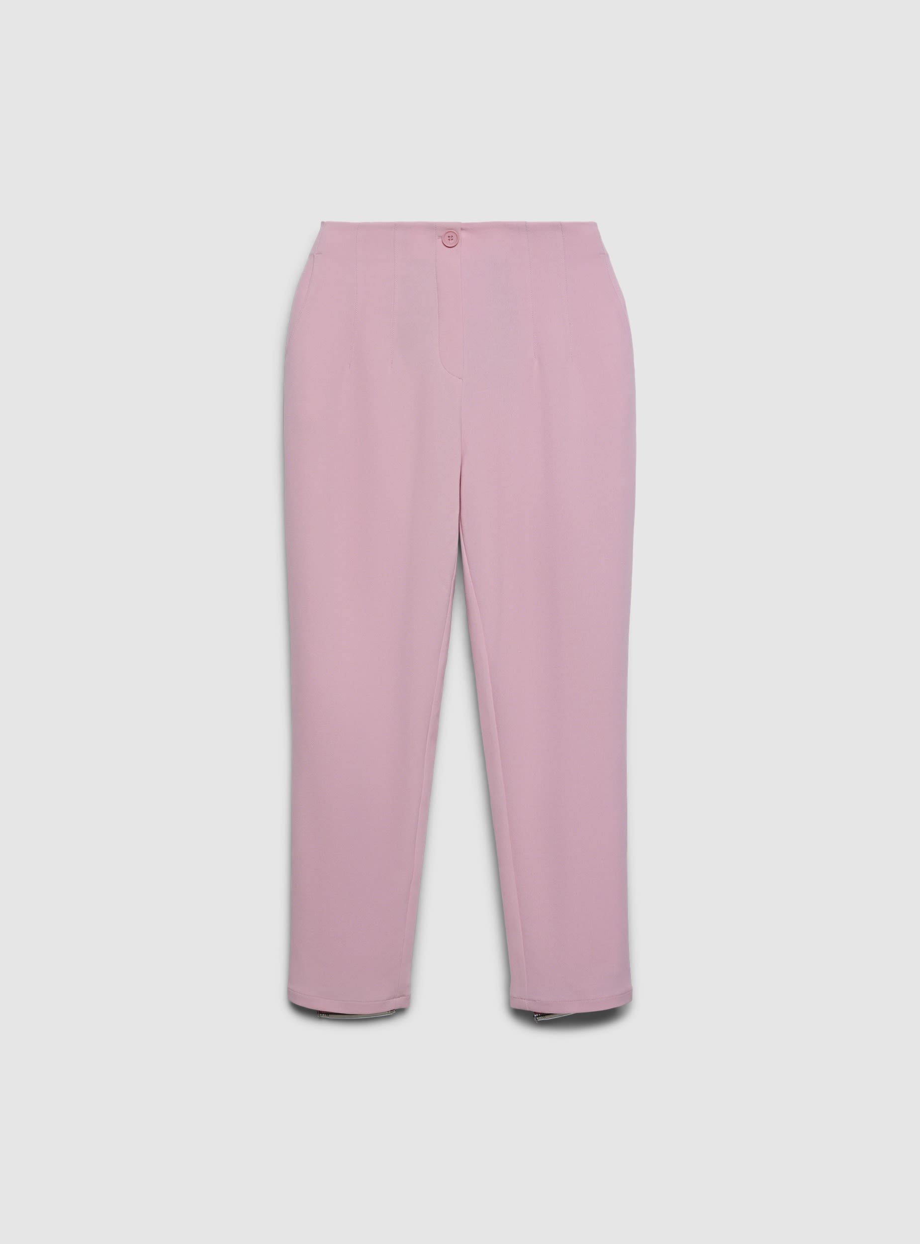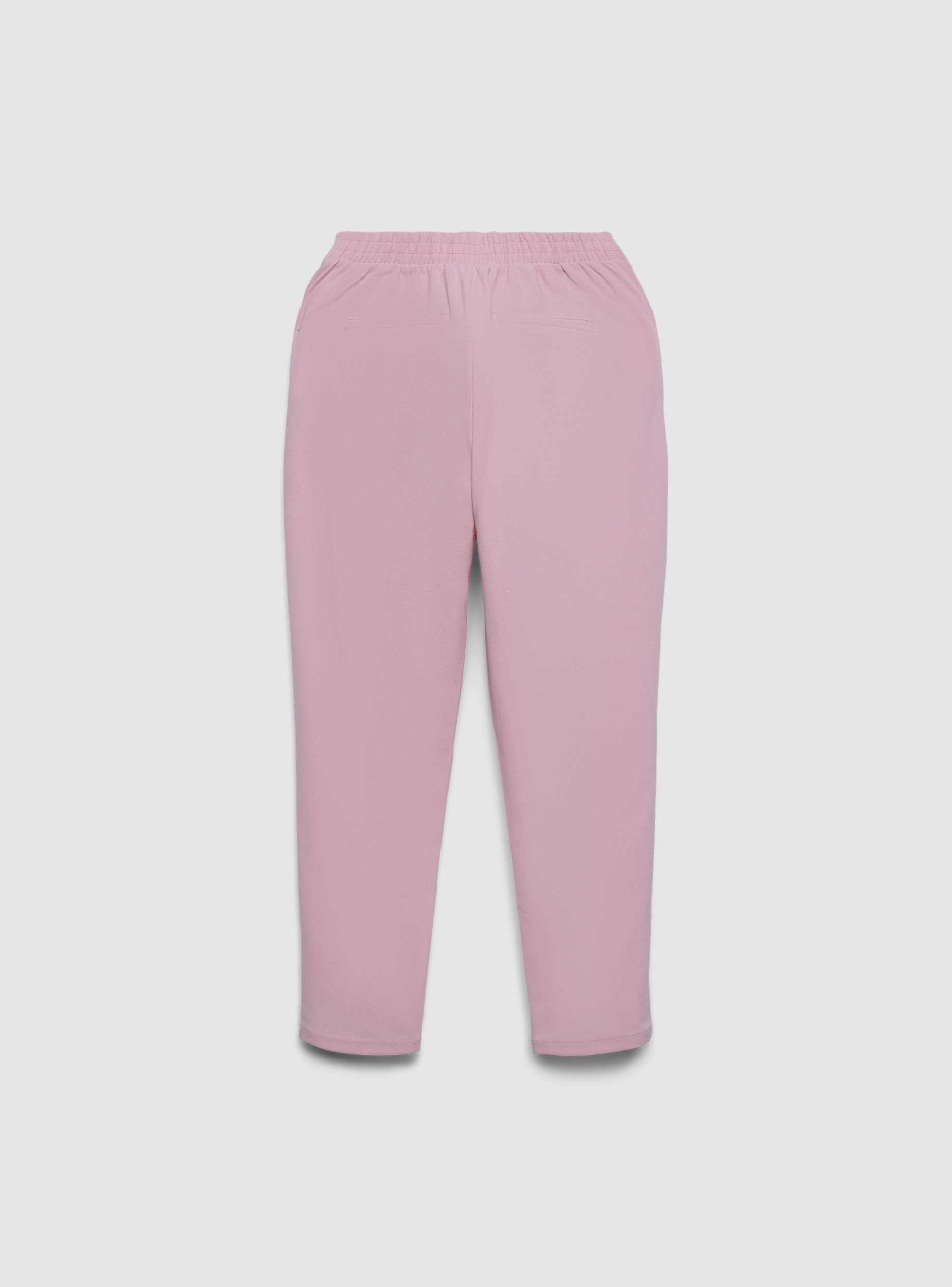 Pantaloni lunghi da donna a tinta unita con linea dritta e vestibilità regular. Vita con elastico posteriore per comfort e chiusura frontale con bottone. Tasche laterali e tasche a filetto sul retro per un look pulito. Perfetti per l’ufficio o il tempo libero, si abbinano a camicie e blazer o a magliette e sneakers per outfit versatili.Dettagli