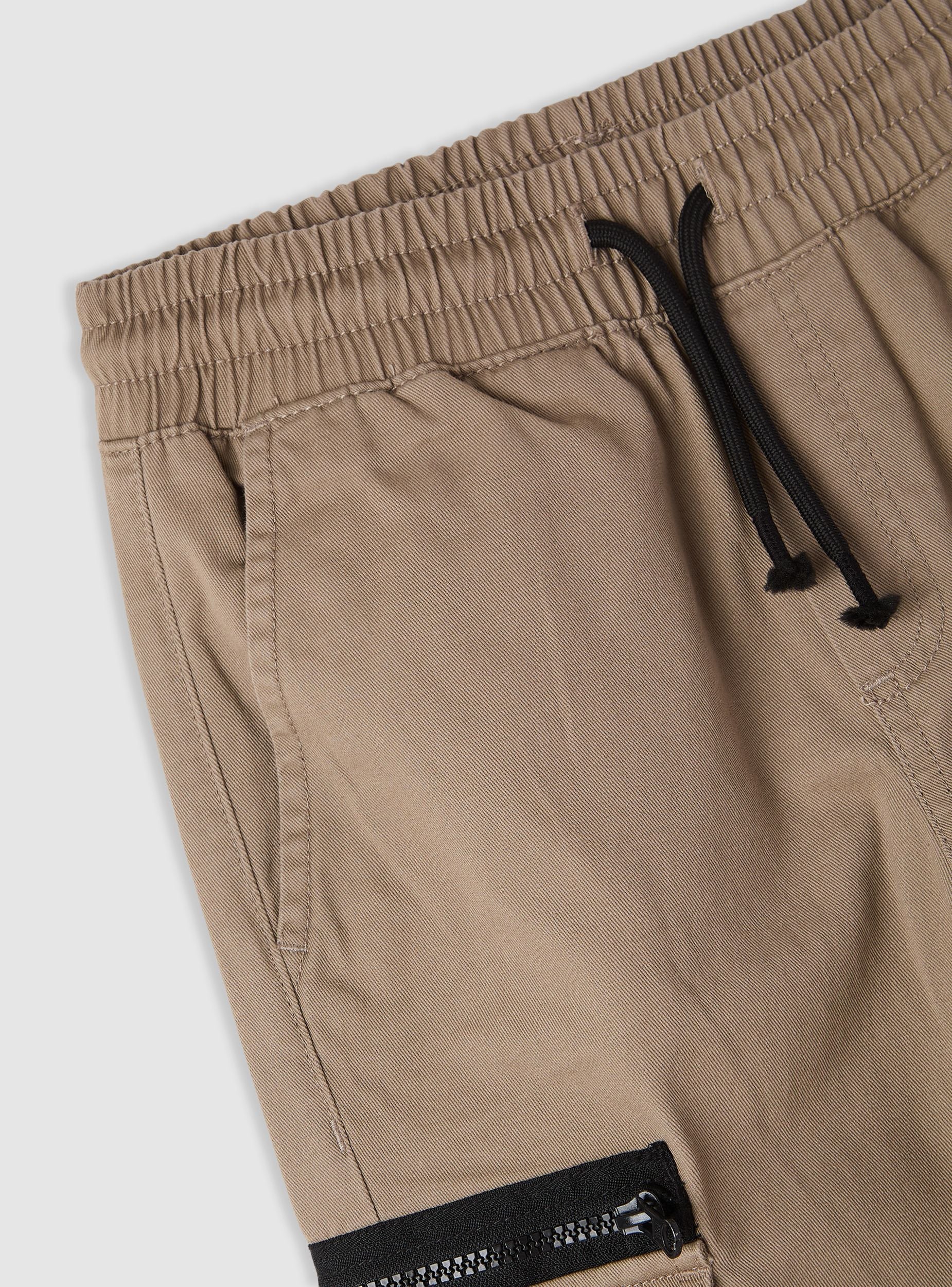 Pantaloni lunghi da bambino in tinta unita, dal look cargo con fondo elastico. Vita con coulisse per una vestibilità comoda. Tasche laterali e ampie tasche cargo con patta. Ideali per la scuola e il tempo libero, si abbinano a felpe e sneakers per un outfit pratico e urbano.Dettagli