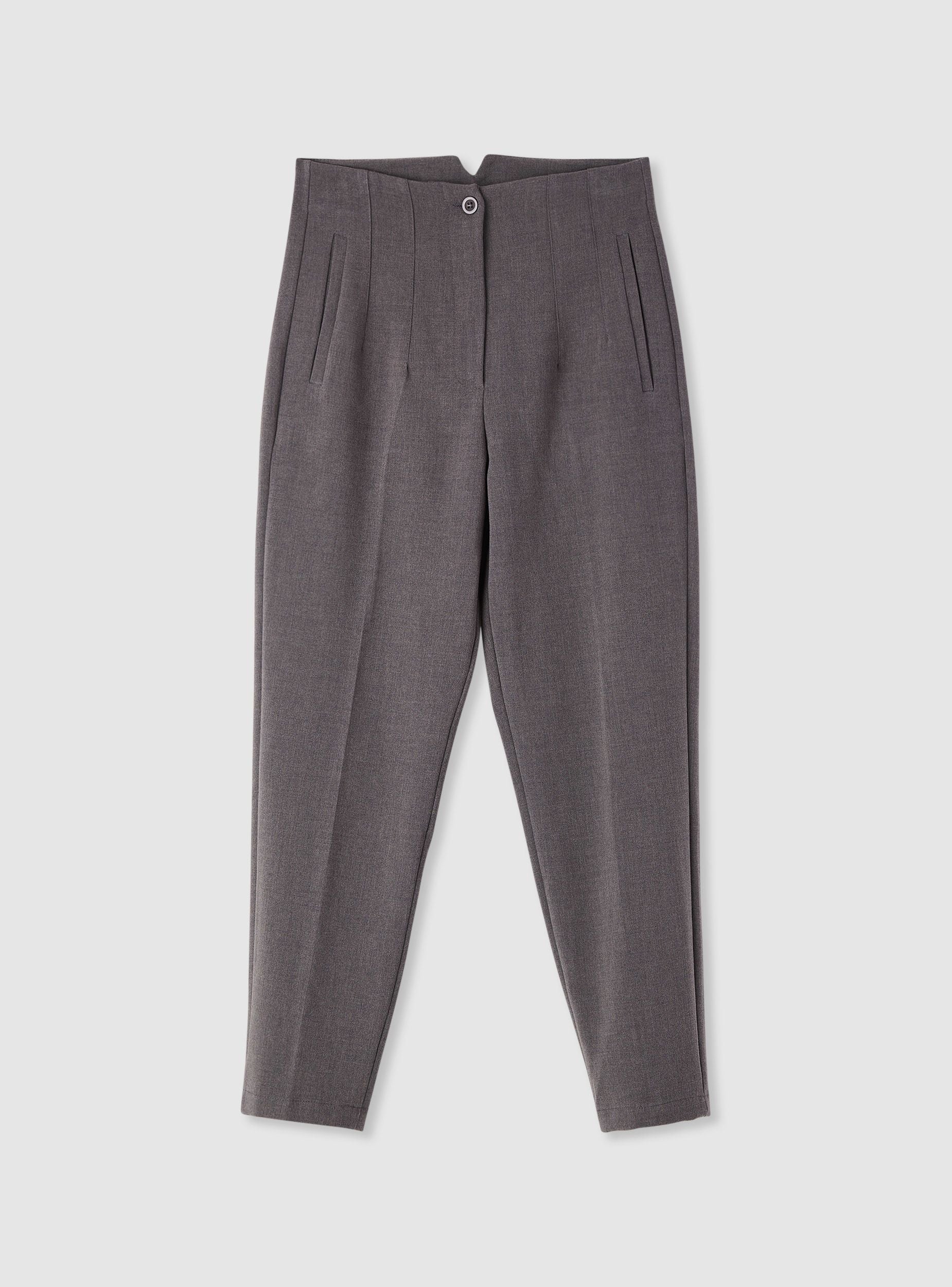 Pantaloni da donna a tinta unita dal taglio sartoriale, ideali per ufficio e occasioni eleganti. Vita alta con bottone e chiusura nascosta, linea affusolata con piega centrale che slancia la figura. Tasche laterali a filetto e cuciture verticali che definiscono il design. Perfetti con camicia e blazer o con maglia aderente e décolleté.Dettagli