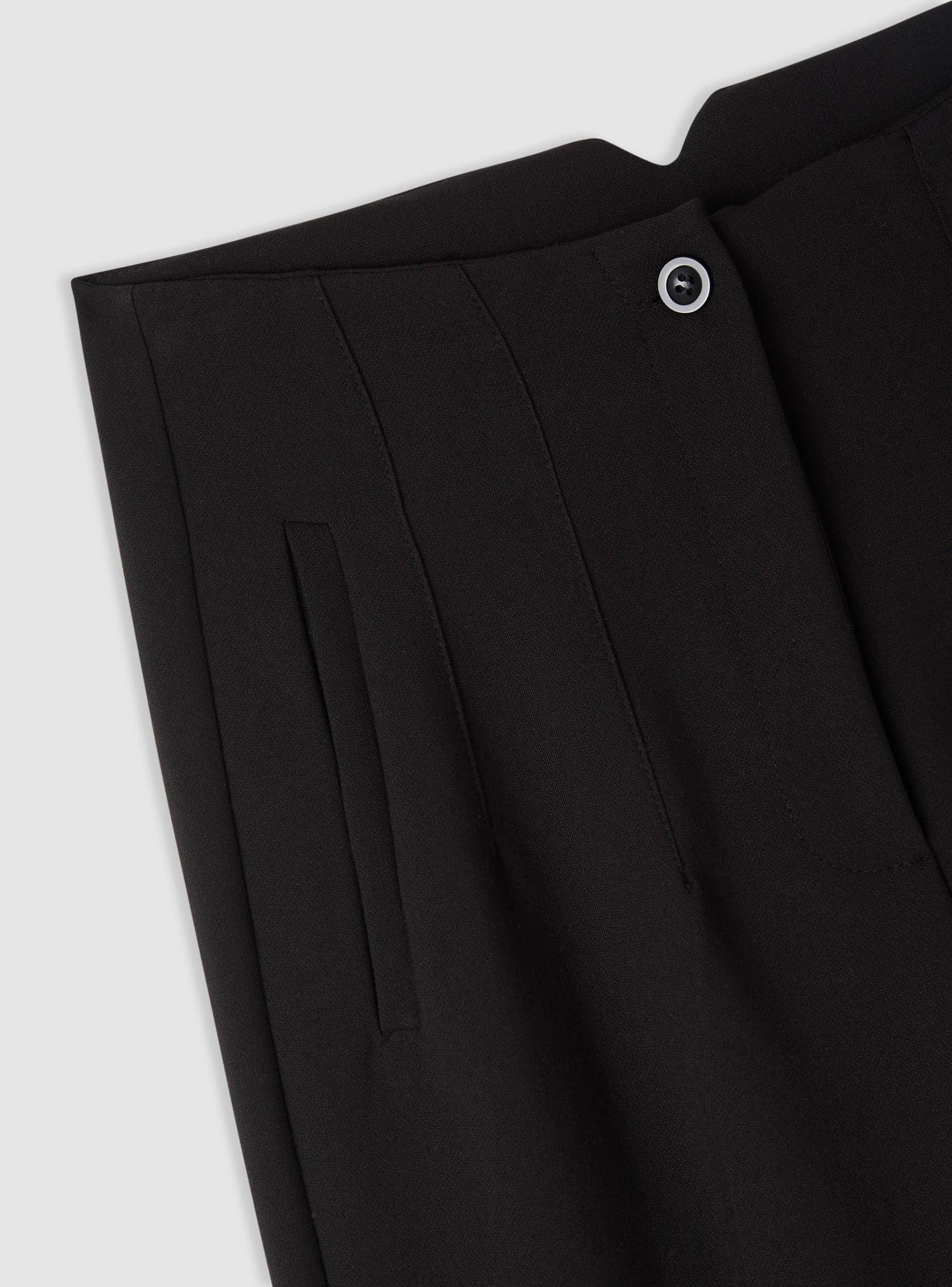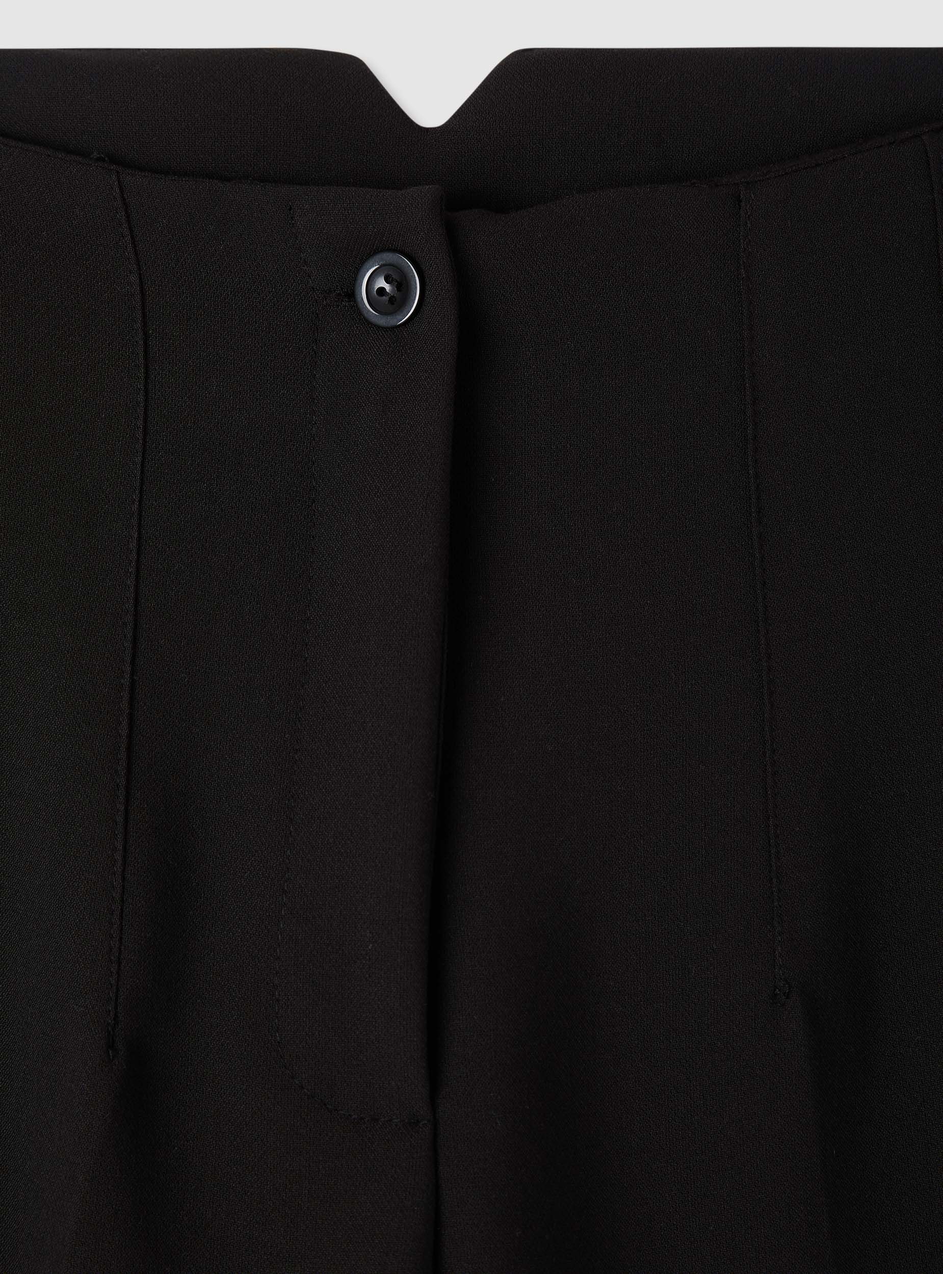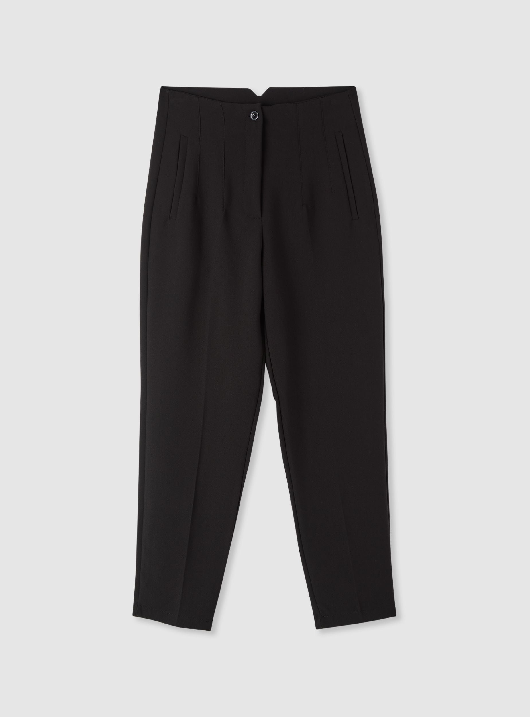 Pantaloni da donna a tinta unita dal taglio sartoriale, ideali per ufficio e occasioni eleganti. Vita alta con bottone e chiusura nascosta, linea affusolata con piega centrale che slancia la figura. Tasche laterali a filetto e cuciture verticali che definiscono il design. Perfetti con camicia e blazer o con maglia aderente e décolleté.Dettagli