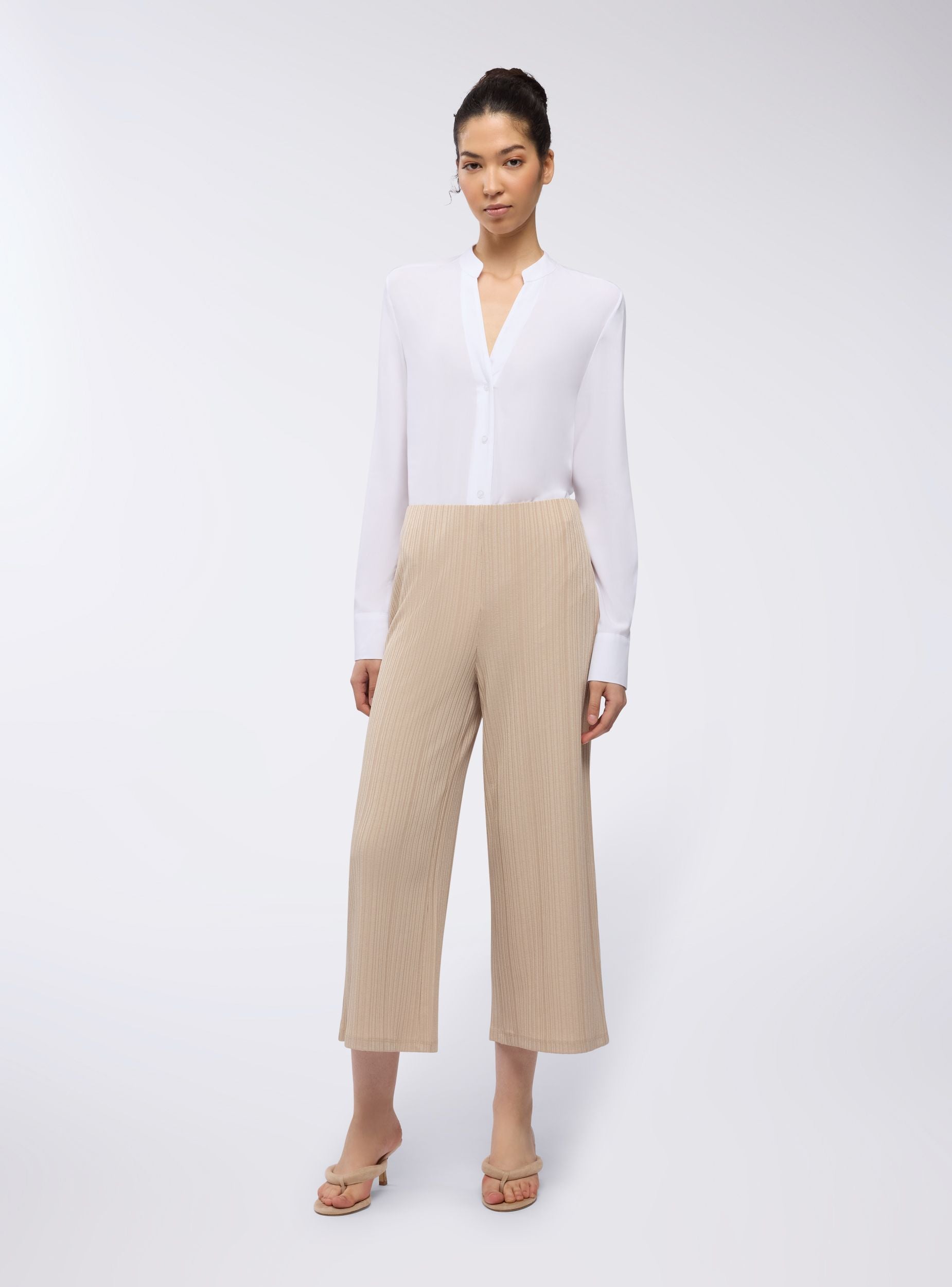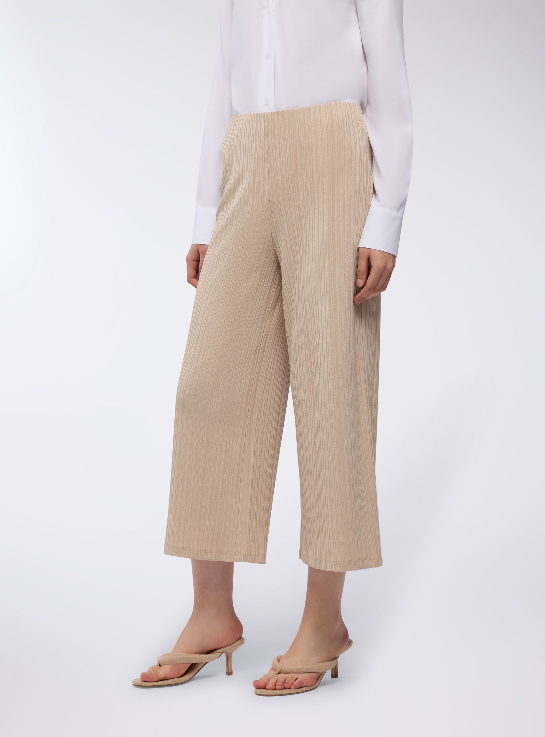 Pantaloni da donna ideali per un look casual e rilassato, perfetti per il tempo libero o per un outfit informale. Caratterizzati da una vestibilità regolare e un design a costine a tinta unita, presentano una lunghezza crop. Una scelta versatile per chi cerca comfort e stile in ogni occasione.Dettagli