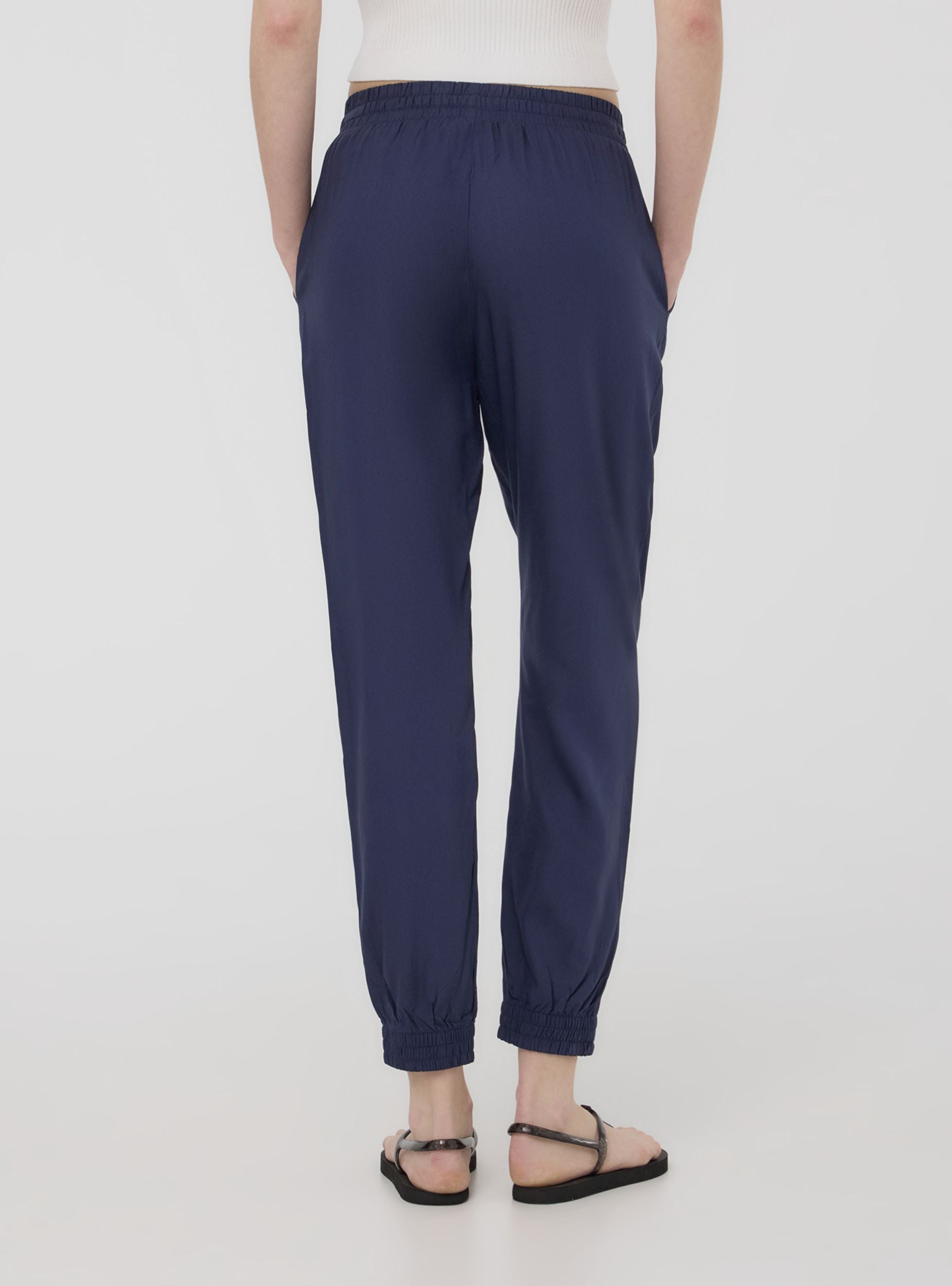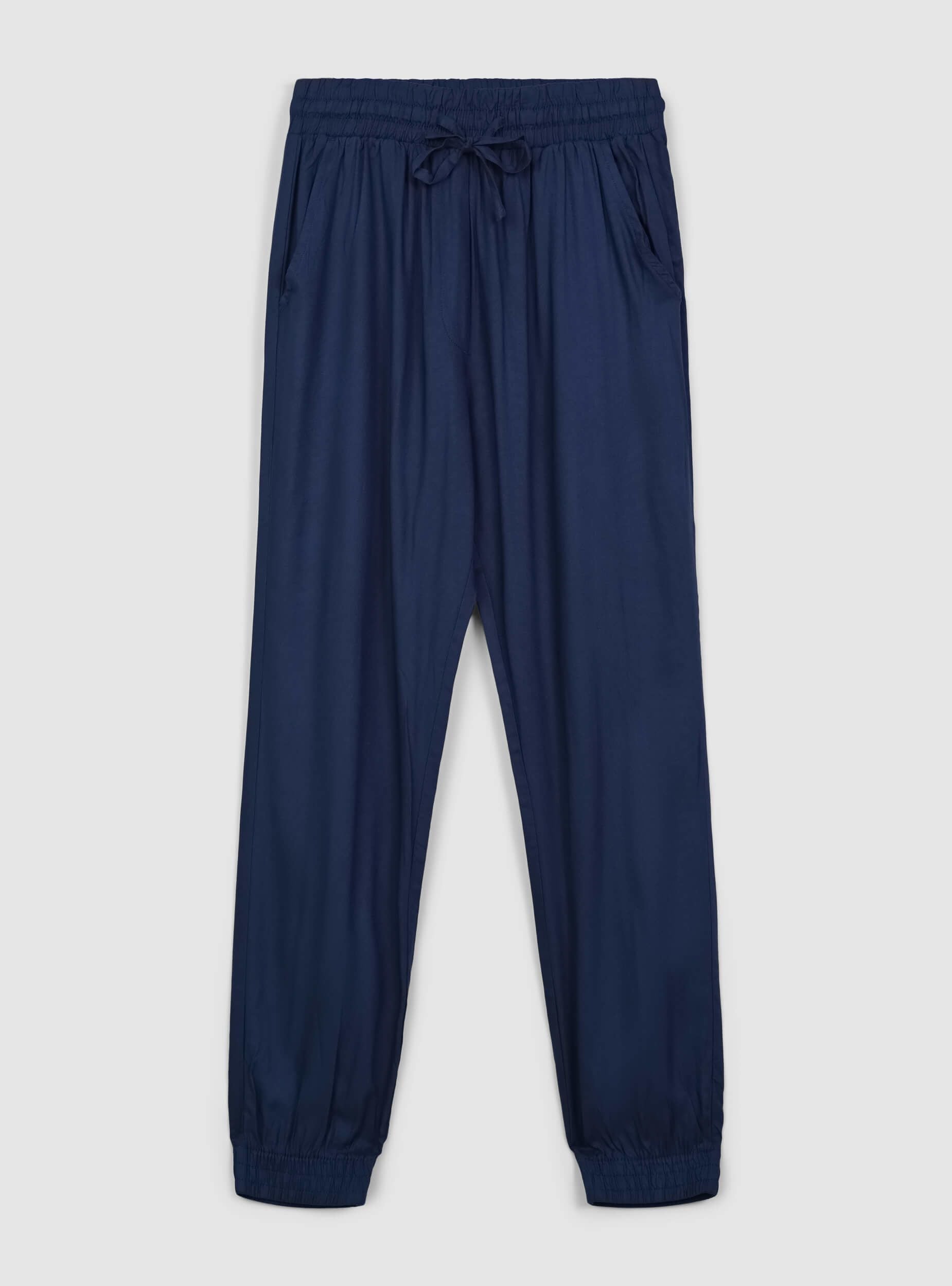 Pantaloni da donna a tinta unita in viscosa dallo stile jogging, pensati per un comfort casual. Dotati di un elastico in vita per una vestibilità pratica, questi pantaloni includono una comoda coulisse che permette di regolare la vestibilità. Presentano tasche laterali per una maggiore funzionalità e polsini alle caviglie, che donano un tocco sportivo e moderno, garantendo al contempo un look versatile per varie occasioni casual.Dettagli