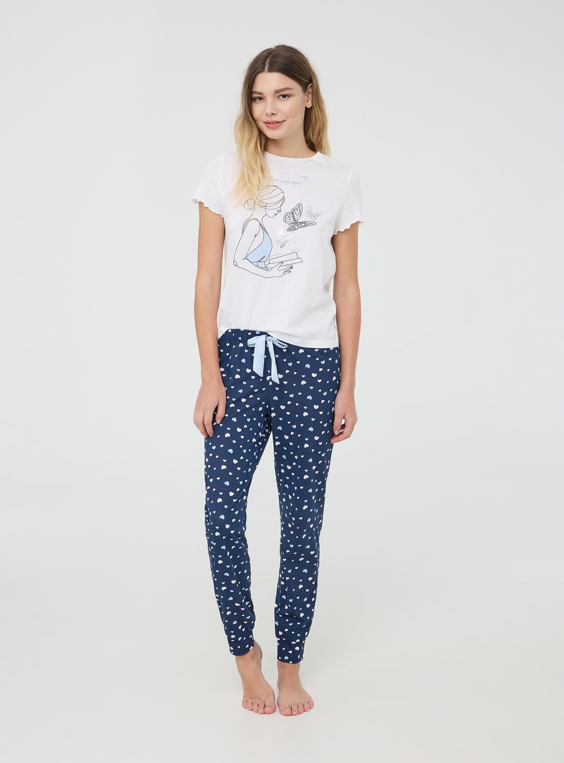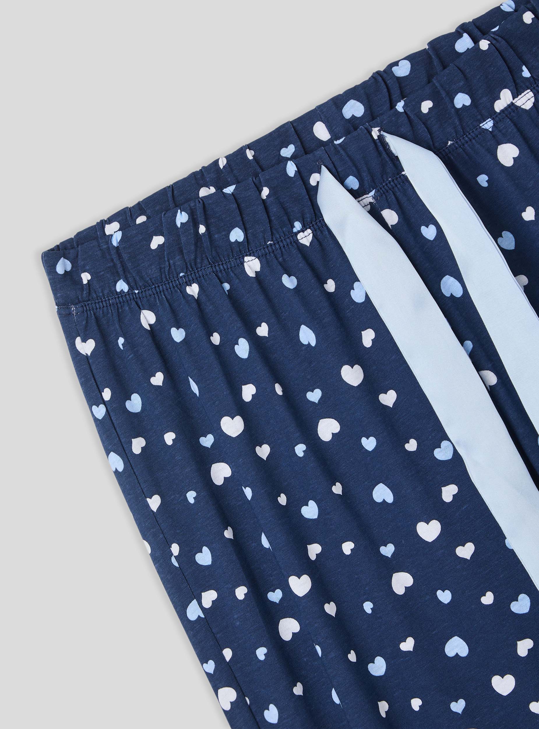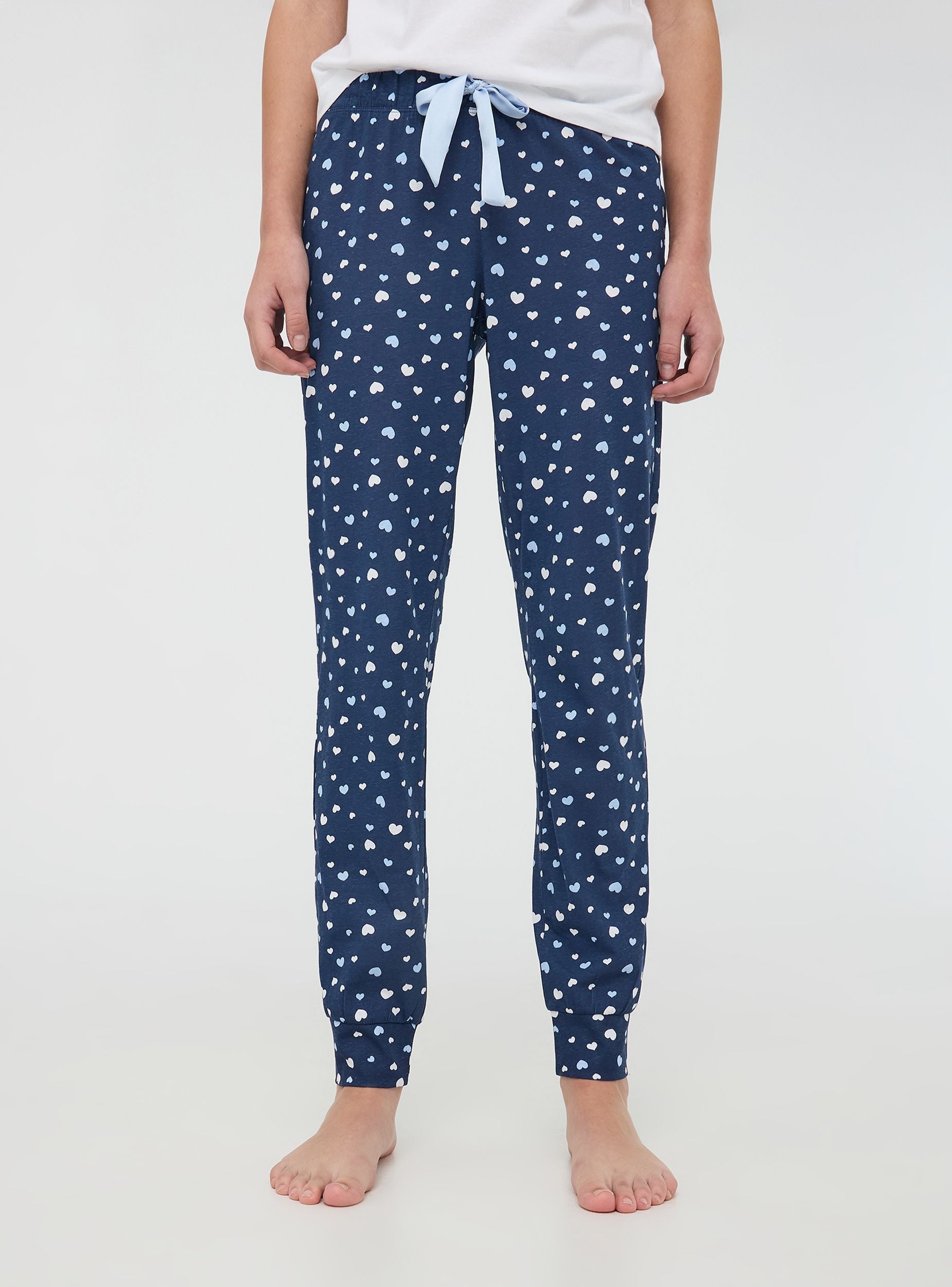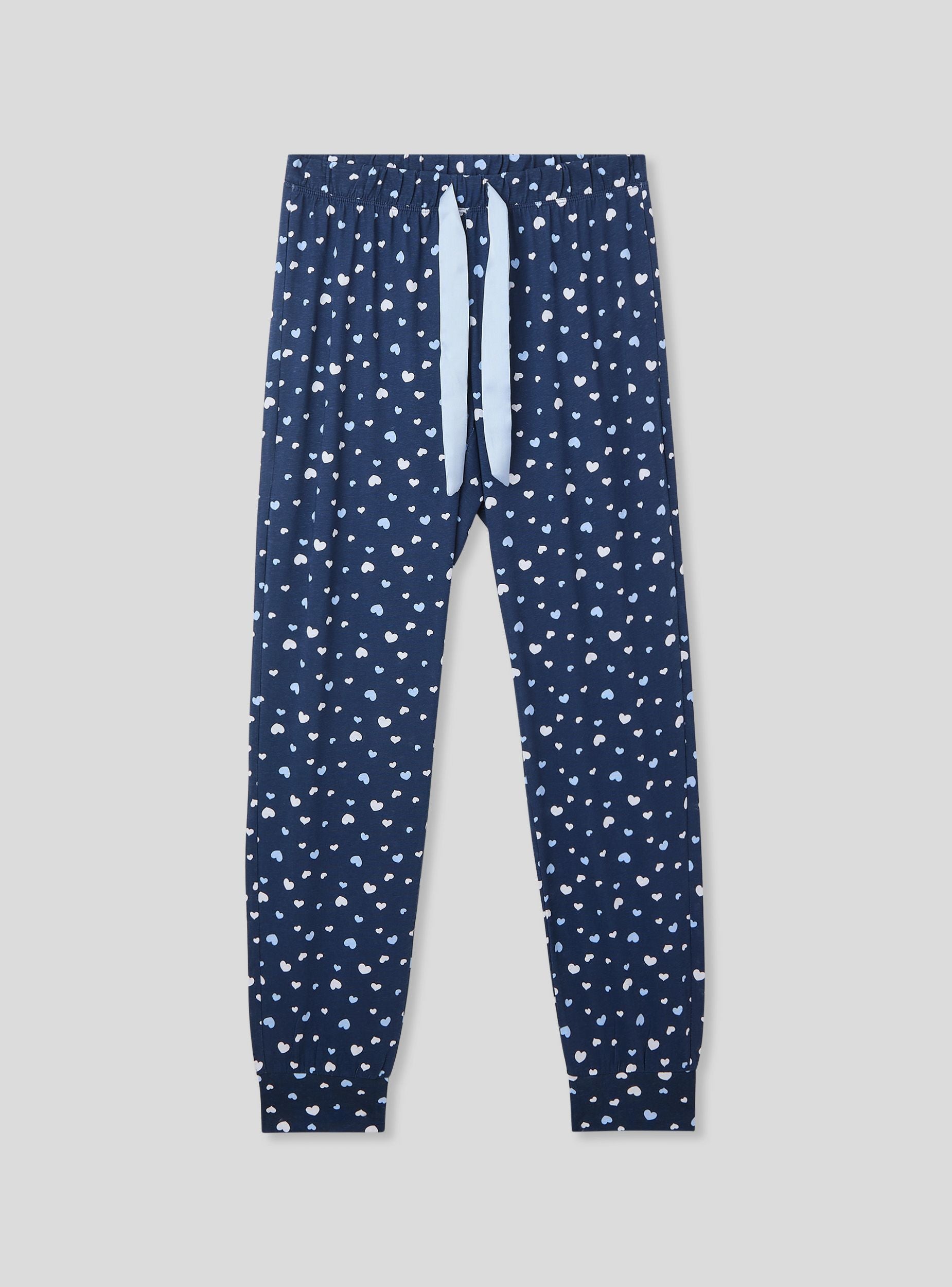 Pantaloni lunghi del pigiama da donna ideali per rilassarsi a casa o per notti confortevoli. Decorati con una romantica stampa cuori, offrono un design funzionale grazie all'elastico in vita con coulisse regolabile. I polsini alle caviglie assicurano una vestibilità perfetta, unendo stile e comodità per i tuoi momenti di relax.Dettagli