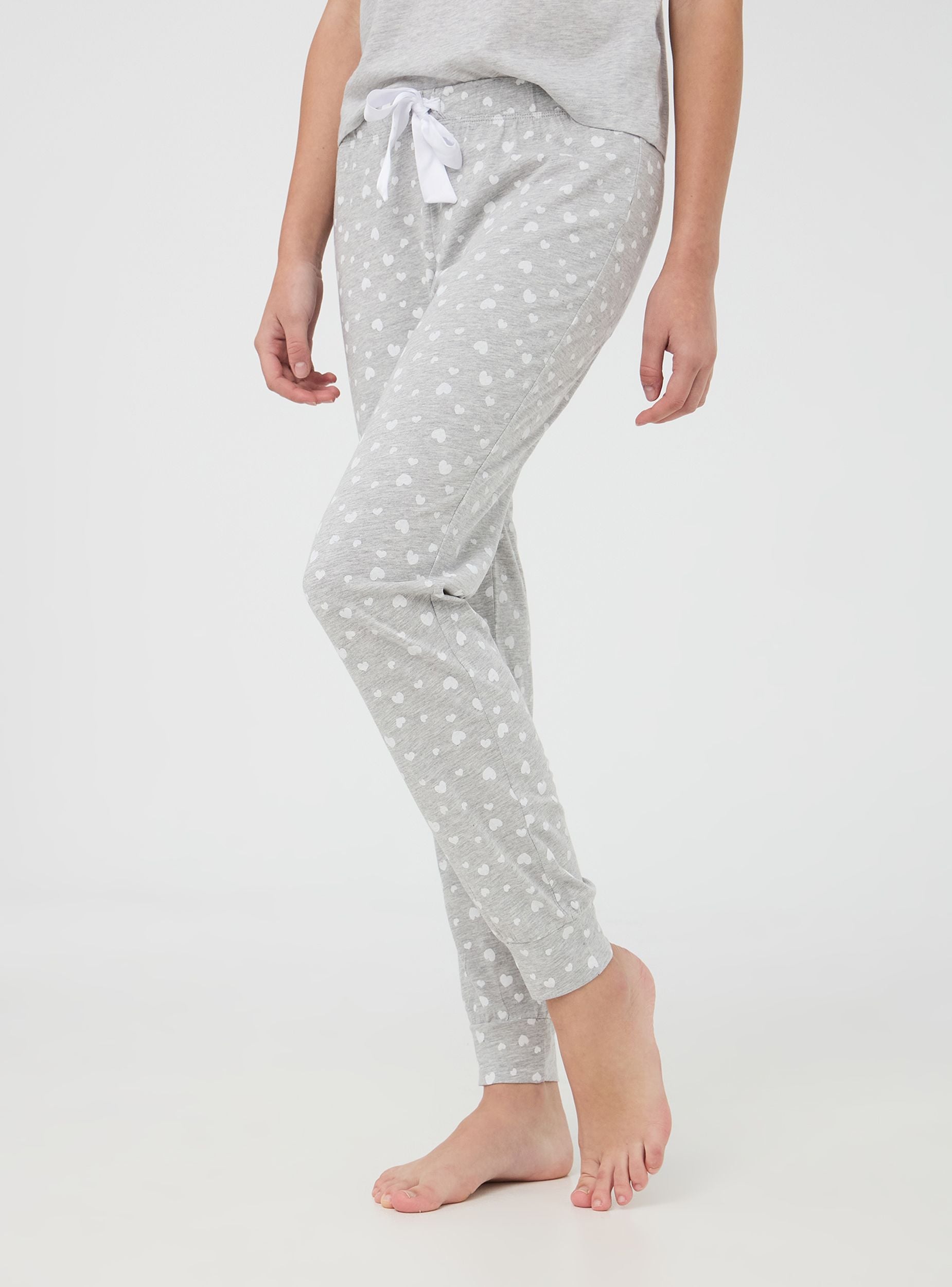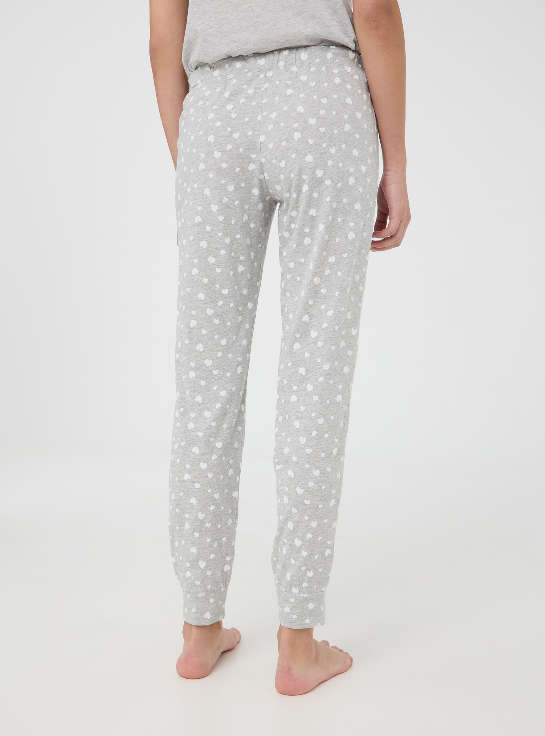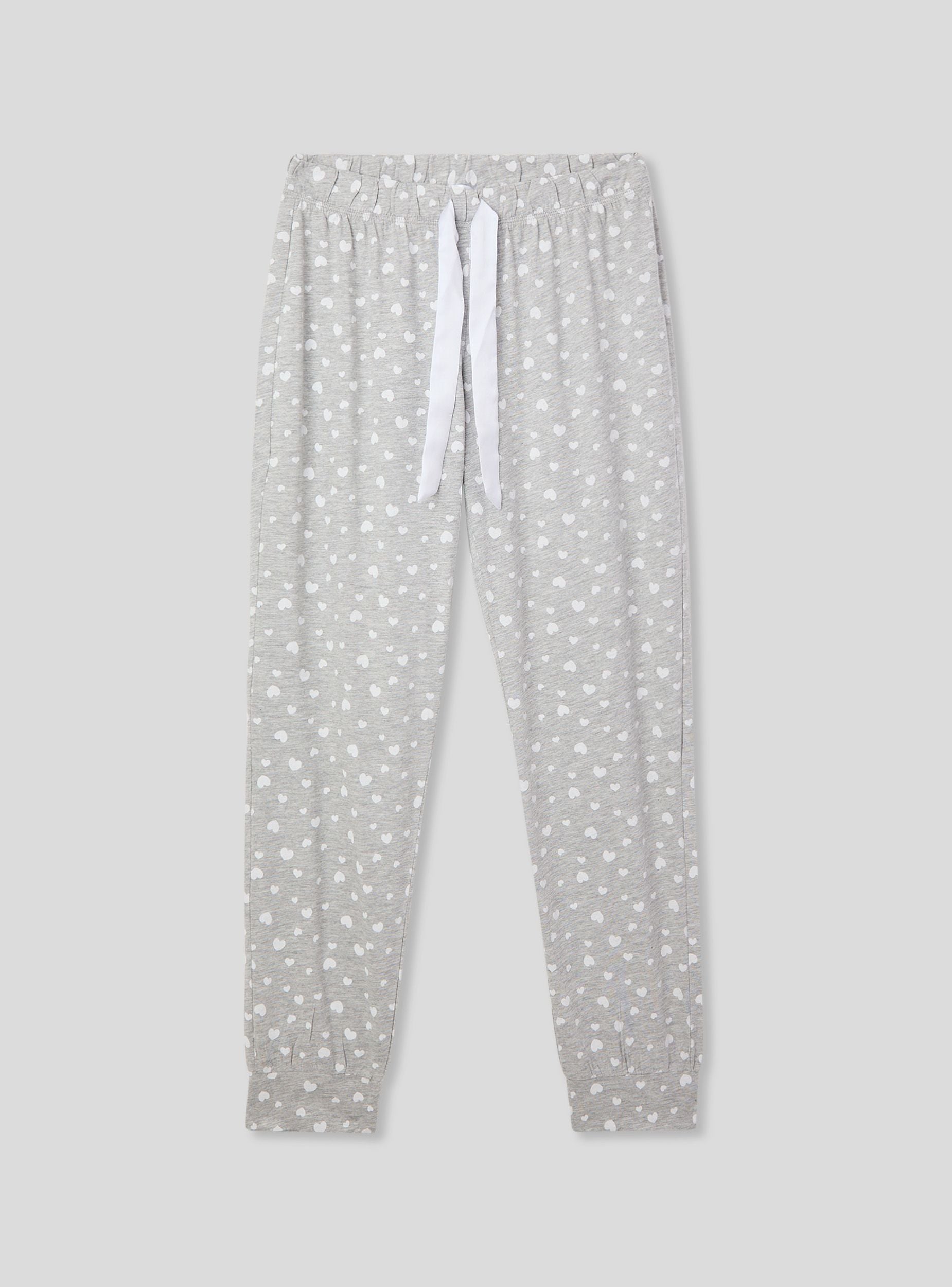 Pantaloni lunghi del pigiama da donna ideali per rilassarsi a casa o per notti confortevoli. Decorati con una romantica stampa cuori, offrono un design funzionale grazie all'elastico in vita con coulisse regolabile. I polsini alle caviglie assicurano una vestibilità perfetta, unendo stile e comodità per i tuoi momenti di relax.Dettagli