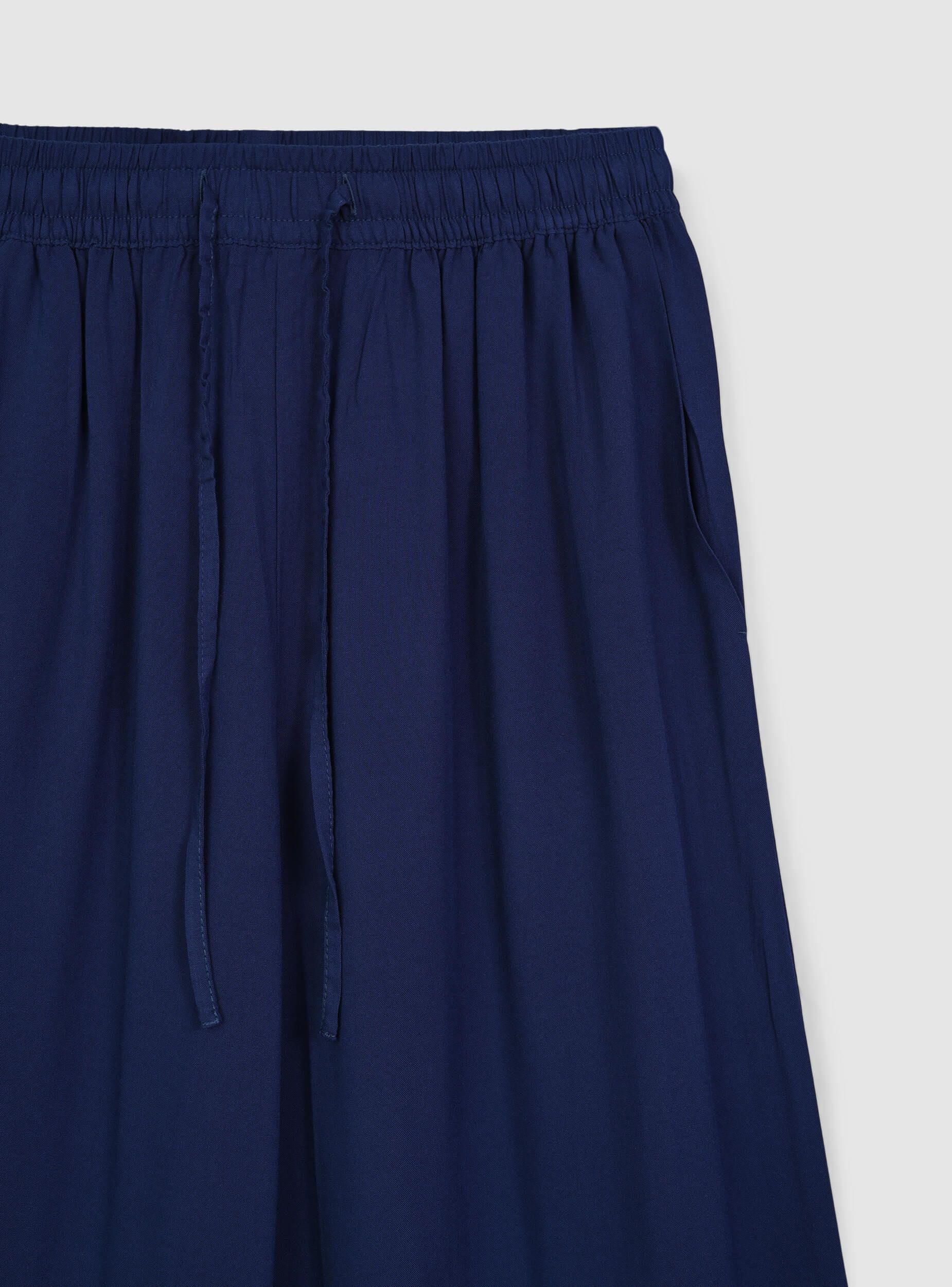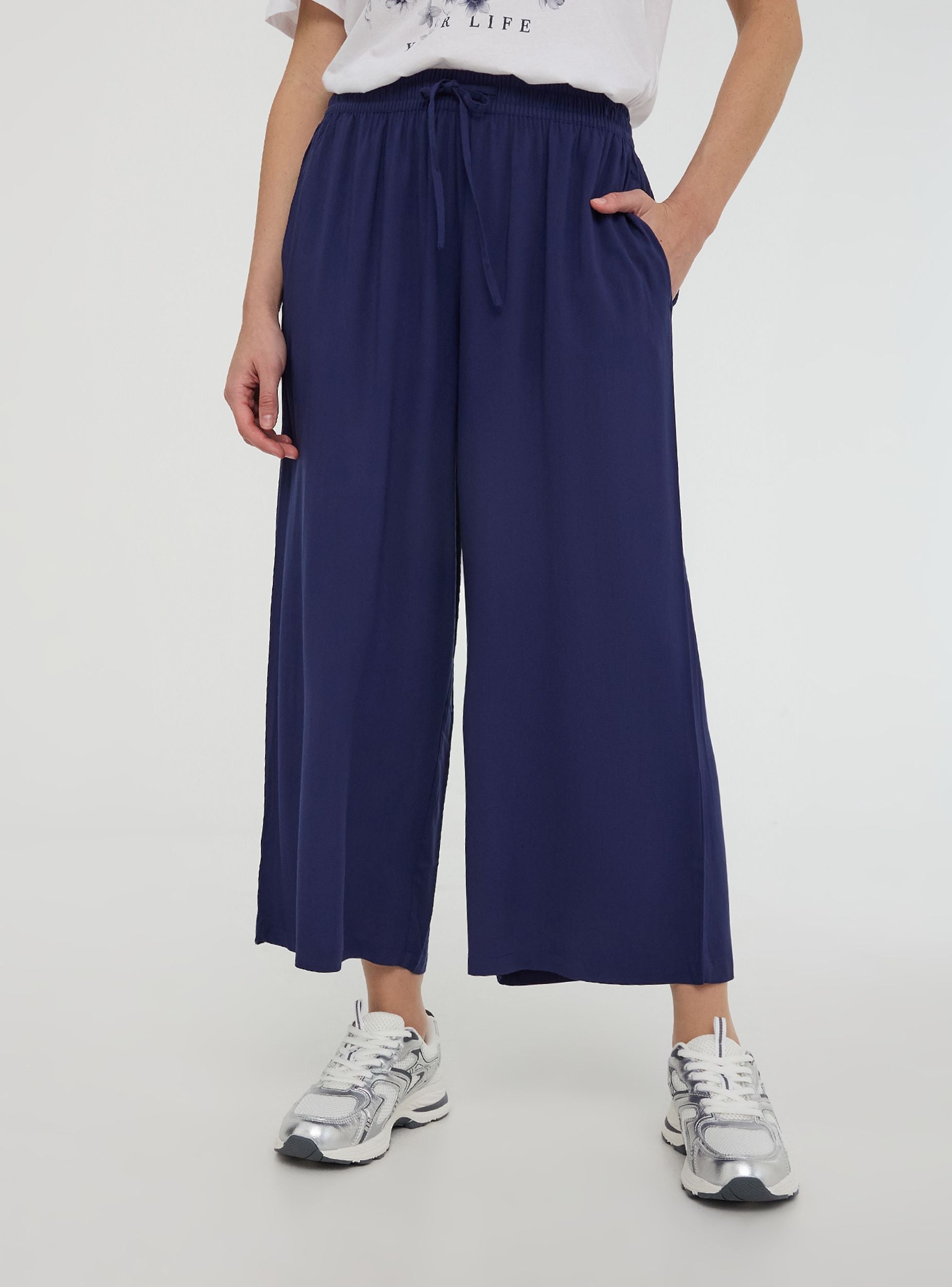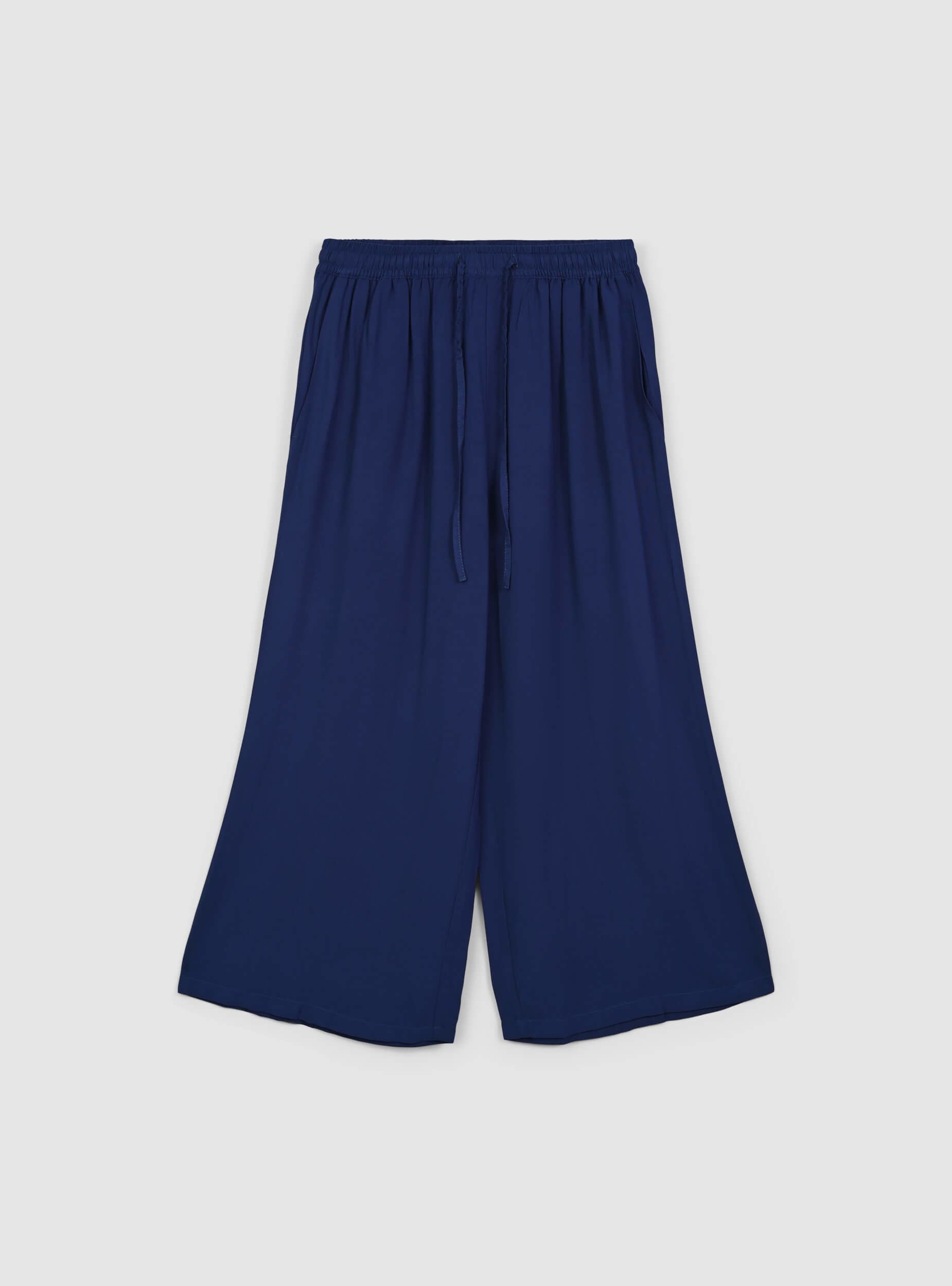 Pantaloni da donna caratterizzati da un design tinta unita con linea ampia a palazzo. La lunghezza crop dona un tocco moderno e versatile, perfetto per abbinamenti casual o eleganti. Sono dotati di tasche laterali pratiche e funzionali, oltre a una comoda coulisse in vita che permette di regolare la vestibilità in modo ottimale. L'elastico in vita assicura comfort e flessibilità durante l'uso, rendendo questi pantaloni ideali per chi cerca uno stile sofisticato senza rinunciare alla comodità.Dettagli