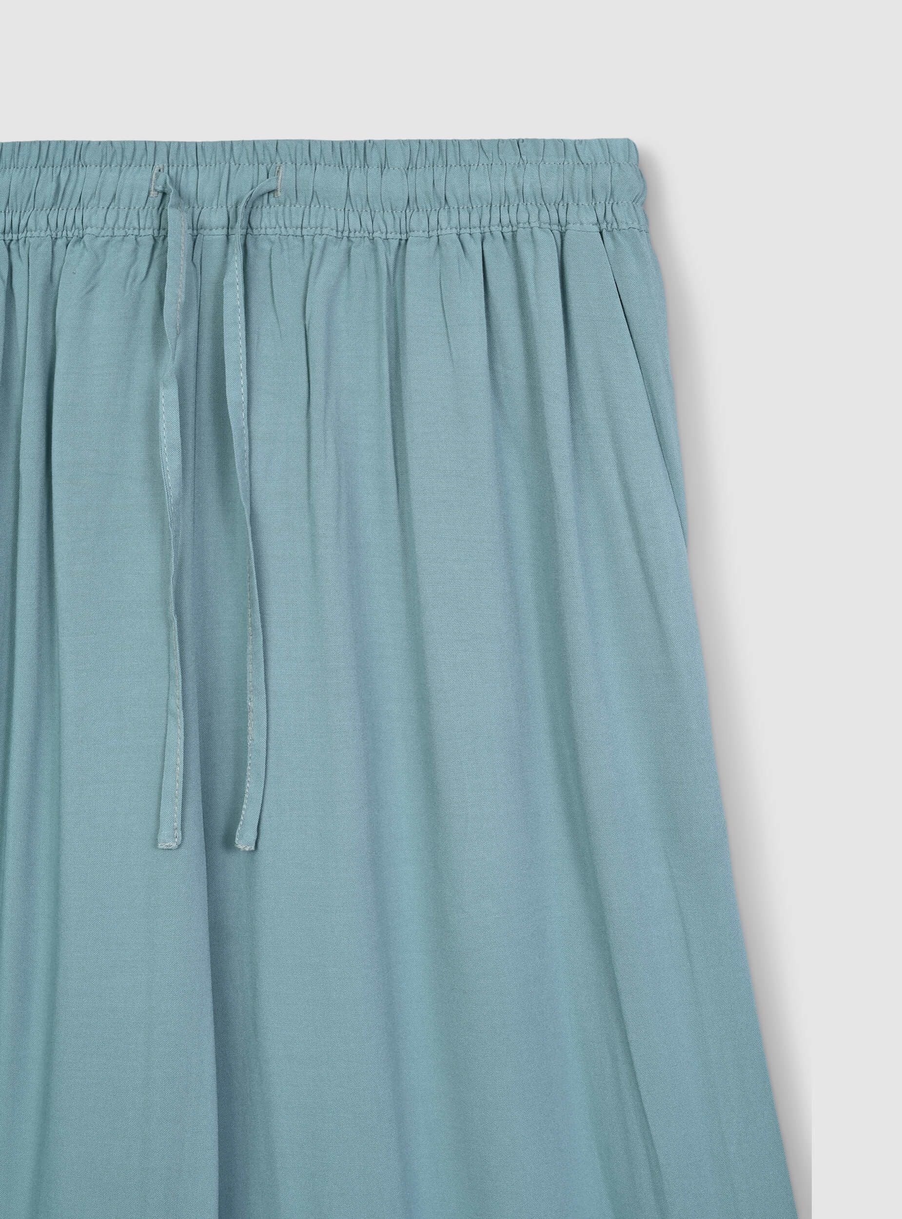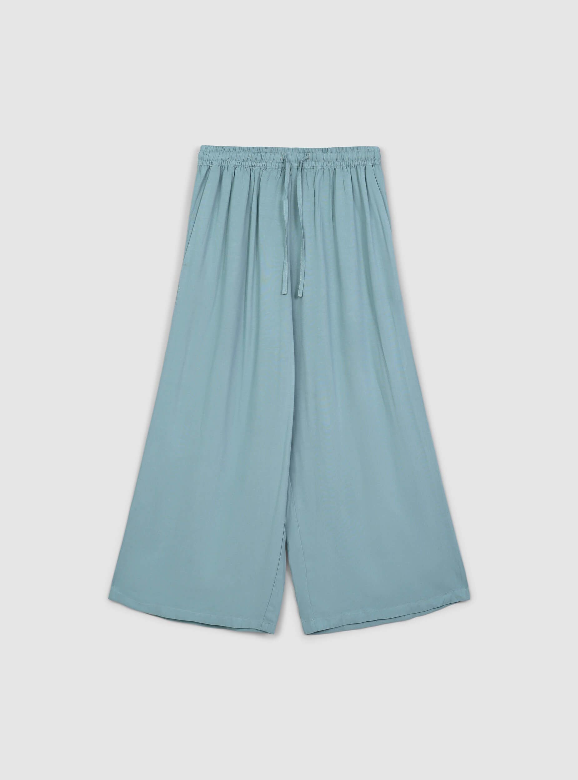Pantaloni da donna caratterizzati da un design tinta unita con linea ampia a palazzo. La lunghezza crop dona un tocco moderno e versatile, perfetto per abbinamenti casual o eleganti. Sono dotati di tasche laterali pratiche e funzionali, oltre a una comoda coulisse in vita che permette di regolare la vestibilità in modo ottimale. L'elastico in vita assicura comfort e flessibilità durante l'uso, rendendo questi pantaloni ideali per chi cerca uno stile sofisticato senza rinunciare alla comodità.Dettagli