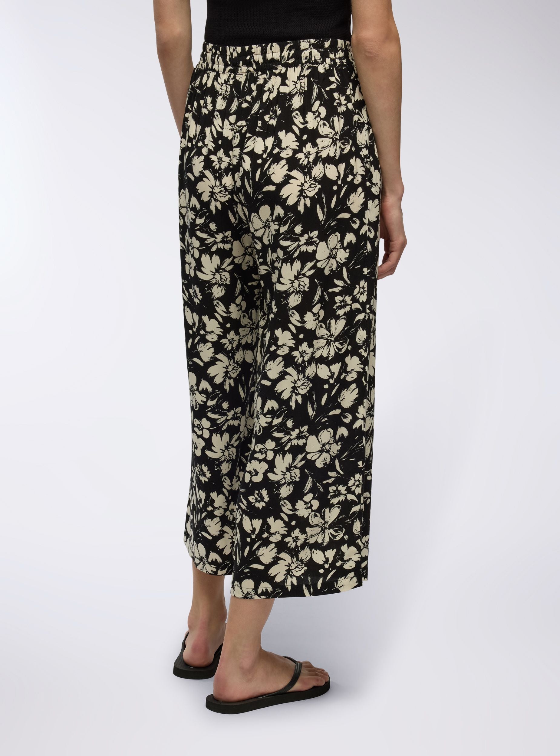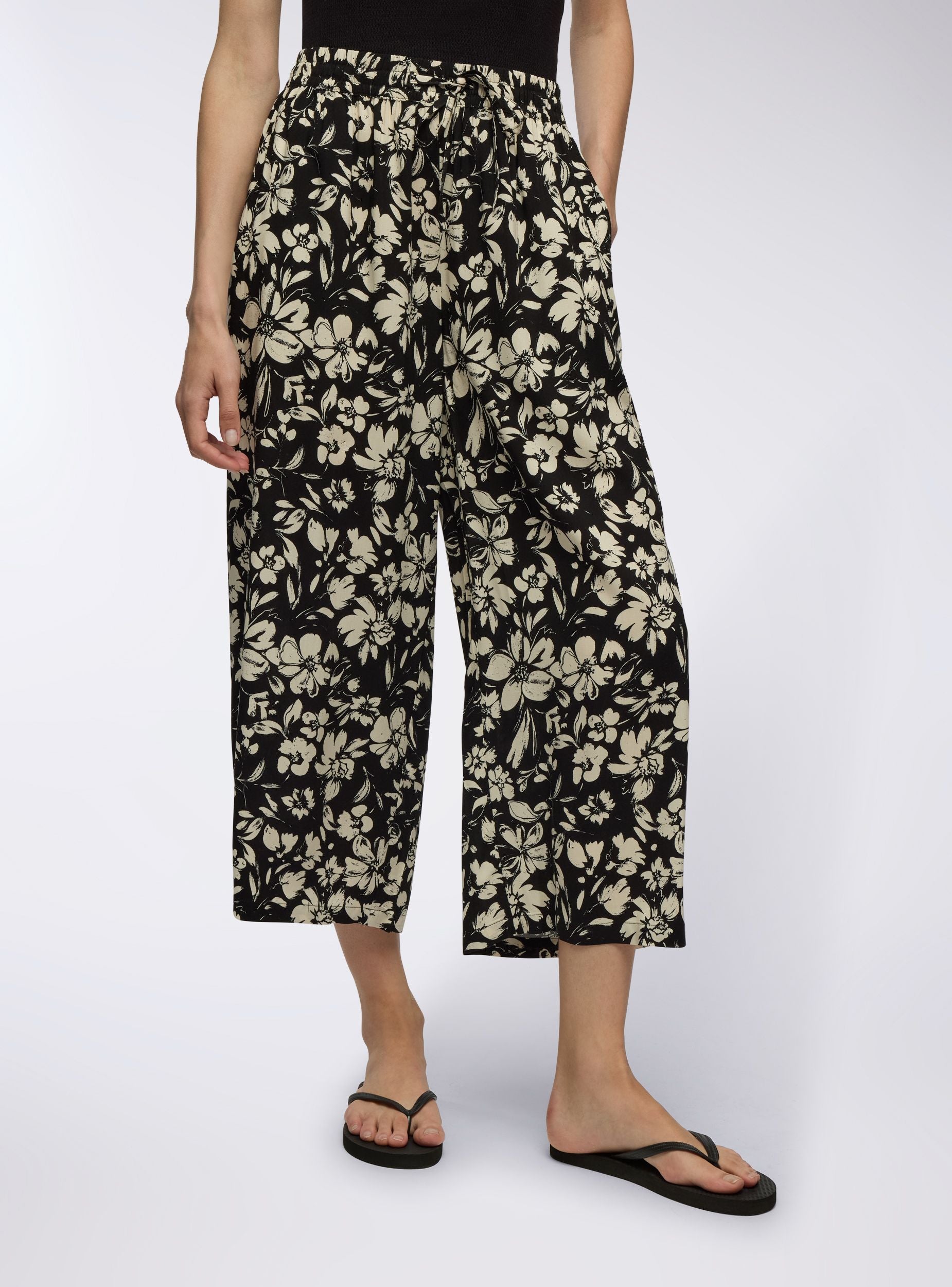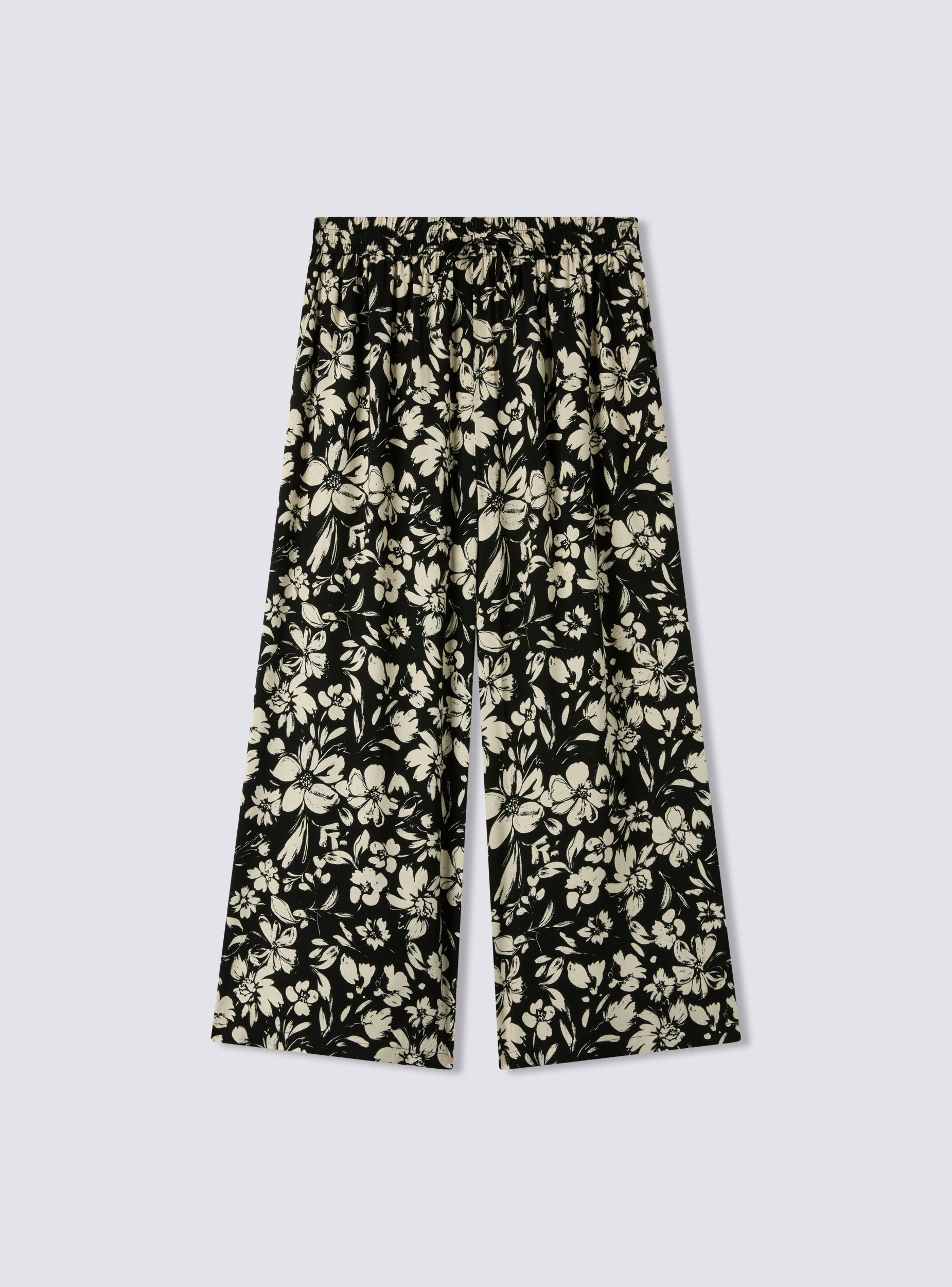 Pantaloni da donna ideali per un look trendy e versatile, perfetti per il tempo libero o per un outfit casual. Caratterizzati da una vestibilità ampia, presentano una stampa floreale e un design palazzo crop con coulisse in vita e tasche laterali. Una scelta ideale per diverse occasioni. Perfetti da abbinare con top o bluse leggere.Dettagli