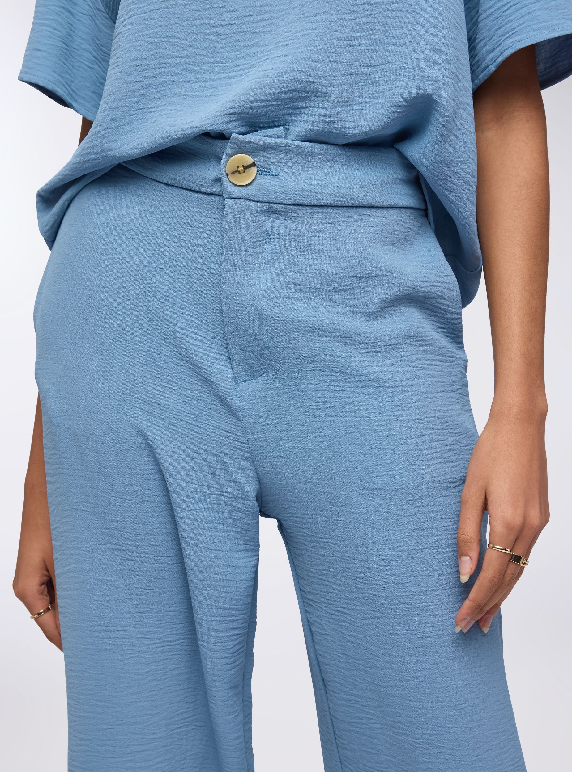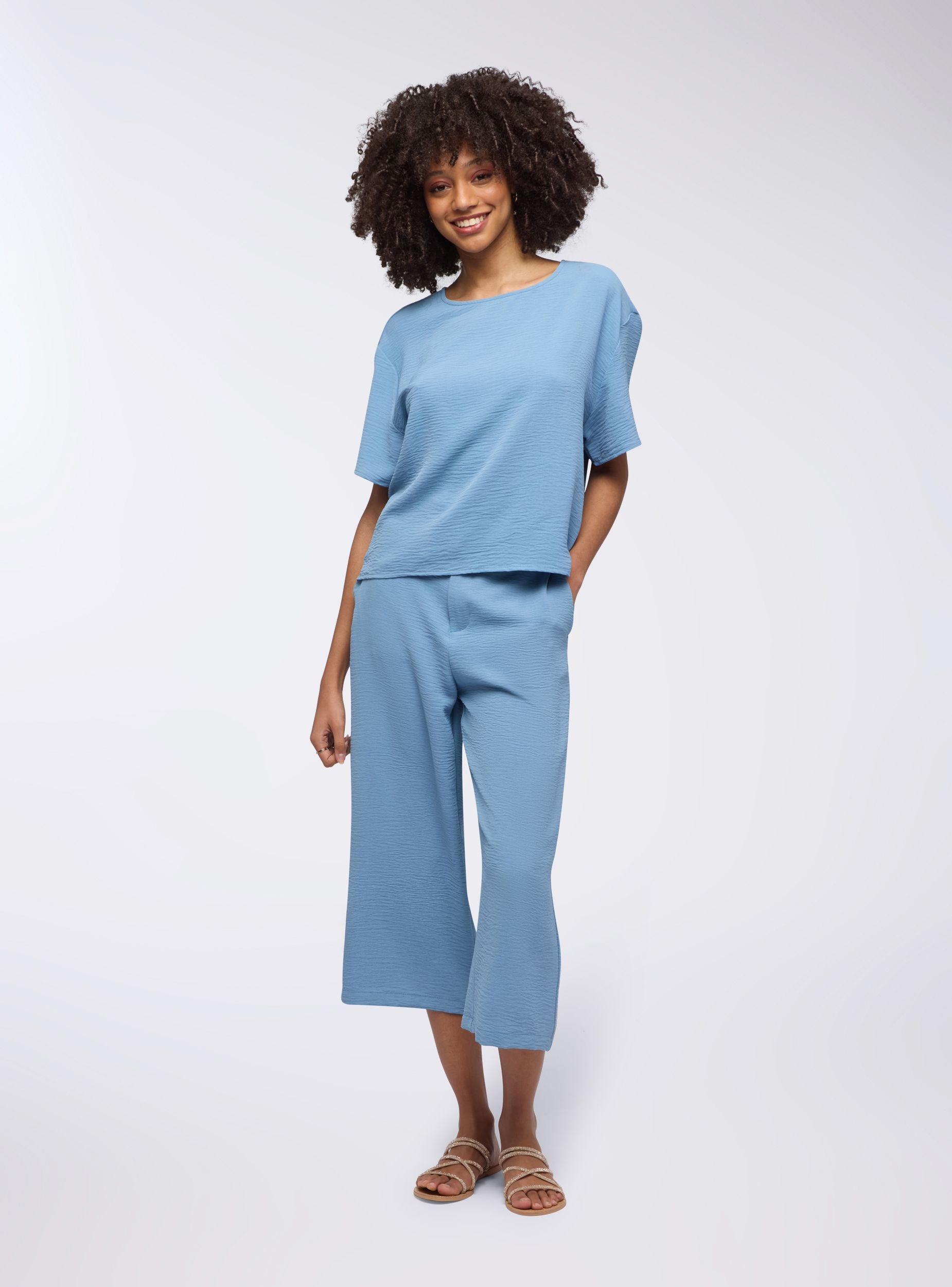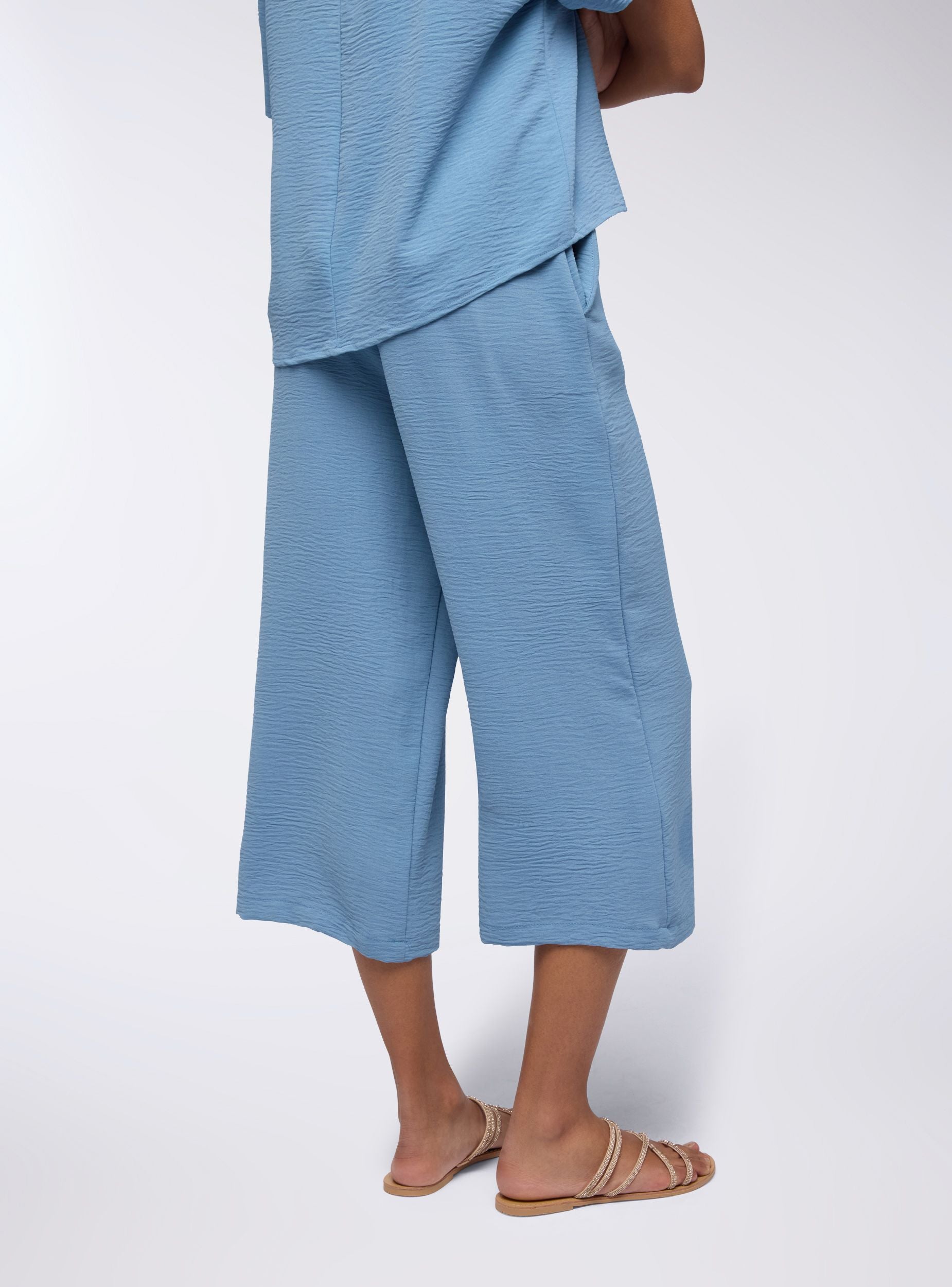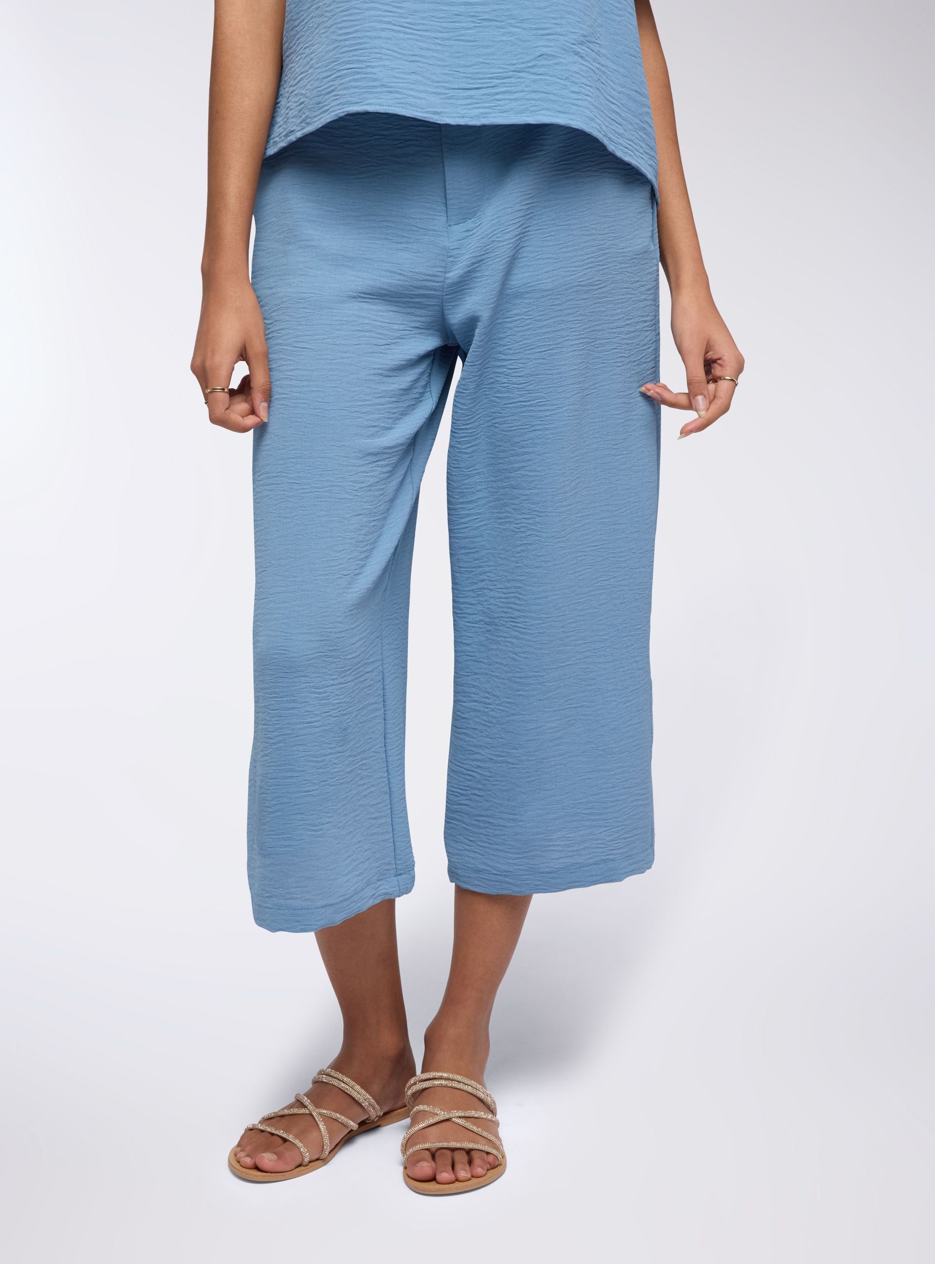Pantaloni da donna dallo stile contemporaneo, perfetti per un look casual-chic nelle giornate estive. La vestibilità ampia palazzo assicura comfort e freschezza, ideale per abbinamenti con top aderenti o bluse leggere. Versatili per il tempo libero o per un outfit rilassato ma curato, questi pantaloni cropped sono un must per la stagione.Dettagli