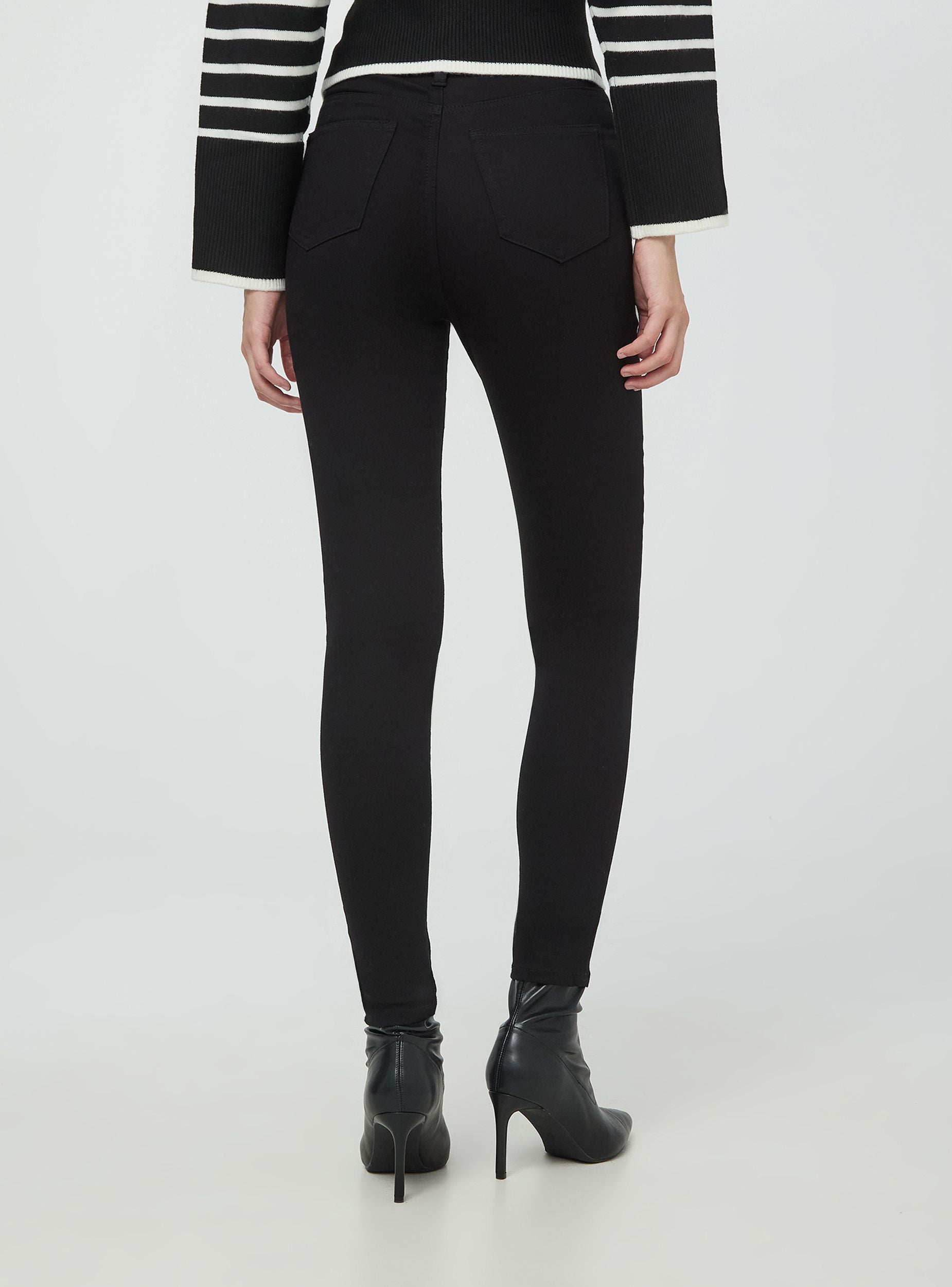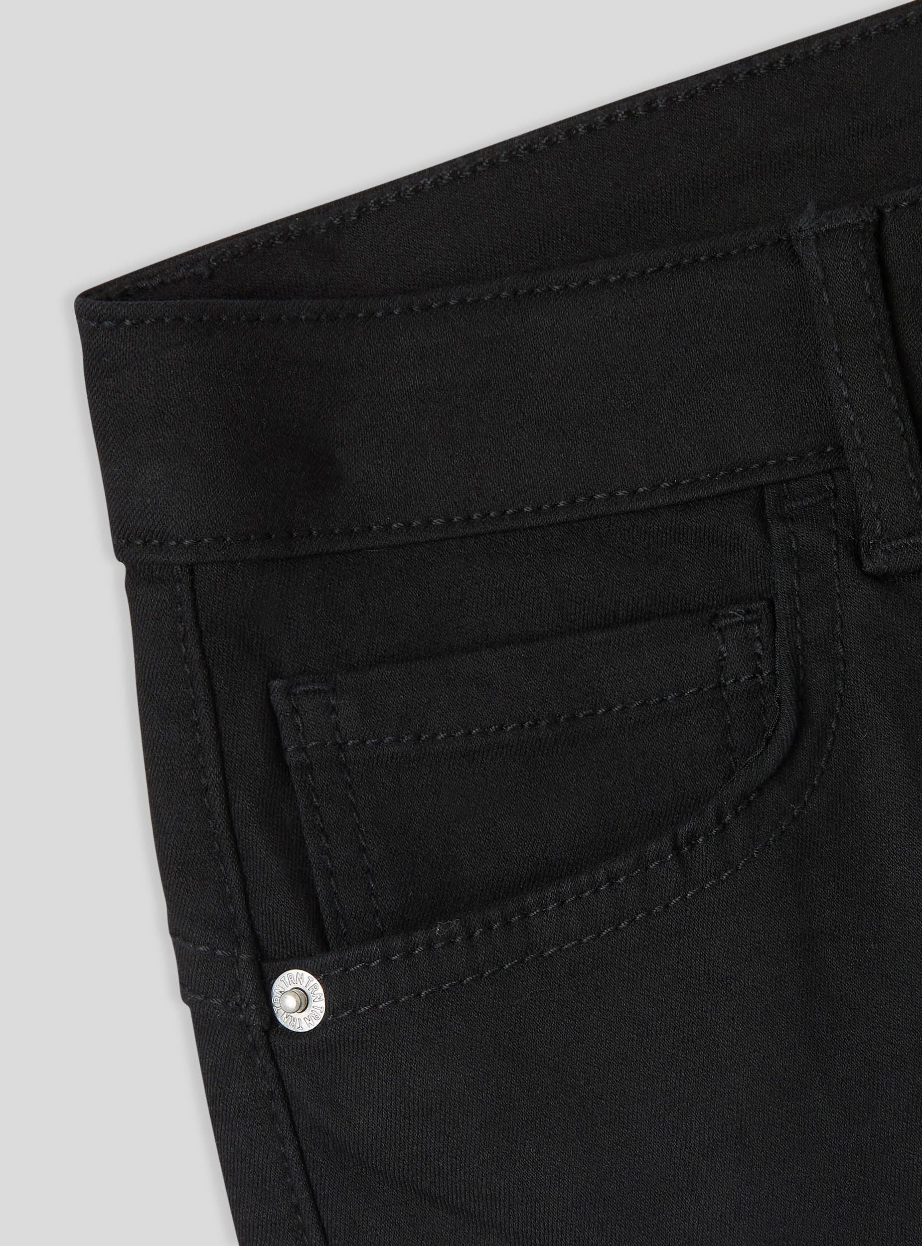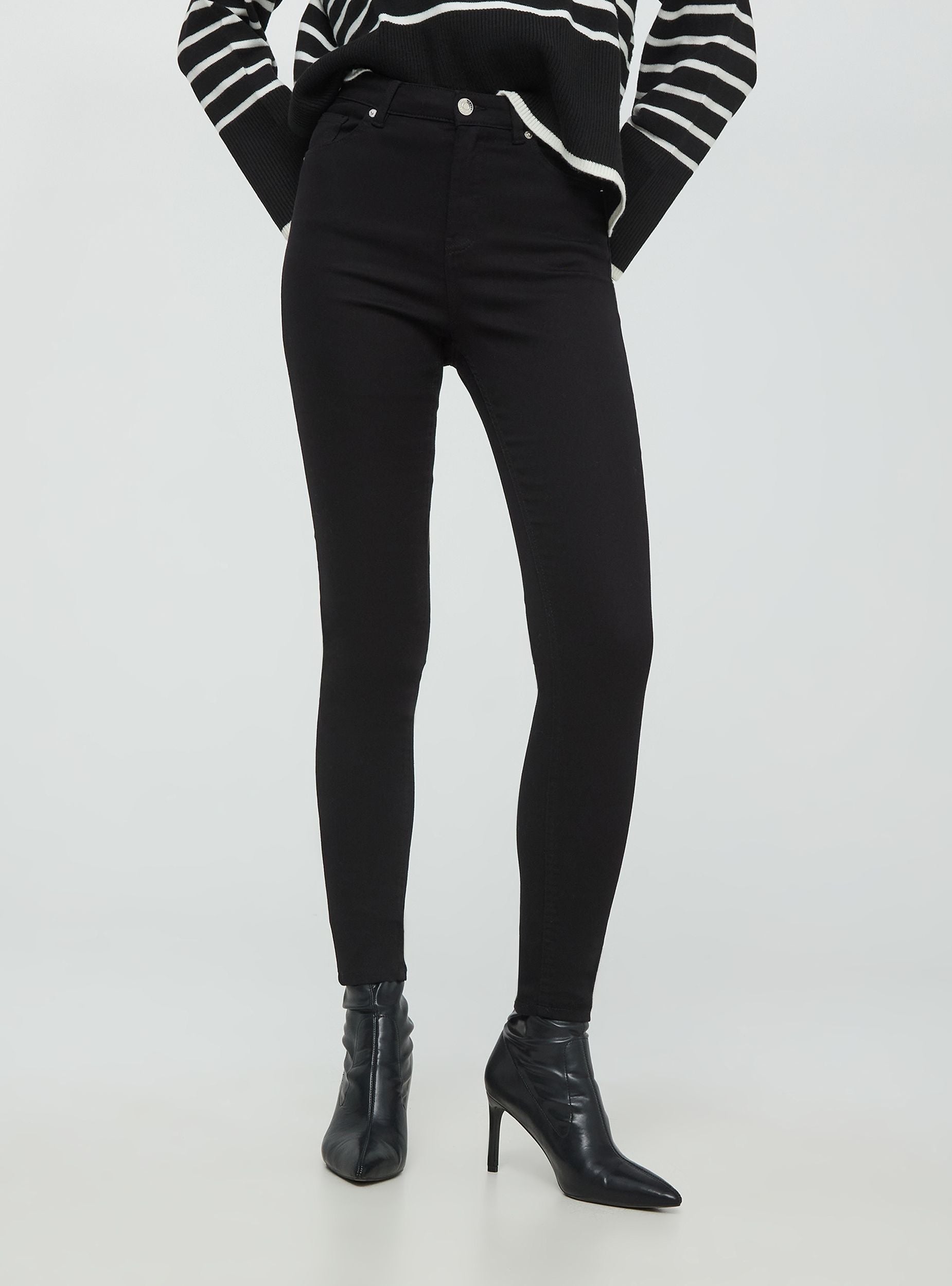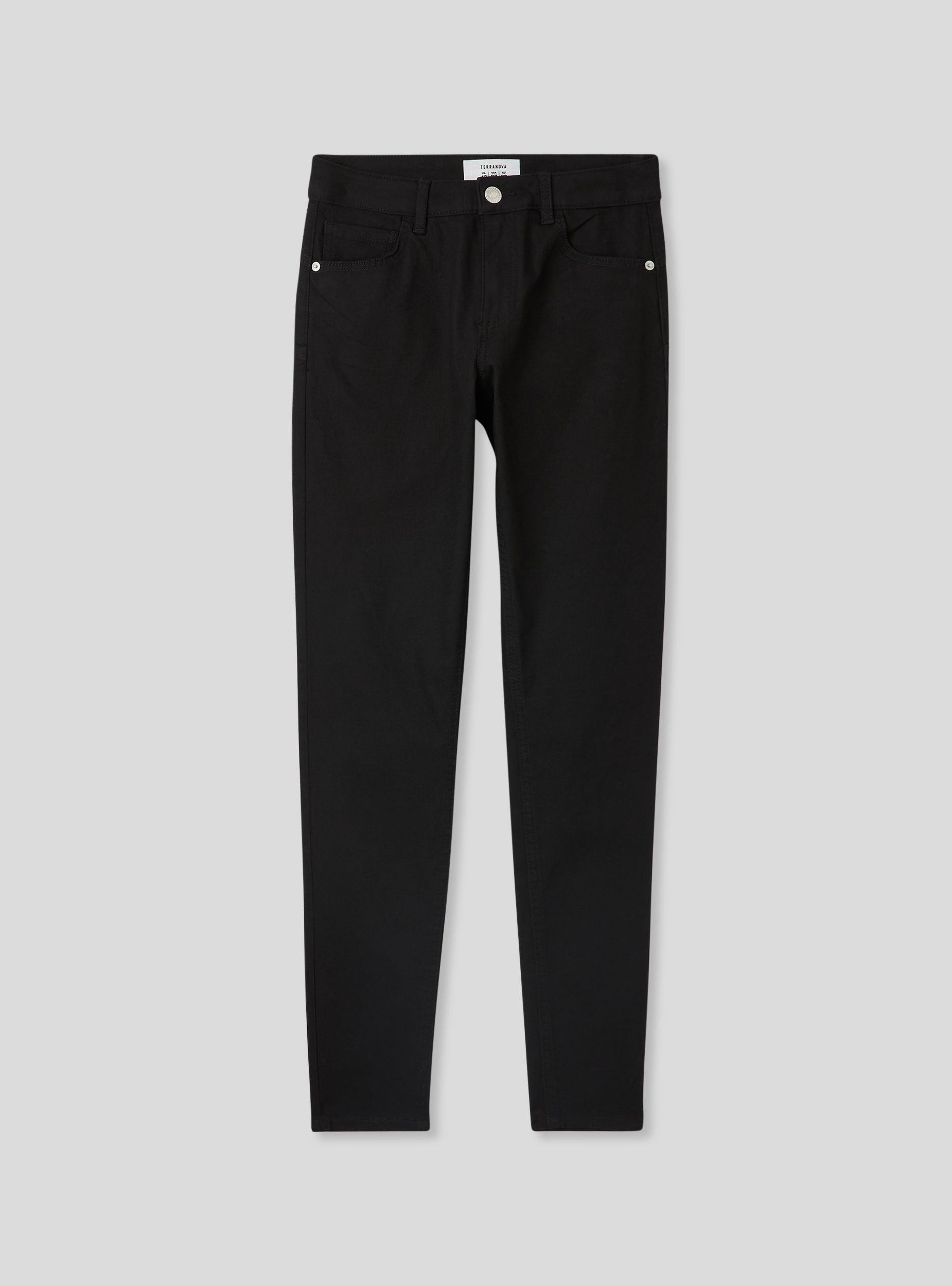 Pantaloni skinny da donna effetto push up a tinta unita. Arricchiti da una chiusura con bottone metallico e zip nascosta, presentano cinque tasche funzionali. Le cuciture e i rivetti metallici completano il design moderno. La vestibilità aderente li rende ideali per un look casual chic, perfetti per il lavoro o uscite informali.Dettagli
