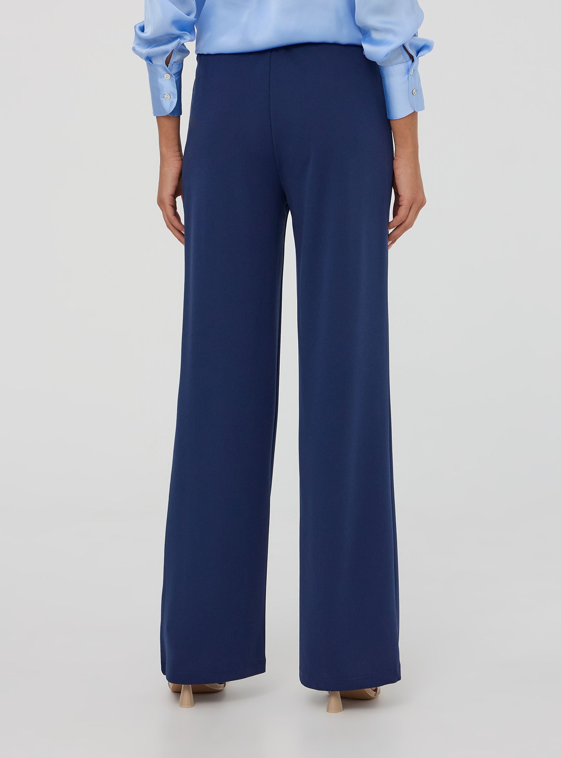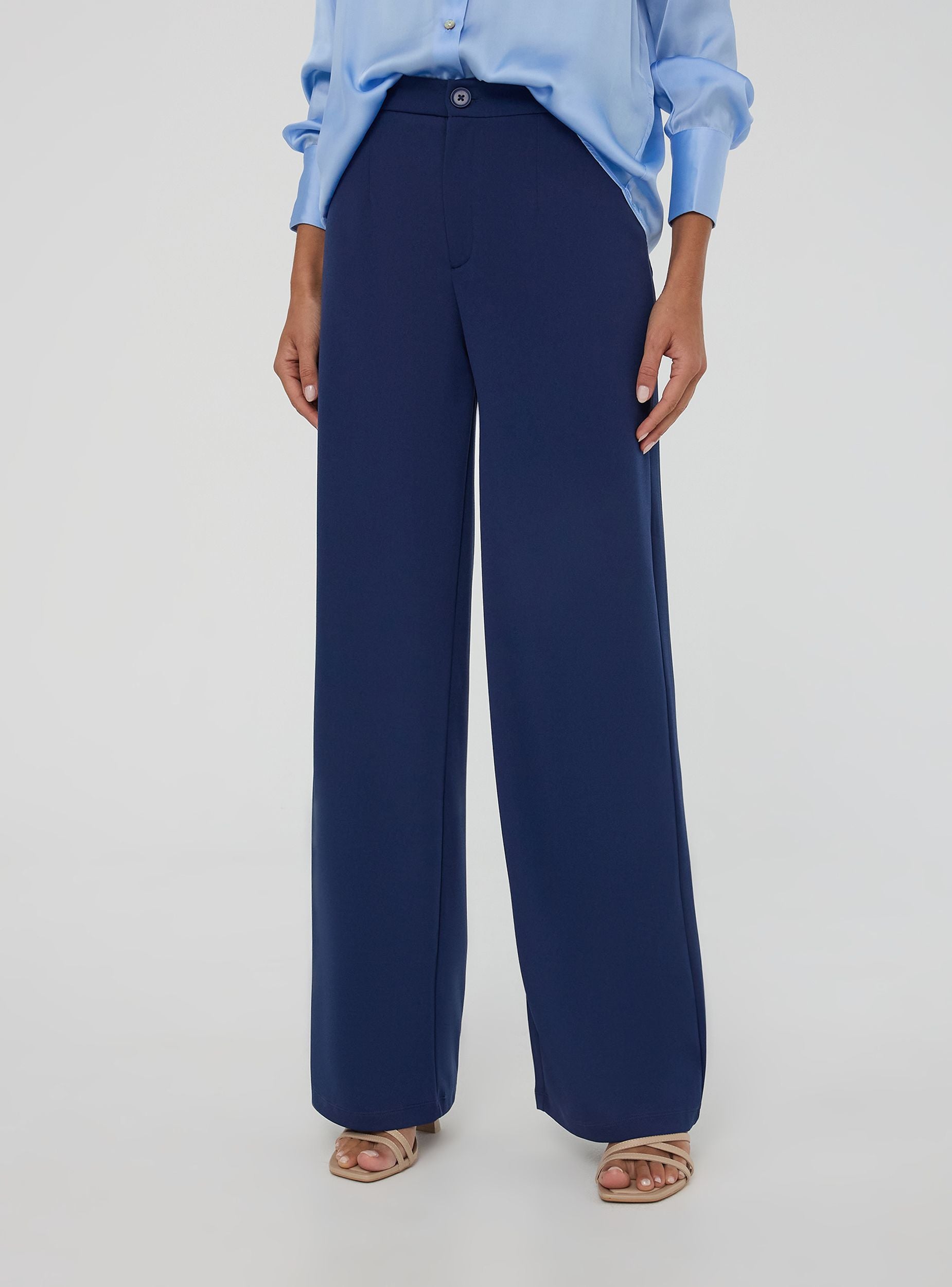 Pantaloni da donna a tinta unita con vestibilità wide leg, perfetti per un look elegante e moderno. La chiusura con bottone e zip garantisce praticità e stile. Ideali per essere abbinati a blazer coordinati per un outfit formale o a bluse leggere e sandali per un’occasione più casual. Versatili per ufficio, eventi o uscite serali.Dettagli