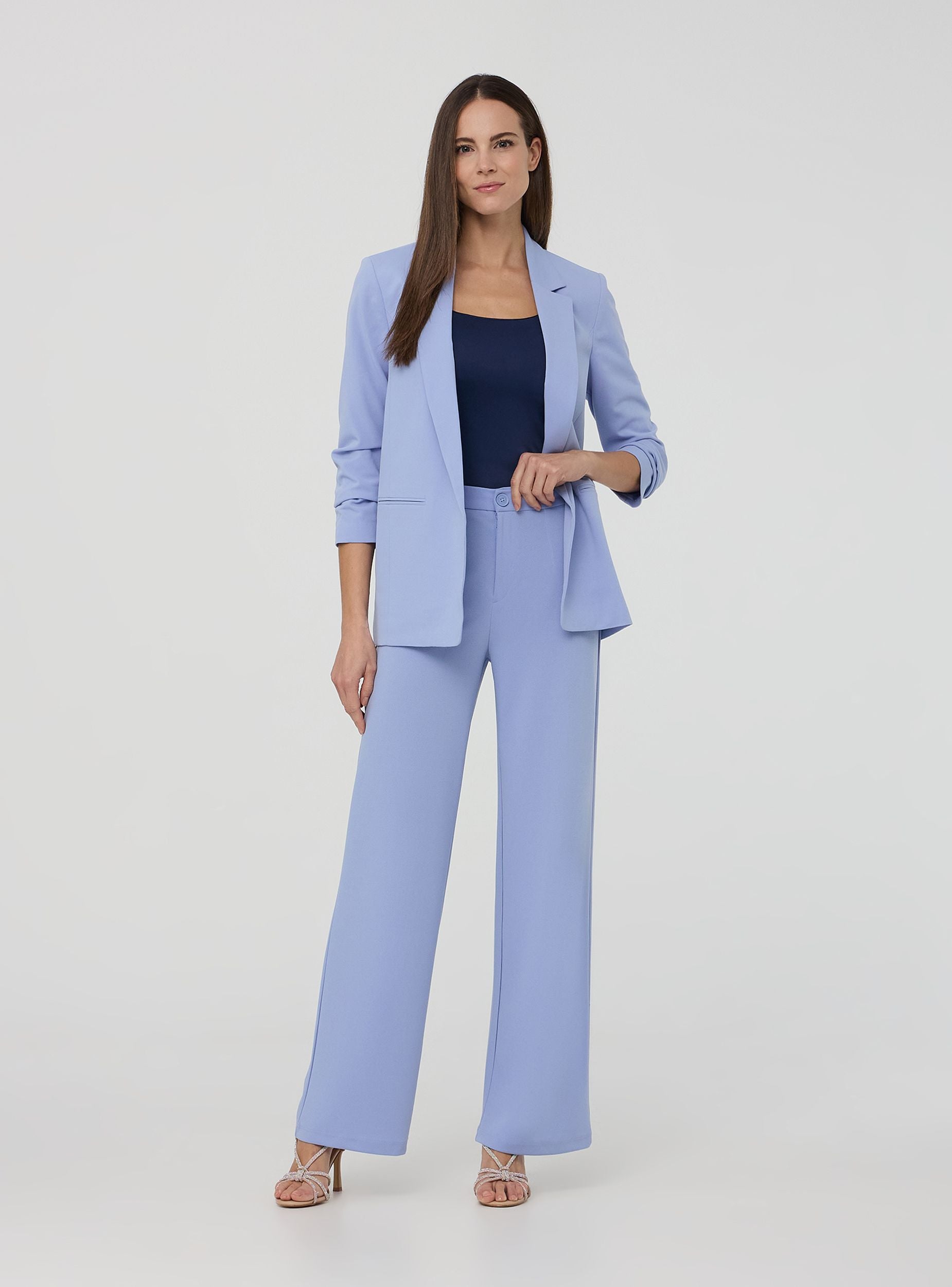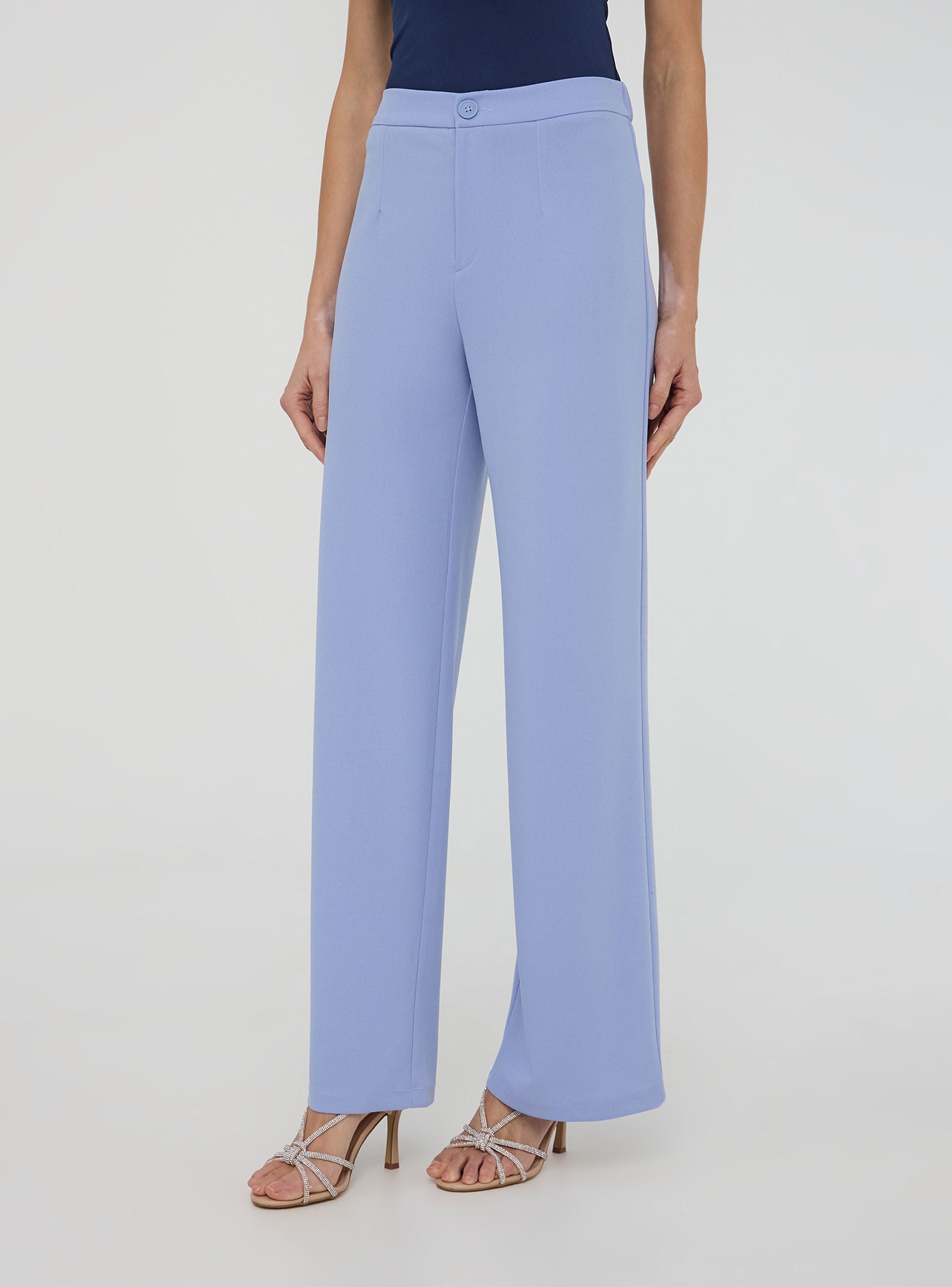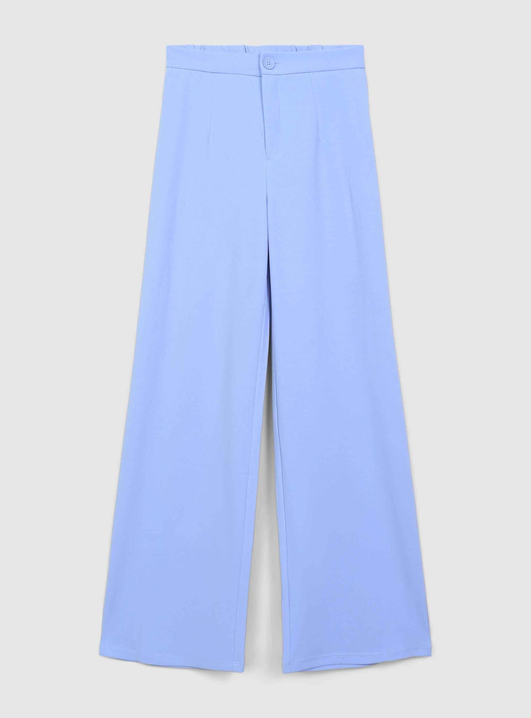 Pantaloni da donna a tinta unita con vestibilità wide leg, perfetti per un look elegante e moderno. La chiusura con bottone e zip garantisce praticità e stile. Ideali per essere abbinati a blazer coordinati per un outfit formale o a bluse leggere e sandali per un’occasione più casual. Versatili per ufficio, eventi o uscite serali.Dettagli