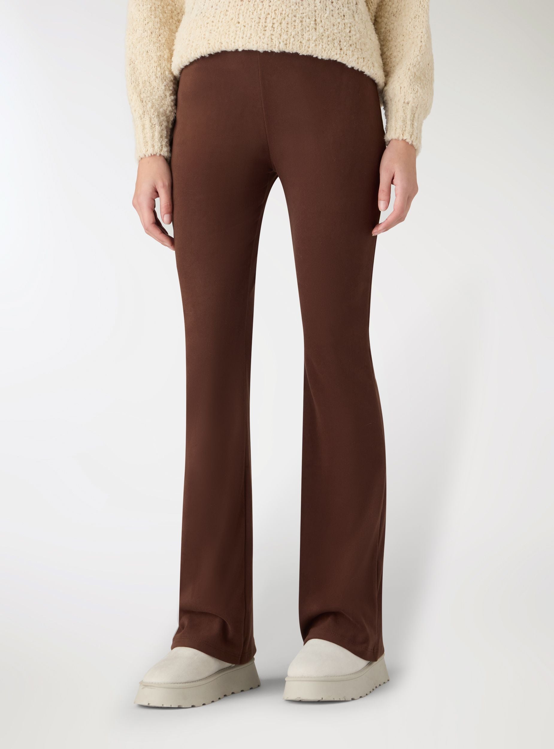 Pantaloni tuta da donna tinta unita, pensati per il tempo libero e outfit casual. Vita elasticizzata senza chiusure, linea aderente sulla coscia che apre in fondo a zampa per slanciare la silhouette. Lunghezza lunga fino alla caviglia. Facili da abbinare a felpe e sneakers, perfetti anche con maglietta e cardigan per un look comodo. Tessuto pesante.Dettagli