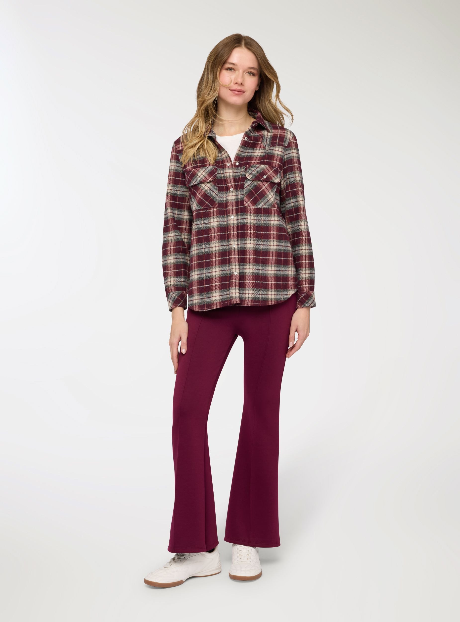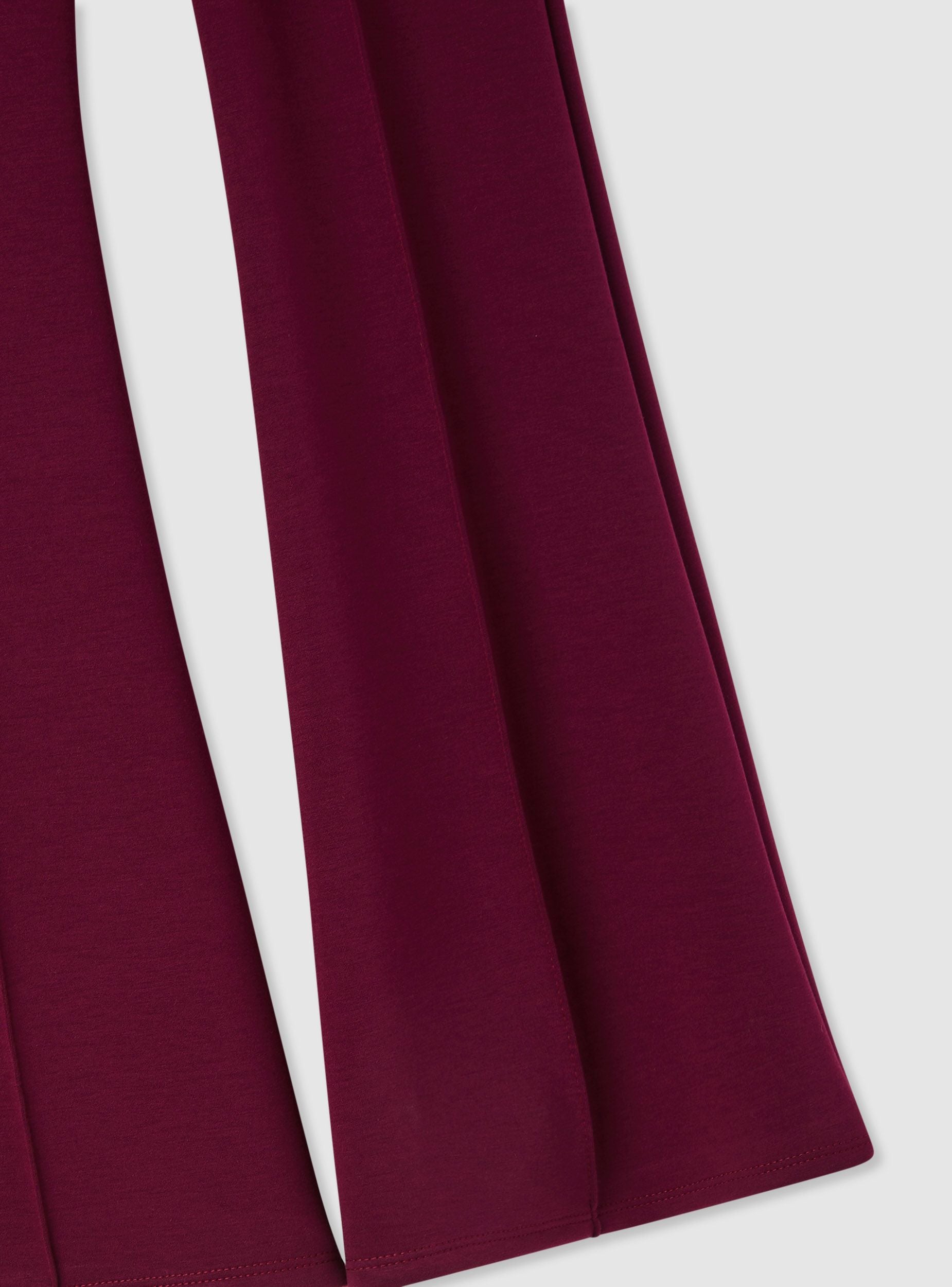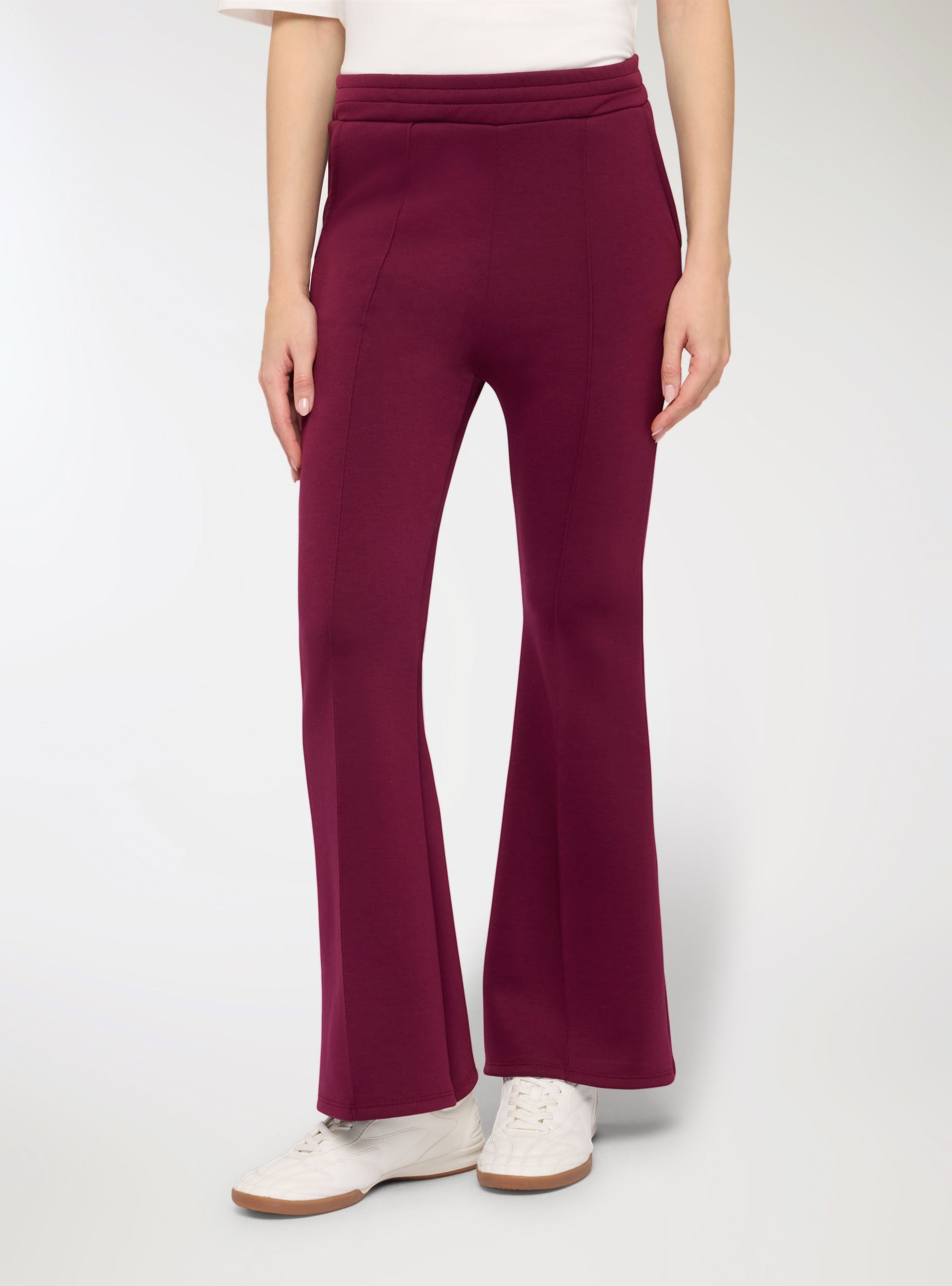 Pantaloni tuta da donna a tinta unita con vita elasticizzata e gamba svasata. Il modello lungo presenta cuciture centrali effetto piega e tasche laterali a filetto, ideali per donare un tocco curato anche ai look informali. Perfetti per il tempo libero o per viaggiare, si abbinano facilmente a felpe over o magliette basic e sneakers, garantendo una vestibilità confortevole e uno stile disinvolto. Tessuto pesante.Dettagli