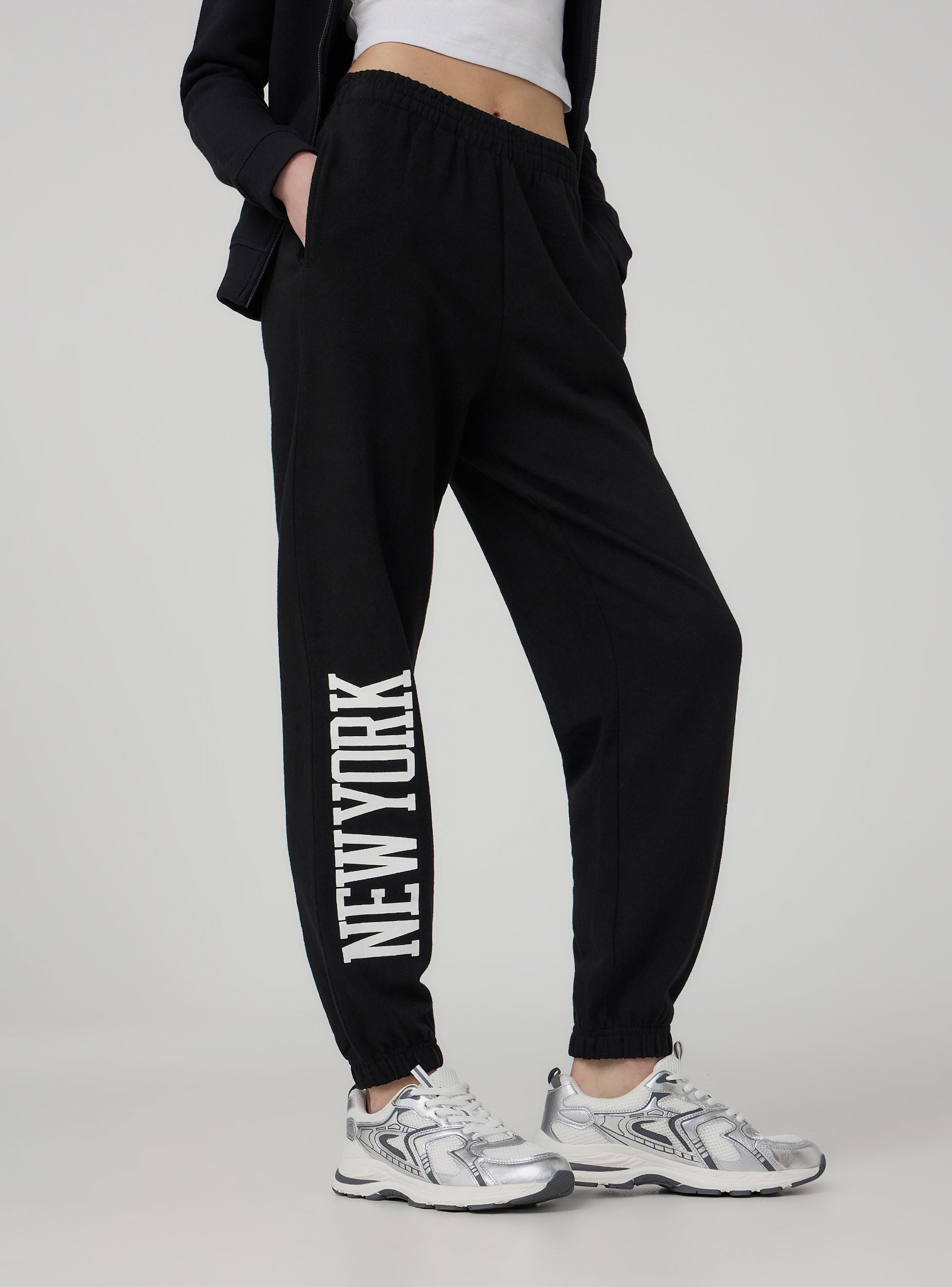 Pantaloni della tuta leggeri da donna a tinta unita, dal taglio lungo e confortevole. Presentano una stampa stile college lungo la gamba, elastico in vita per una vestibilità comoda, vita alta che valorizza la figura e pratici polsini alle caviglie. Dotati di tasche laterali funzionali, sono perfetti per uno stile casual e sportivo.Dettagli