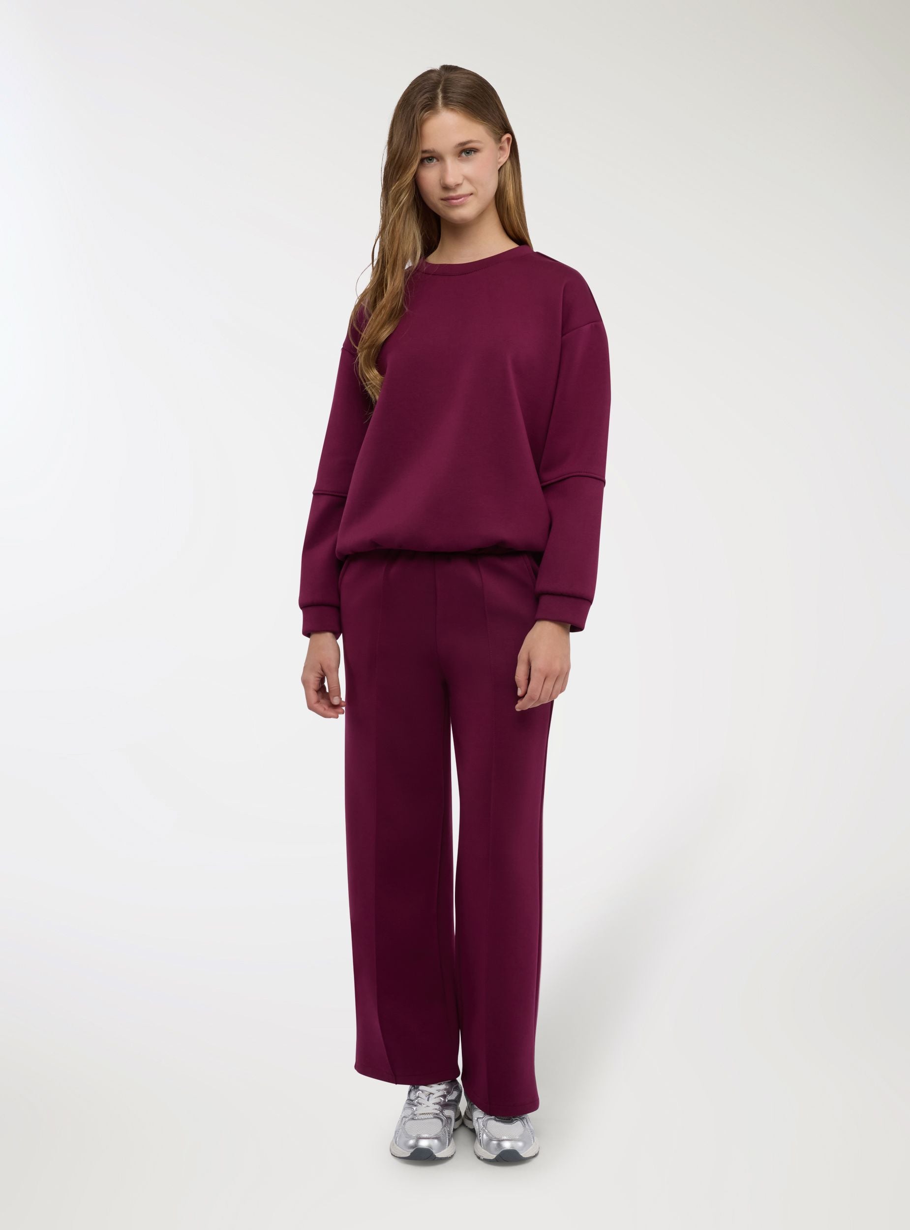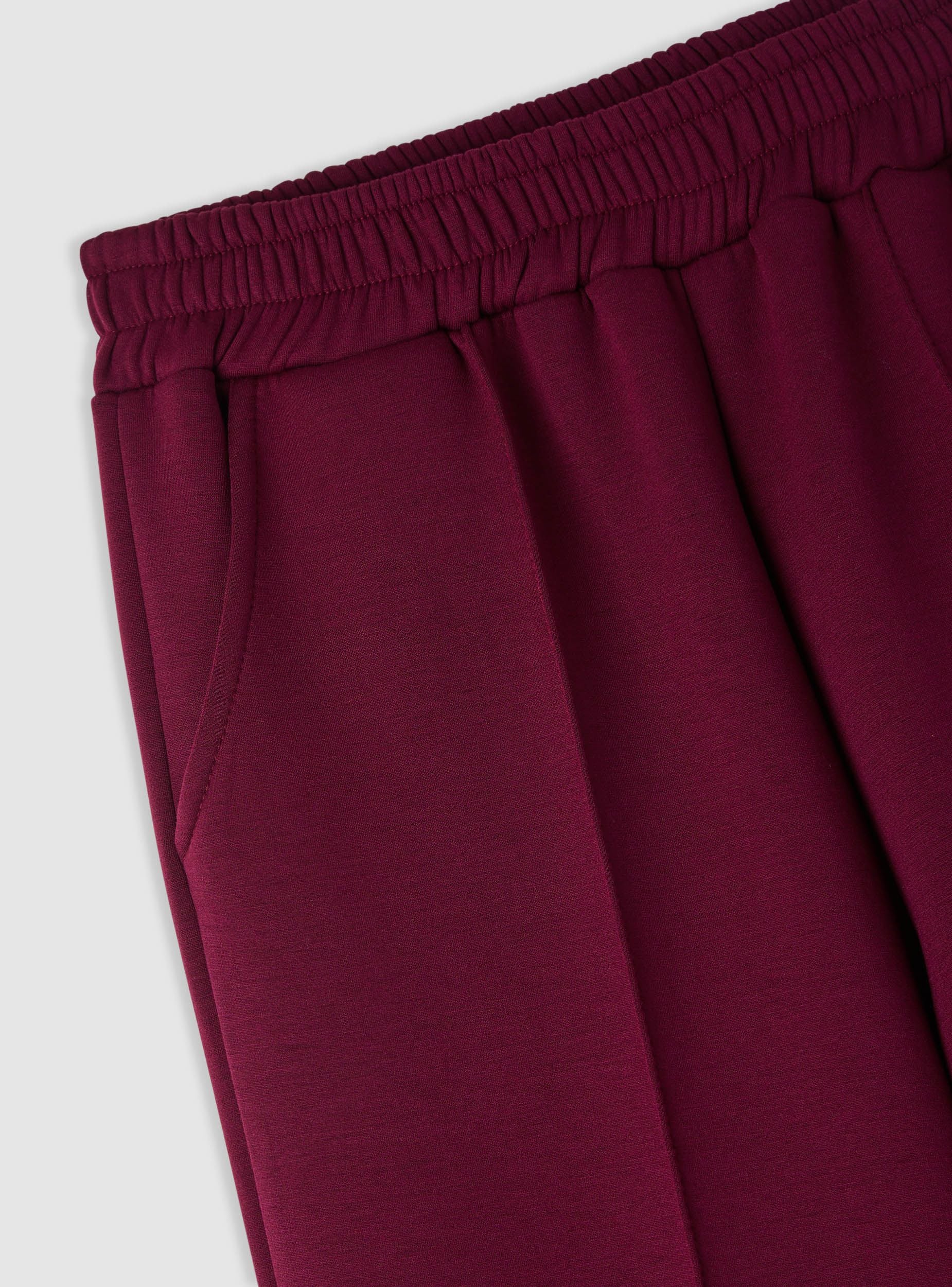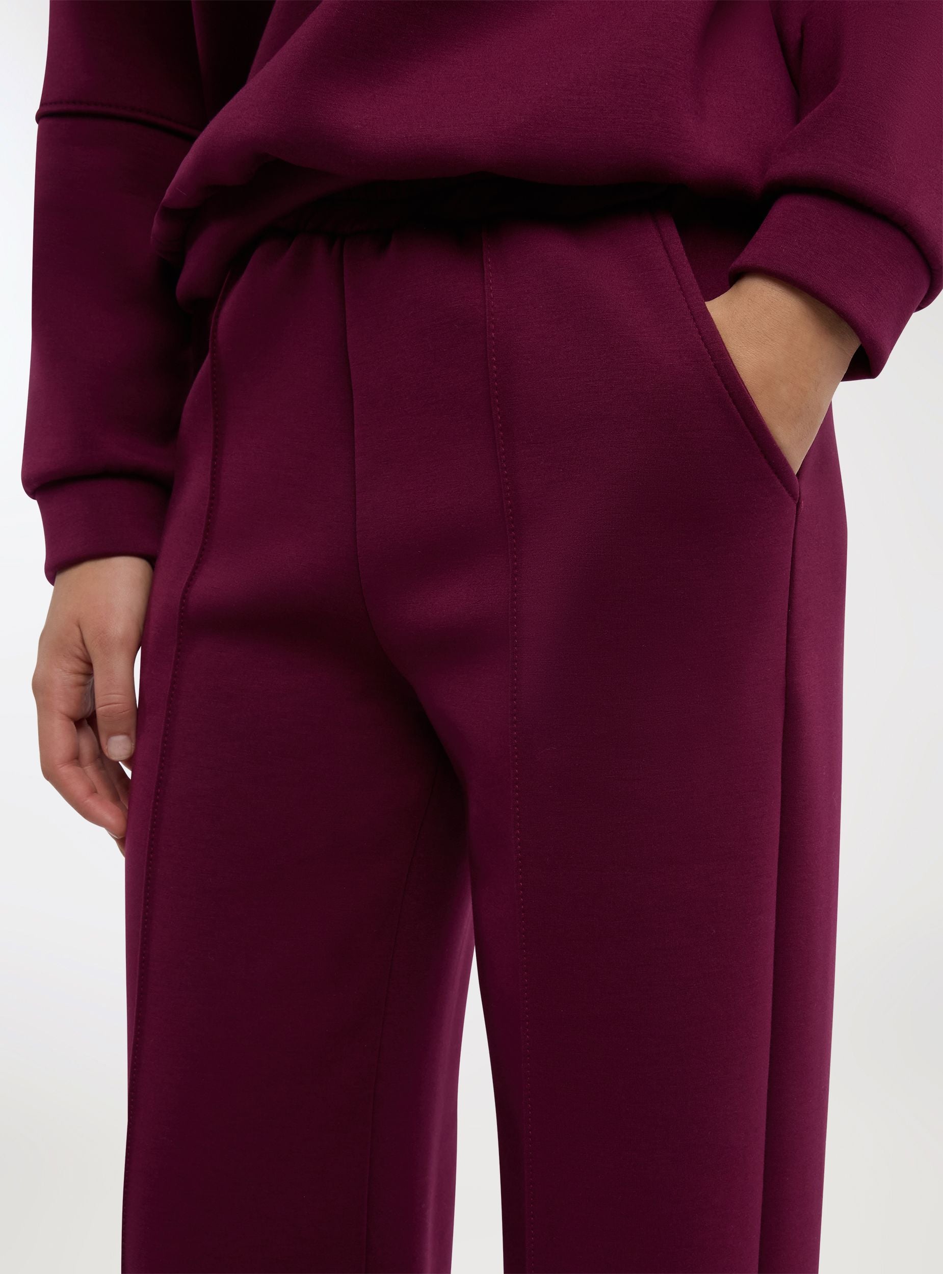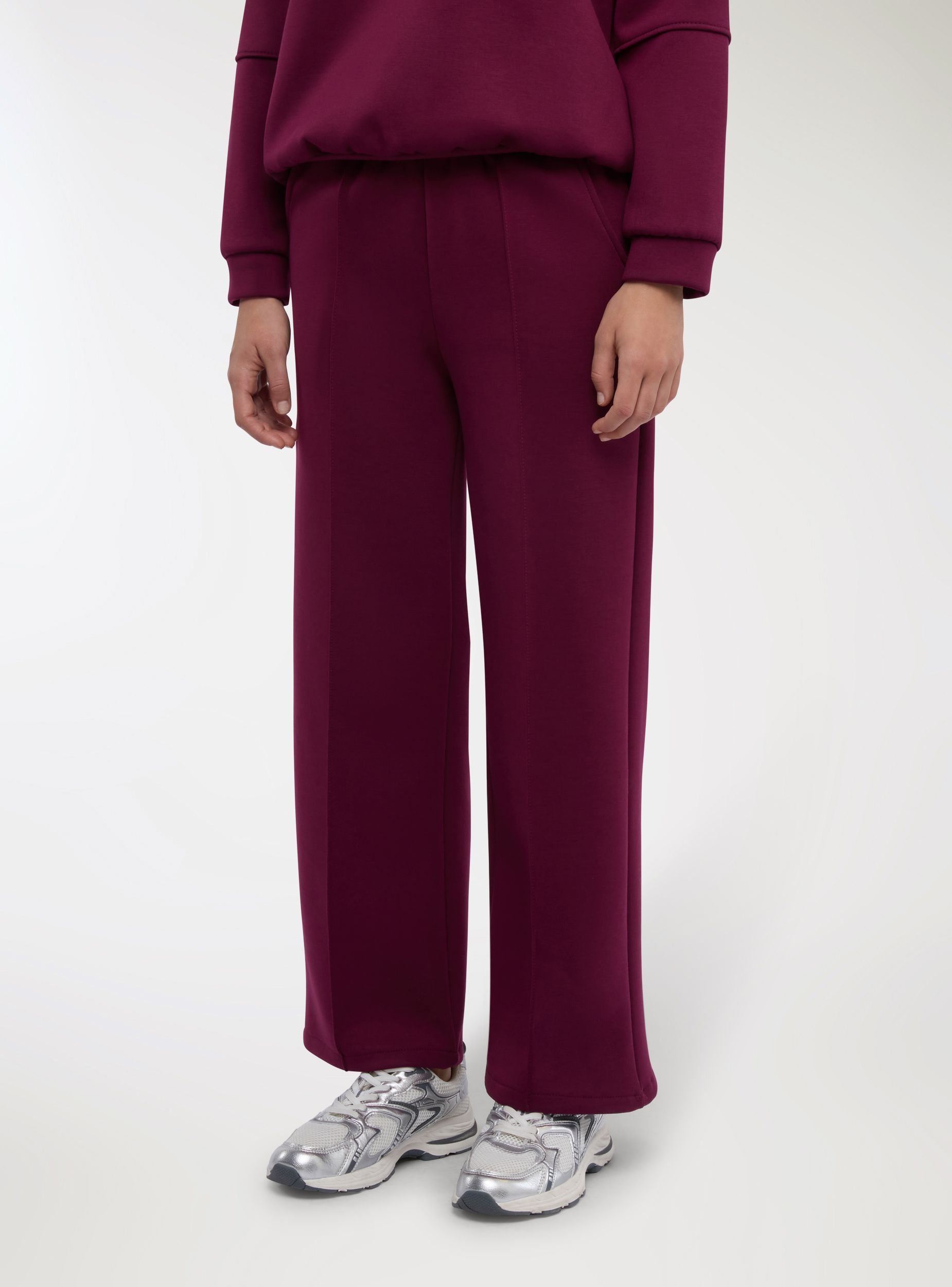 Pantaloni tuta da donna in tinta unita con vestibilità ampia e gamba wide leg. Vita con elastico per comfort quotidiano e pratica regolazione, tasche laterali inserite e piega cucita lungo la gamba che dona un look curato. Realizzati in tessuto morbido, ideali per il tempo libero e per outfit casual con felpe o magliette e sneakers. Tessuto pesante.Dettagli