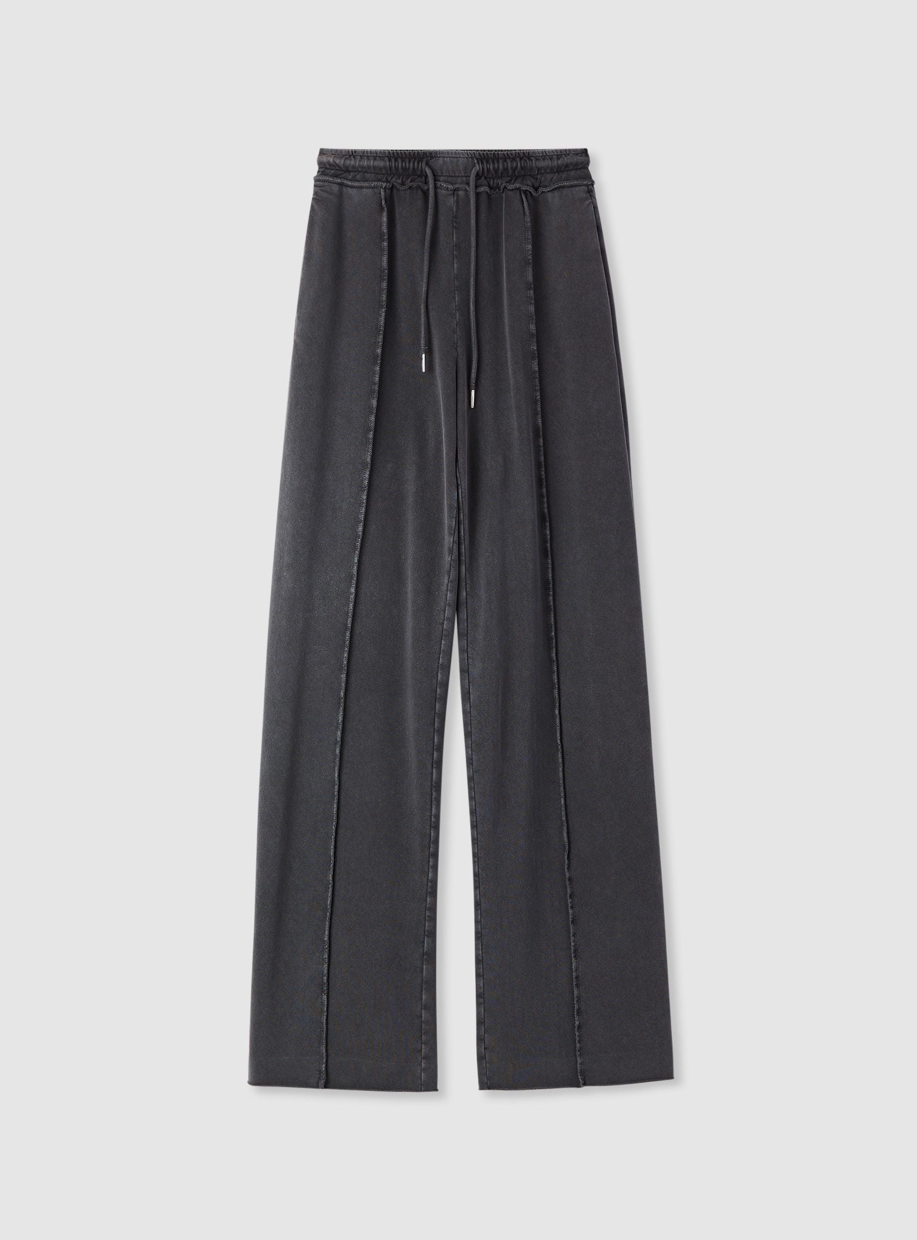 Pantaloni tuta da donna in tinta unita con vestibilità ampia e gamba wide leg. Vita elasticizzata con coulisse e dettagli di nervature sul davanti che slanciano la linea. Lunghezza alla caviglia, ideali per il tempo libero o look casual in città. Facili da abbinare a felpe oversize o magliette e sneakers, offrono comfort quotidiano grazie alla costruzione con elastico e al design essenziale. Tessuto pesante.Dettagli