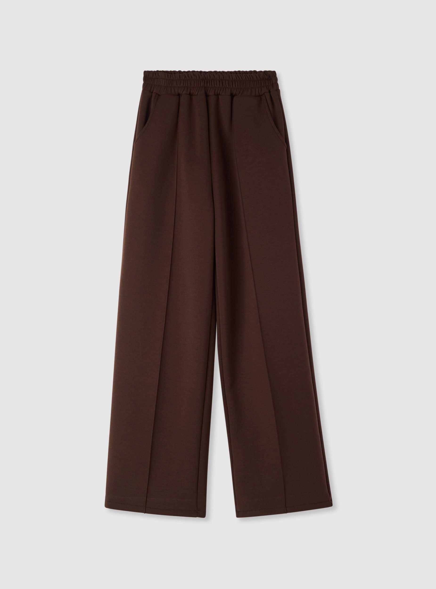 Pantaloni tuta da donna in tinta unita con vestibilità ampia e gamba wide leg. Vita con elastico per comfort quotidiano e pratica regolazione, tasche laterali inserite e piega cucita lungo la gamba che dona un look curato. Realizzati in tessuto morbido, ideali per il tempo libero e per outfit casual con felpe o magliette e sneakers. Tessuto pesante.Dettagli