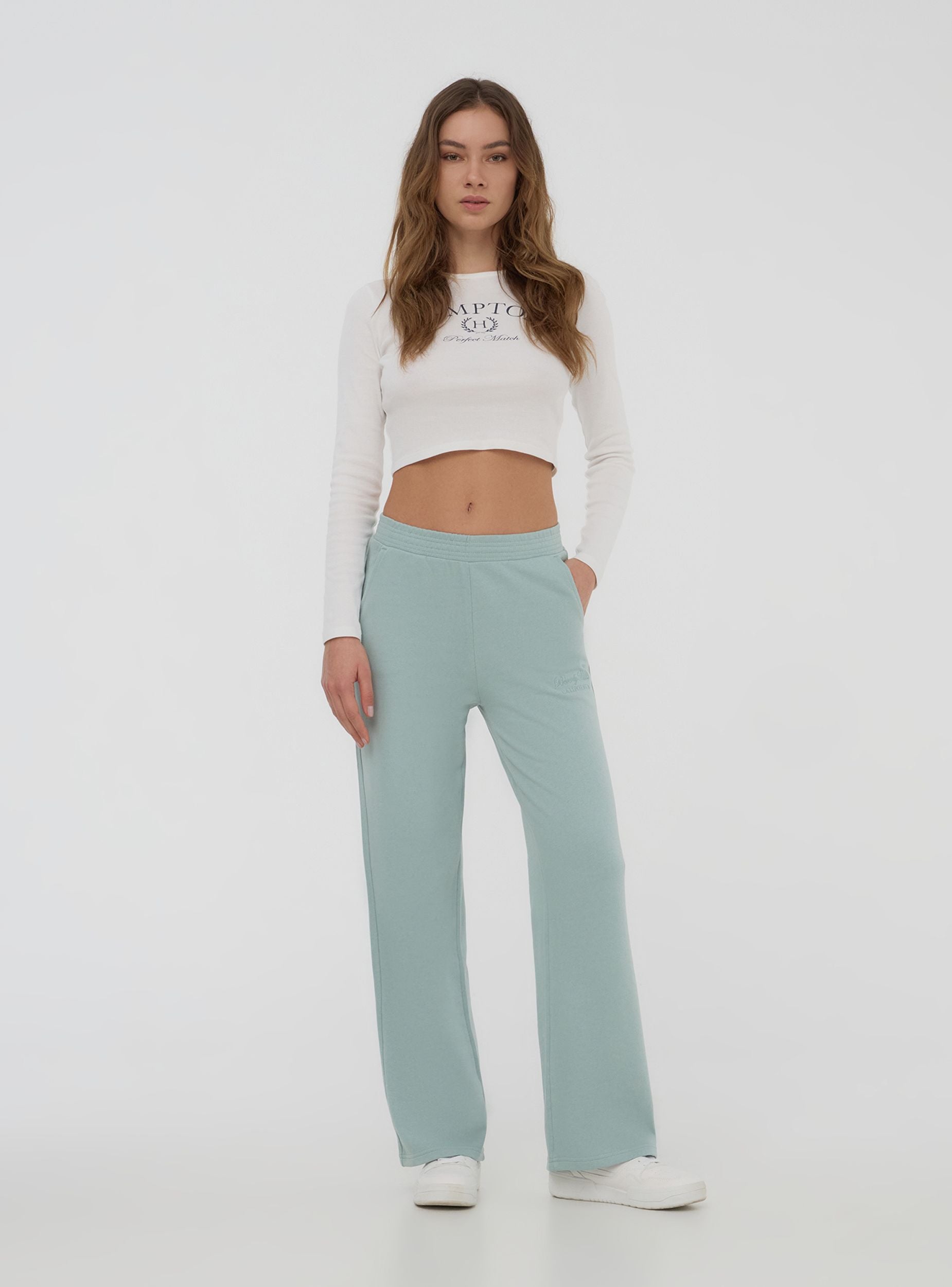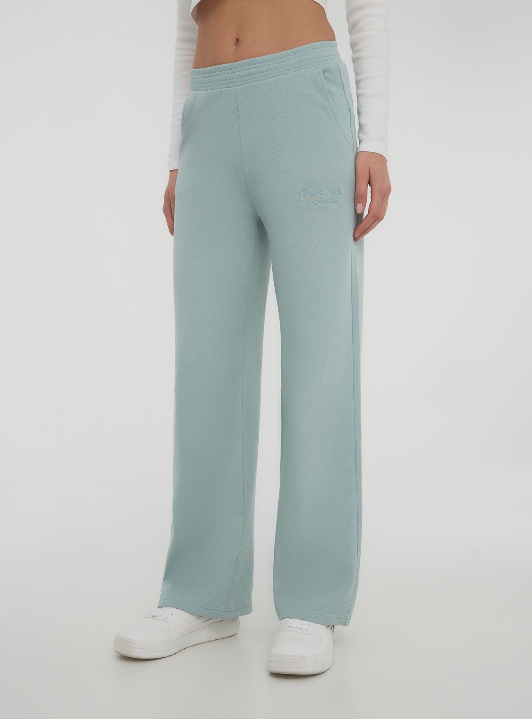 Pantaloni leggeri della tuta da donna dal taglio wide leg, perfetti per un look casual e confortevole. Il design a tinta unita si distingue per un ricamo ispirato allo stile college americano, che aggiunge un tocco sportivo e trendy. Dotati di pratiche tasche e di un elastico in vita che garantisce una vestibilità ottimale, sono ideali da abbinare a felpe oversize e sneakers per il tempo libero o a un crop top per un outfit più dinamico. Versatili e alla moda, accompagnano con stile ogni momento della giornata.Dettagli