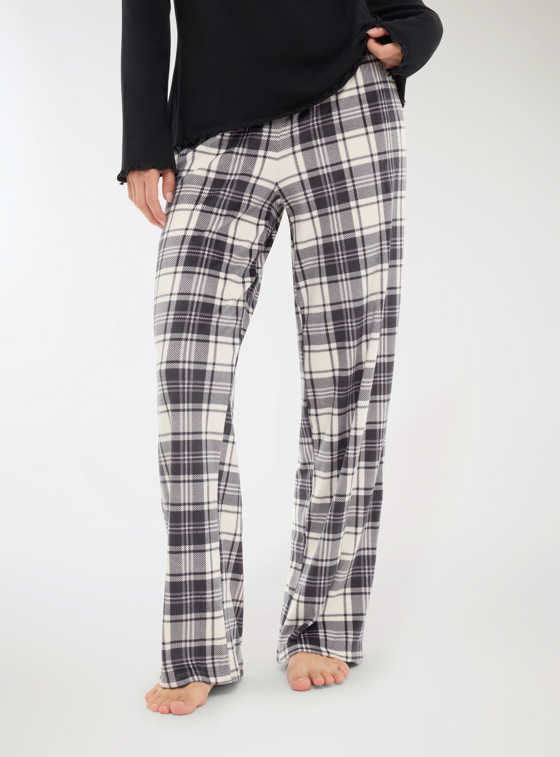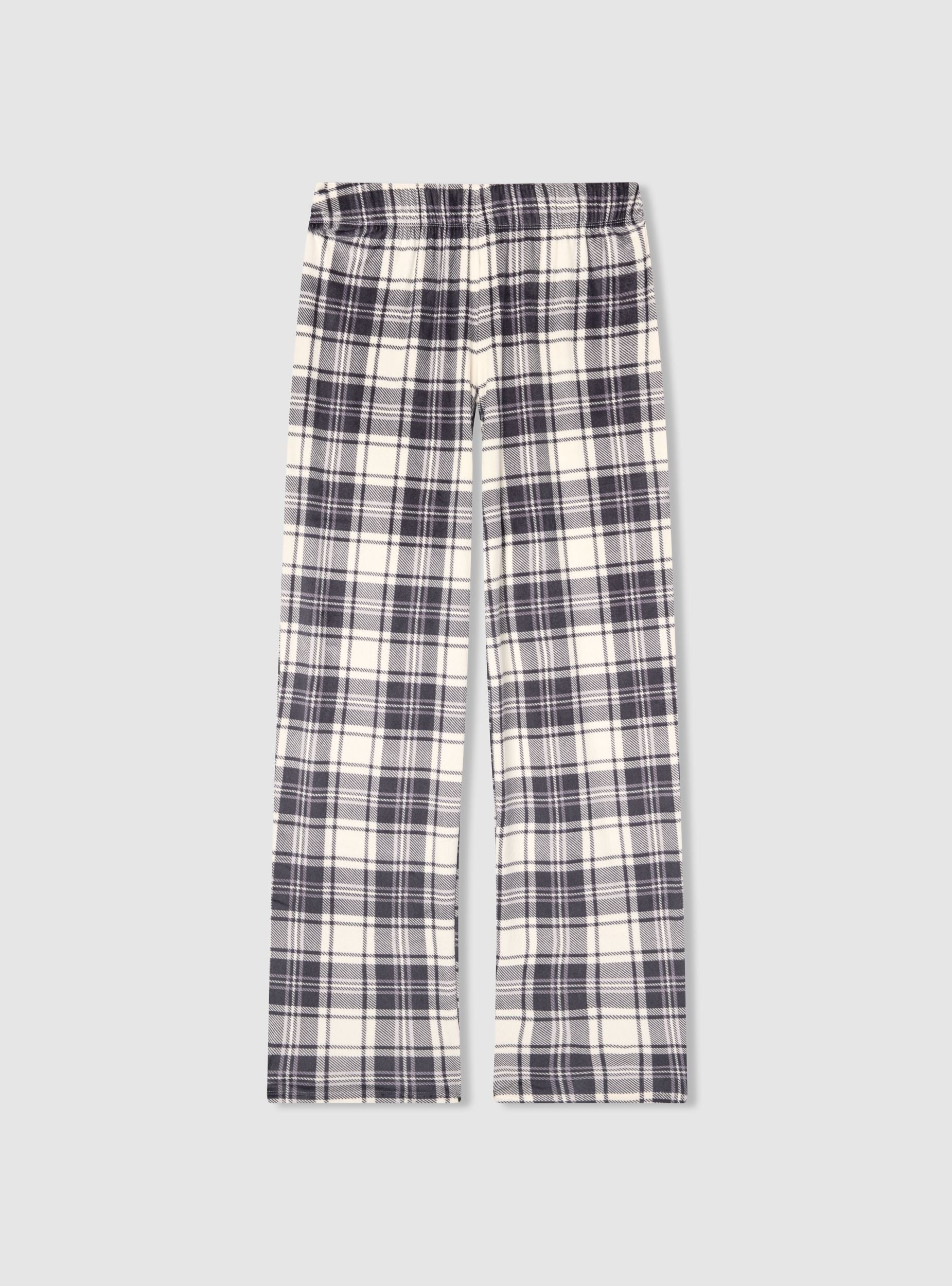 Pantaloni lunghi da donna con fantasia a quadri, ideali per un look casual e rilassato. Presentano una vestibilità ampia con gamba larga, perfetti per essere abbinati a magliette o maglioni per un outfit confortevole. La chiusura con elastico in vita garantisce praticità e comodità. Adatti per giornate informali o per momenti di relax.