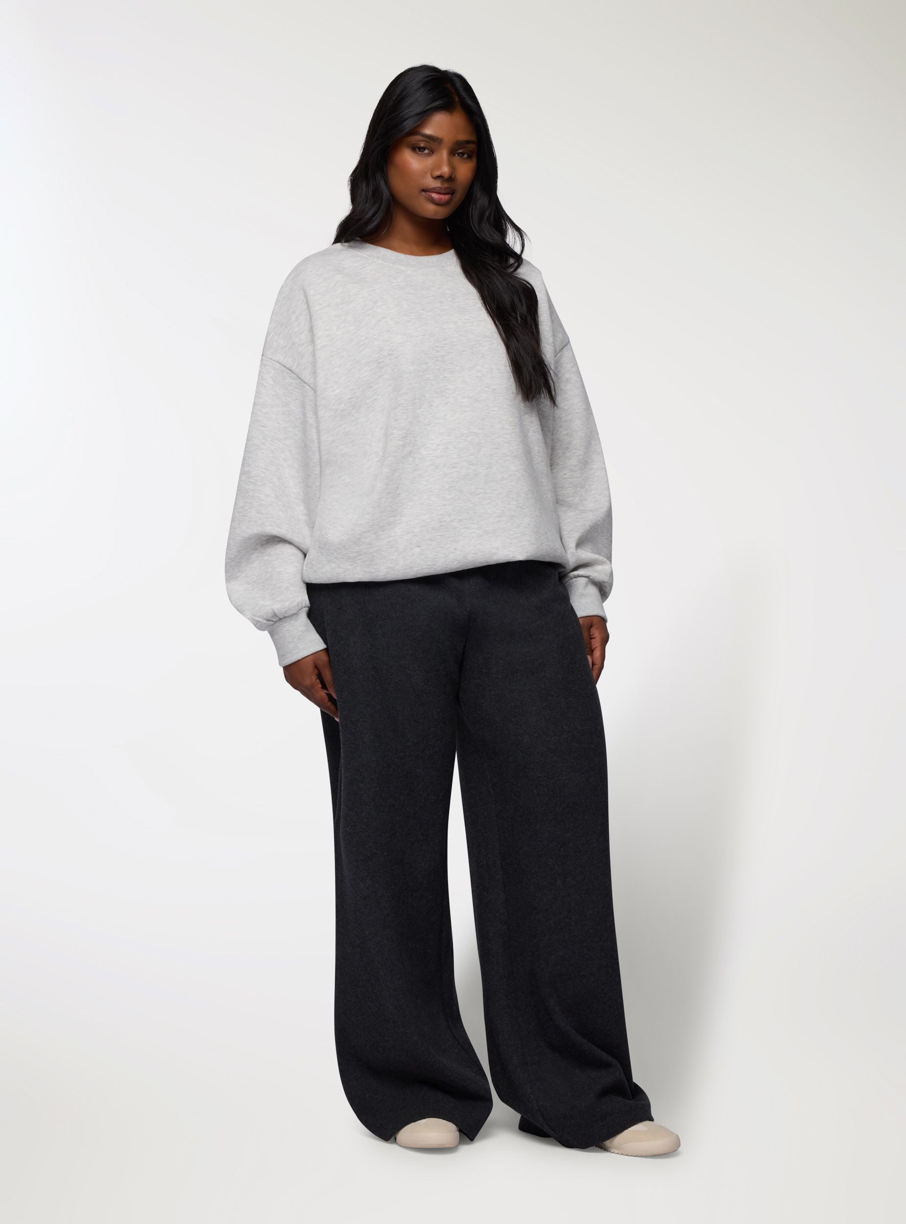Pantaloni da donna a gamba ampia, perfetti per un look casual quotidiano. Modello lungo in tinta unita con vita con elastico, comodo e facile da indossare. La linea wide leg cade dritta e rilassata, ideale con magliette morbide o felpe, ma anche con camicie per un outfit più curato. Tasche assenti per un profilo pulito e minimal. Versatili da abbinare a sneakers.Dettagli