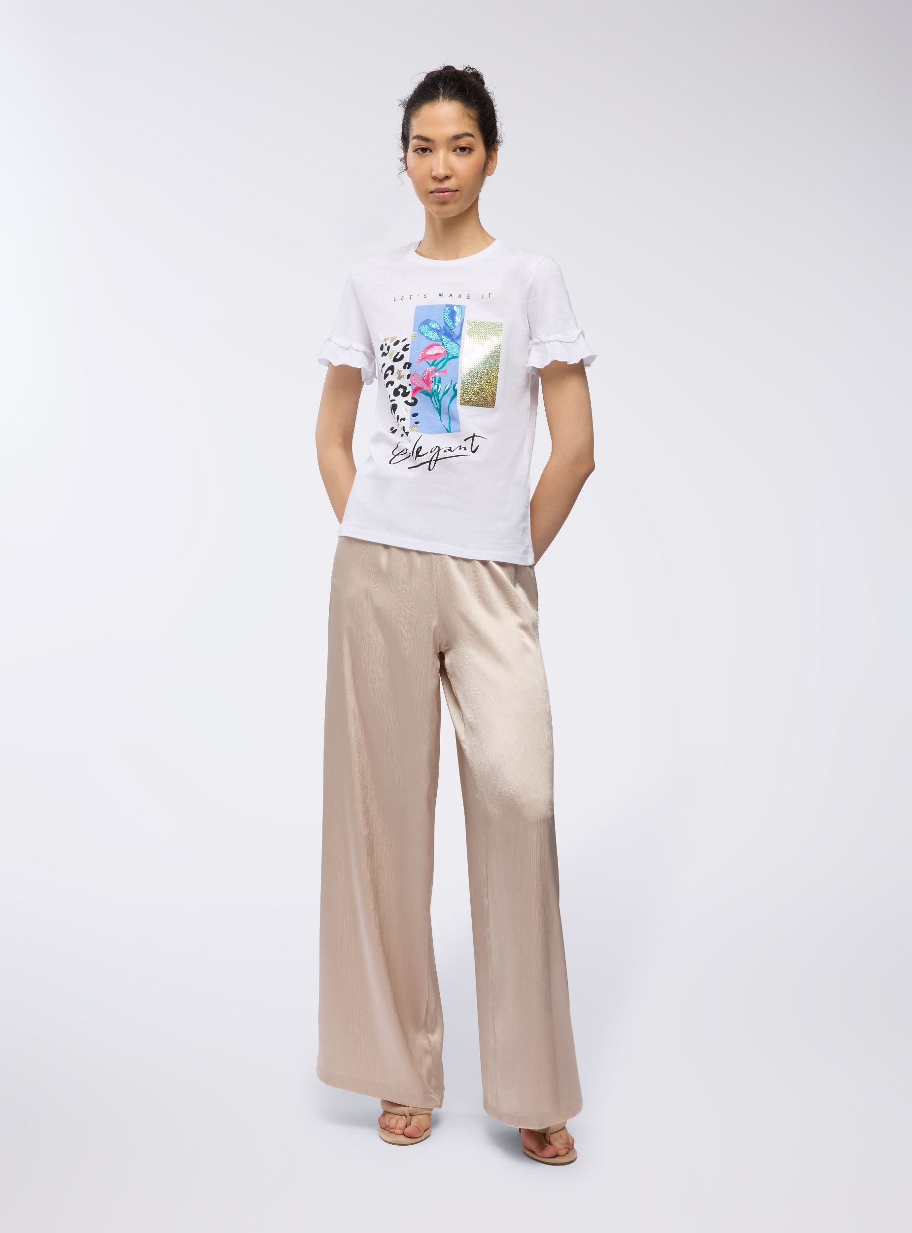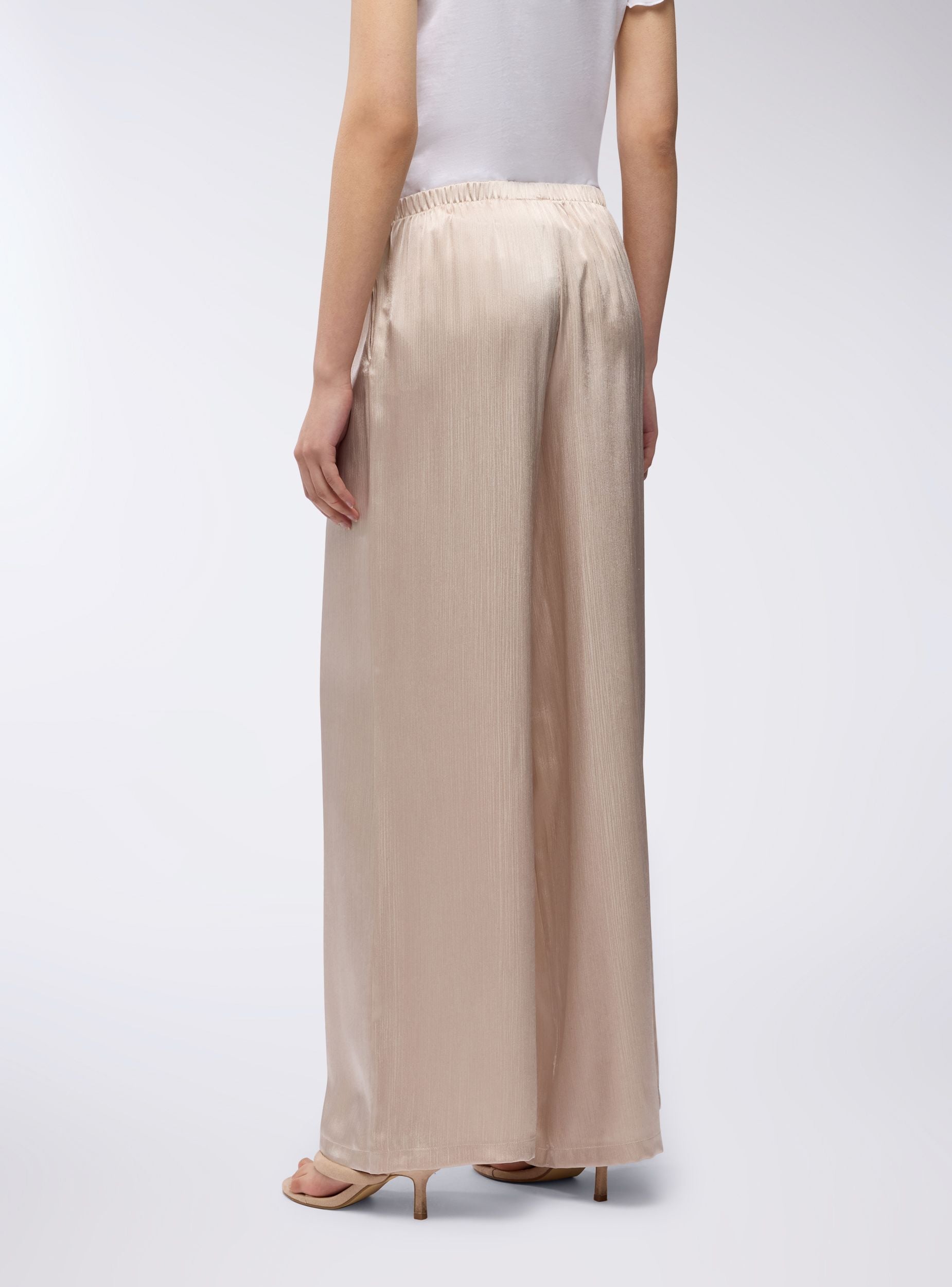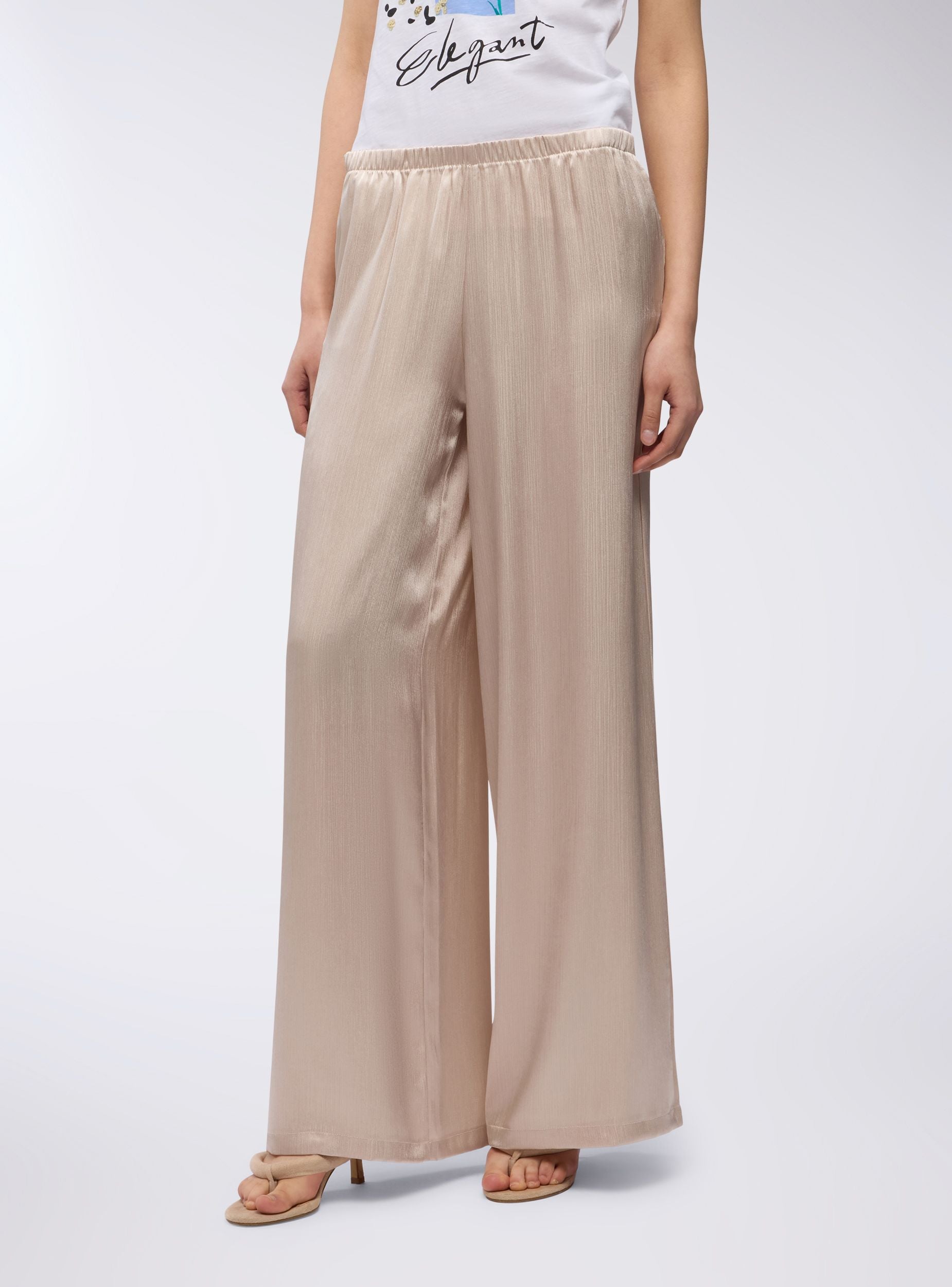 Pantaloni da donna ideali per occasioni eleganti e raffinate. Caratterizzati da una vestibilità ampia e un design leggermente plissettato e cangiante, dotati di comode tasche laterali, presentano una gamba larga che dona un tocco sofisticato. Perfetti da abbinare a bluse o top per un look chic e moderno. Un capo versatile per eventi speciali e serate glamour.Dettagli