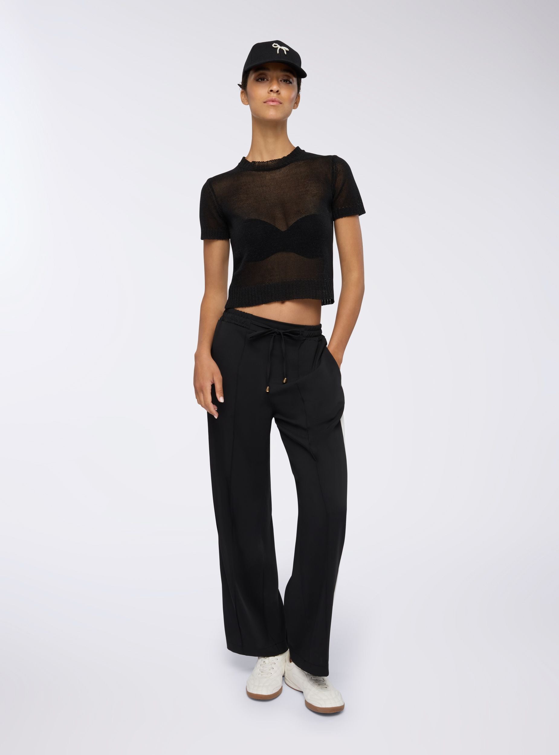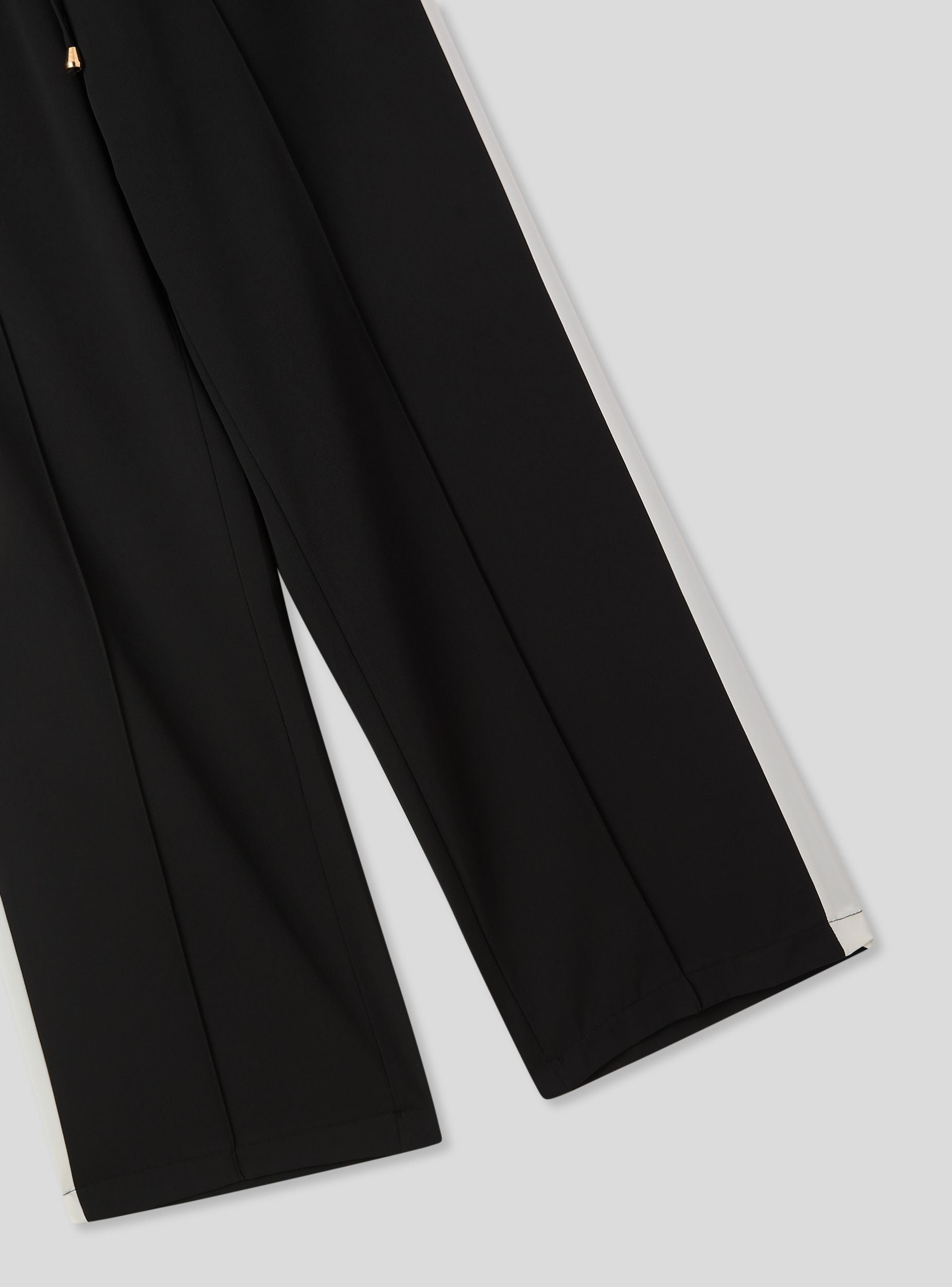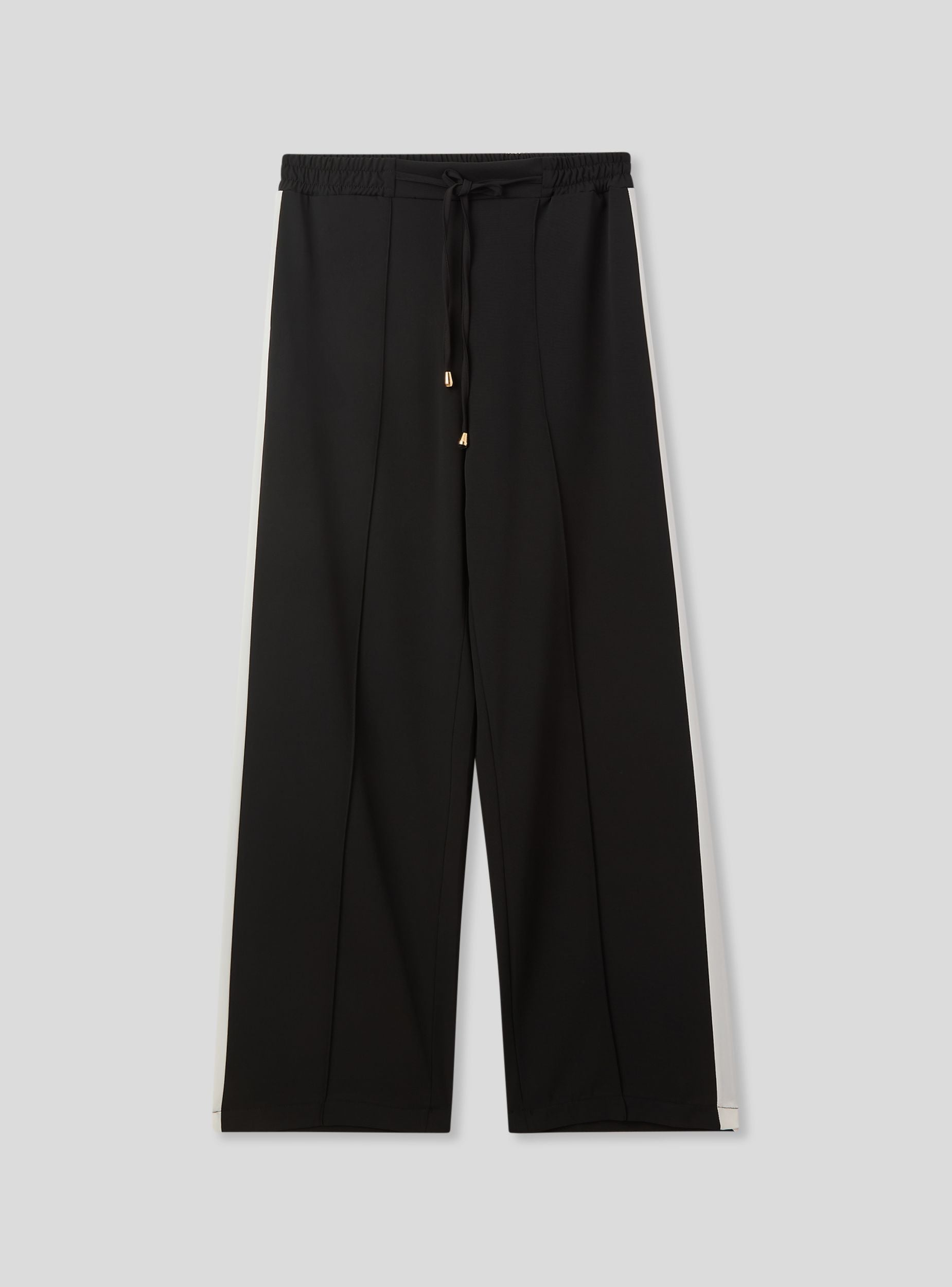 Pantaloni da donna dal taglio wide leg, perfetti per uno stile casual-chic che unisce comfort e modernità. La vita elasticizzata con coulisse regolabile offre una vestibilità comoda e dinamica, mentre la gamba ampia con piega centrale dona eleganza e slancio alla figura. Ideali per essere abbinati a top leggeri, blazer o felpe oversize, si prestano a look versatili da indossare tutti i giorni, dal lavoro al tempo libero.Dettagli