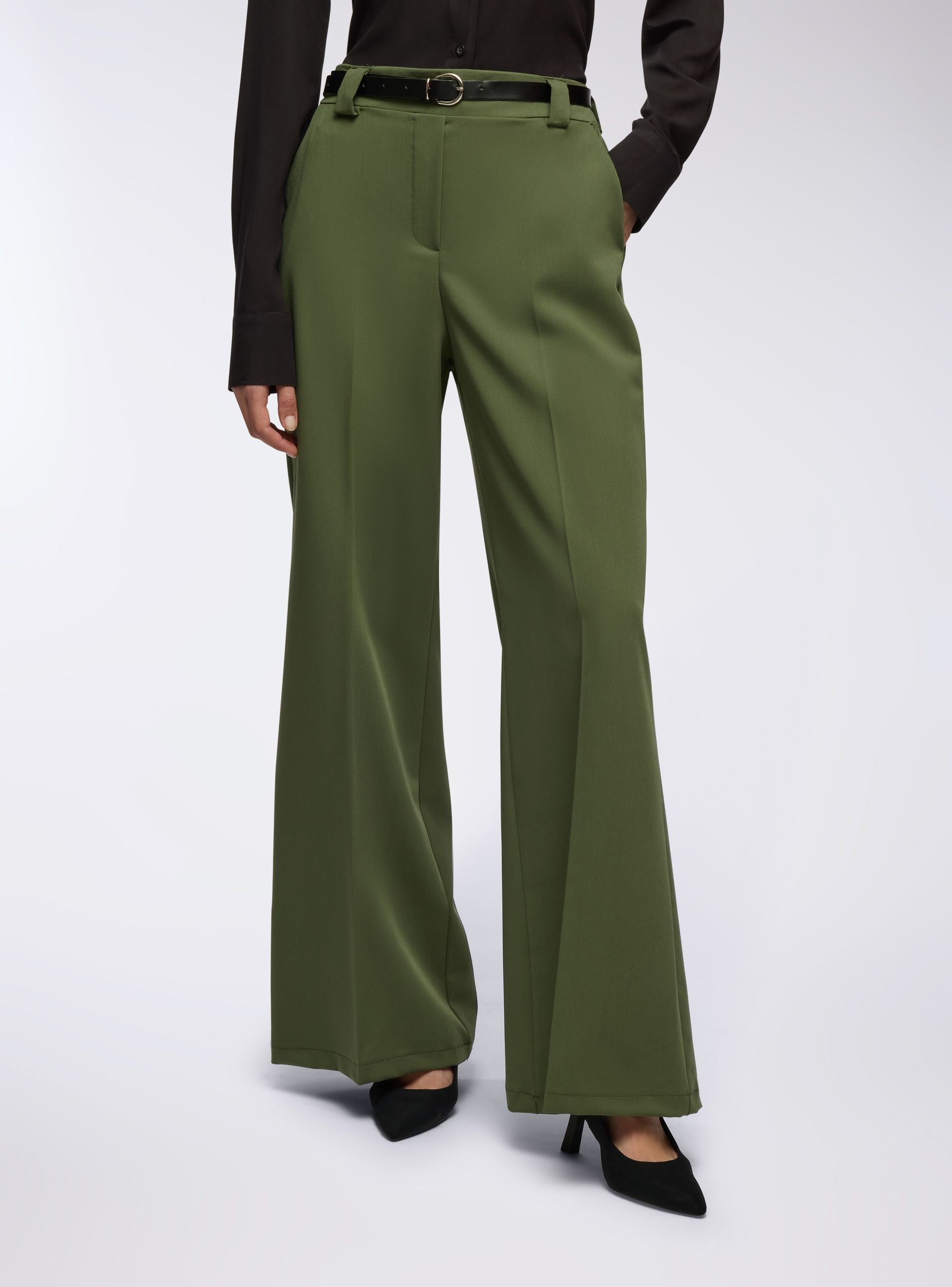 Pantaloni wide-leg da donna. Linee fluide e taglio ampio li rendono perfetti per look eleganti o casual raffinati. Il design a gamba larga slancia la figura e regala un’allure sofisticata, mentre la cintura in vita sottolinea il punto vita con un dettaglio chic. Da indossare con camicie morbide o crop top, è ideale per l’ufficio, eventi informali o uscite serali.Dettagli