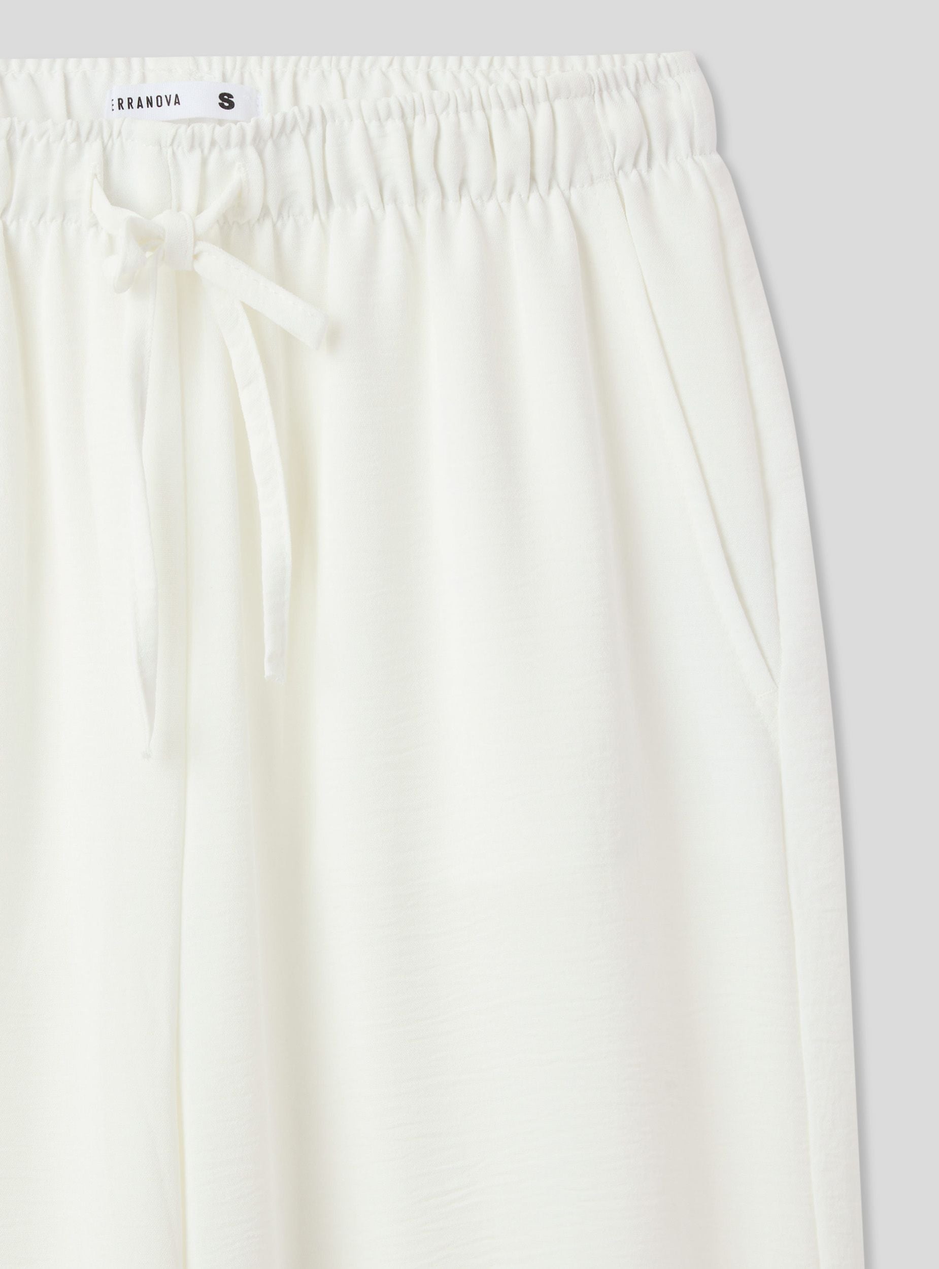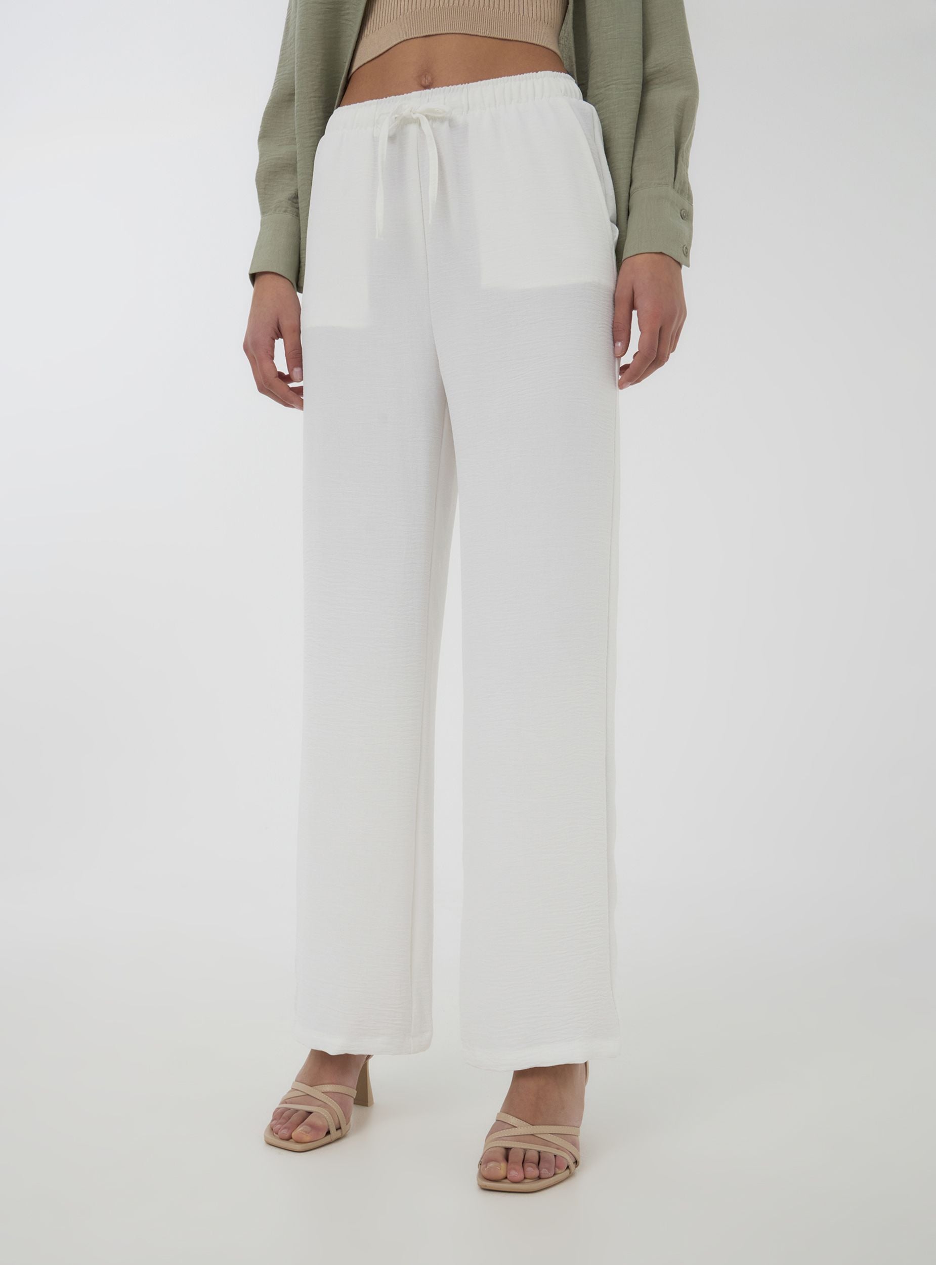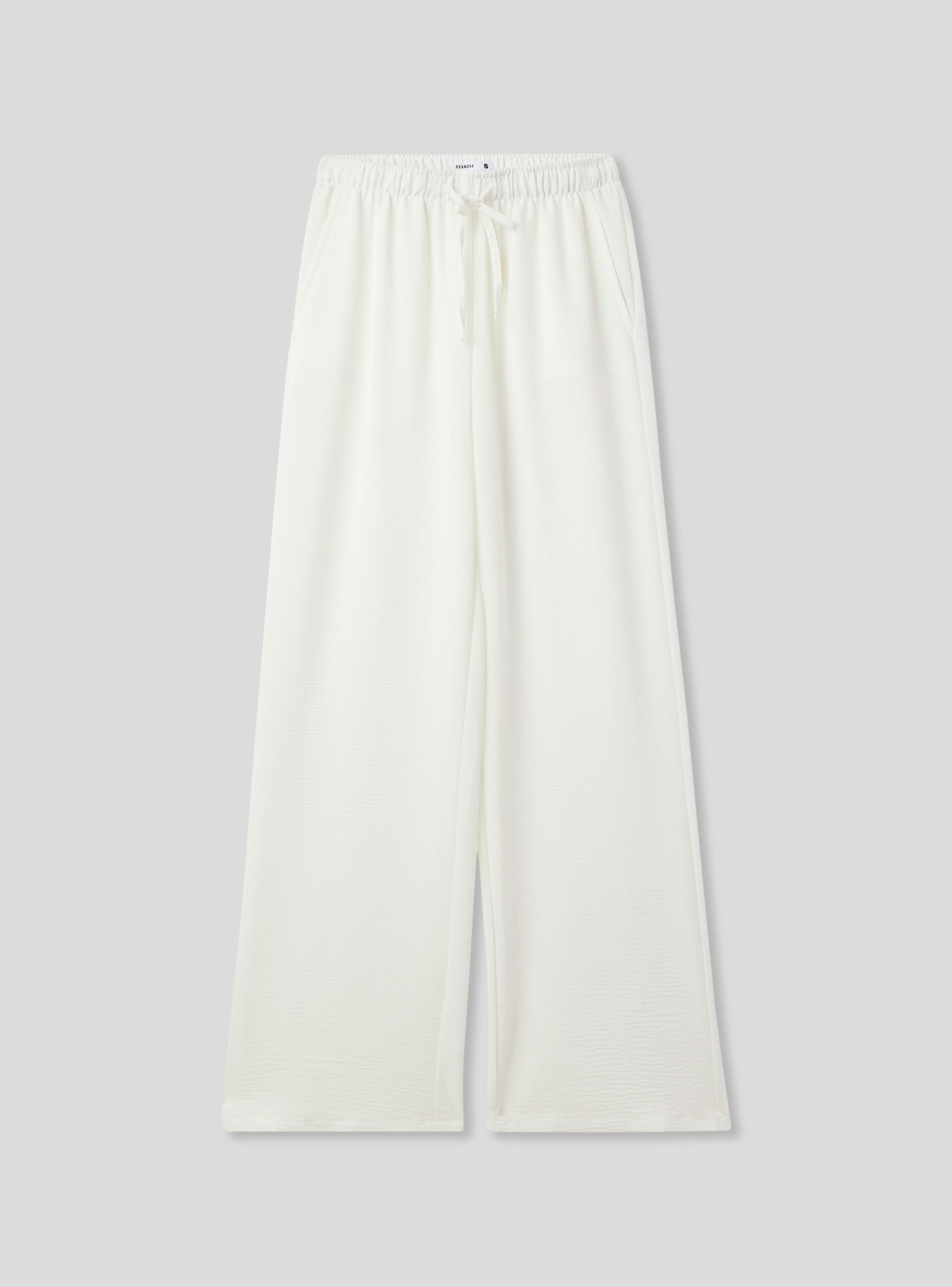 Pantaloni da donna dal design essenziale, caratterizzati da una linea a tinta unita che esalta la versatilità del capo. La silhouette wide leg offre una vestibilità comoda e fluida, ideale per ogni occasione. La presenza di pratiche tasche laterali e una comoda coulisse in vita assicura un look casual e funzionale. Perfetti per chi cerca un tocco di stile e comfort, sono il capo ideale per completare un guardaroba moderno.Dettagli