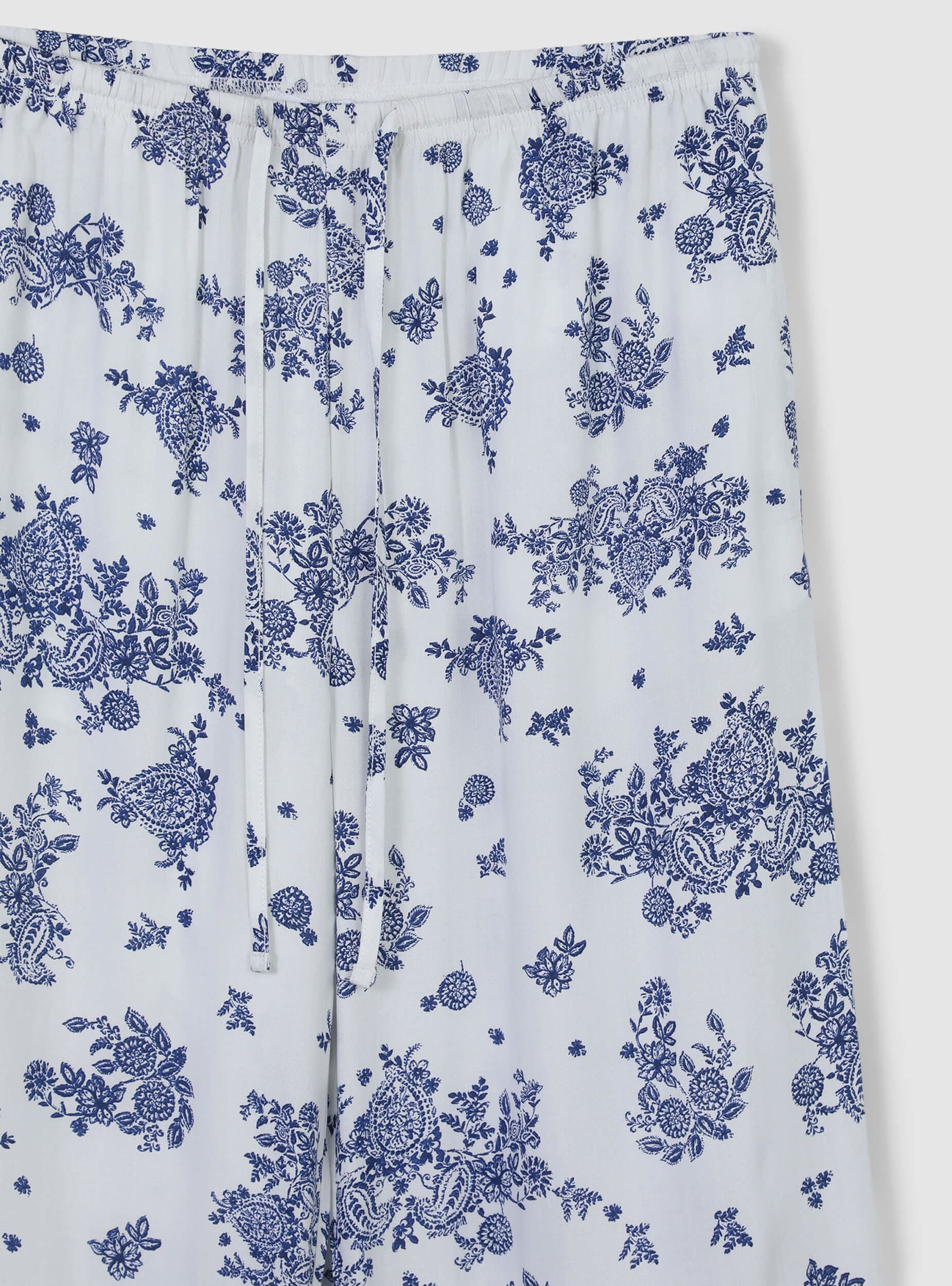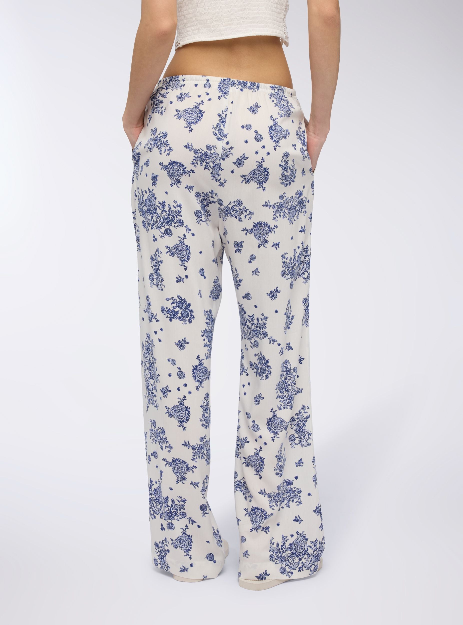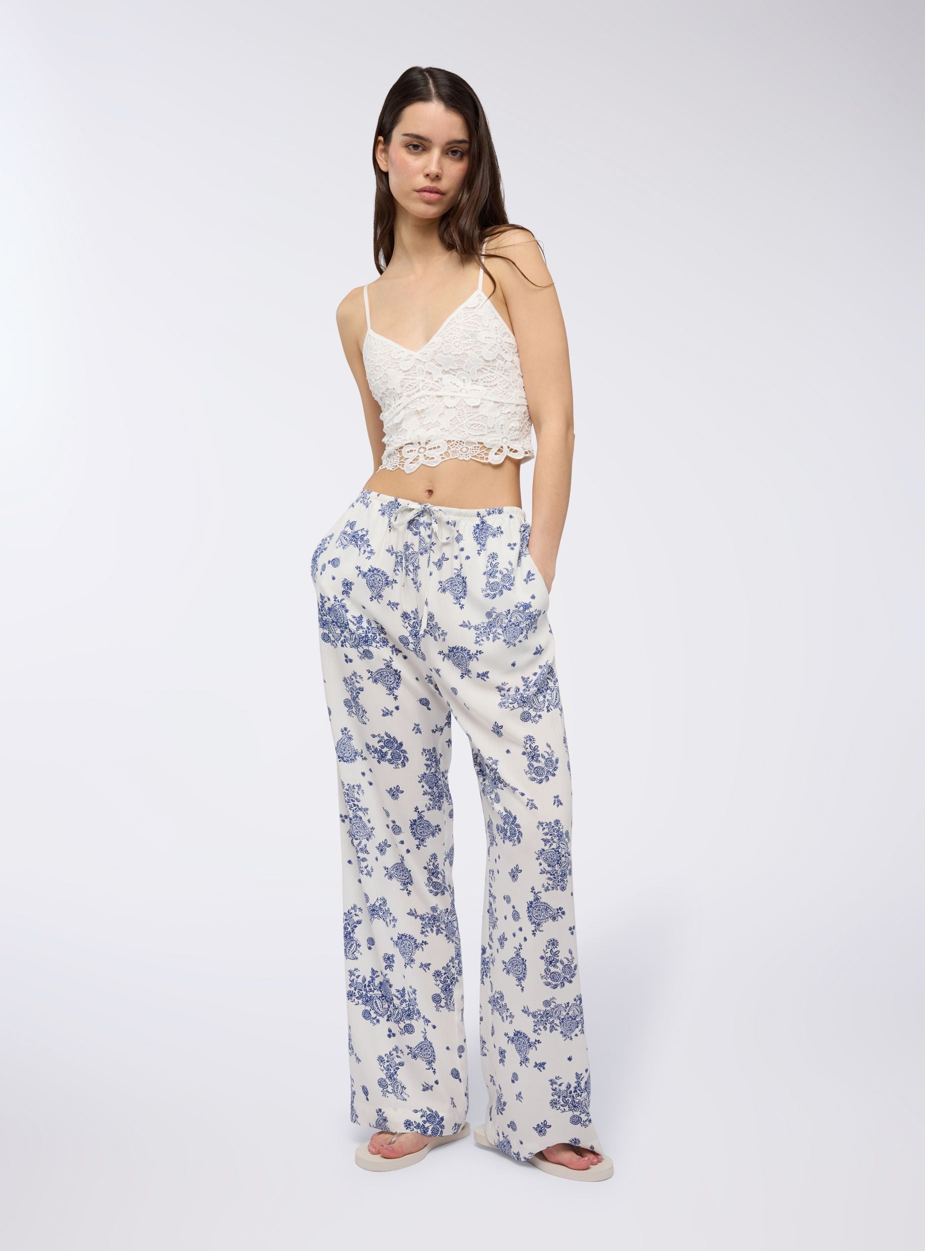 Pantaloni da donna wide leg con fantasia elegante, perfetti per un look raffinato e originale. La vestibilità ampia garantisce comfort e libertà di movimento, mentre la coulisse regolabile in vita permette una vestibilità personalizzata. Dotati di tasche laterali pratiche, si abbinano facilmente a top aderenti o camicie fluide per un outfit casual-chic. Ideali per il tempo libero o occasioni speciali.Dettagli
