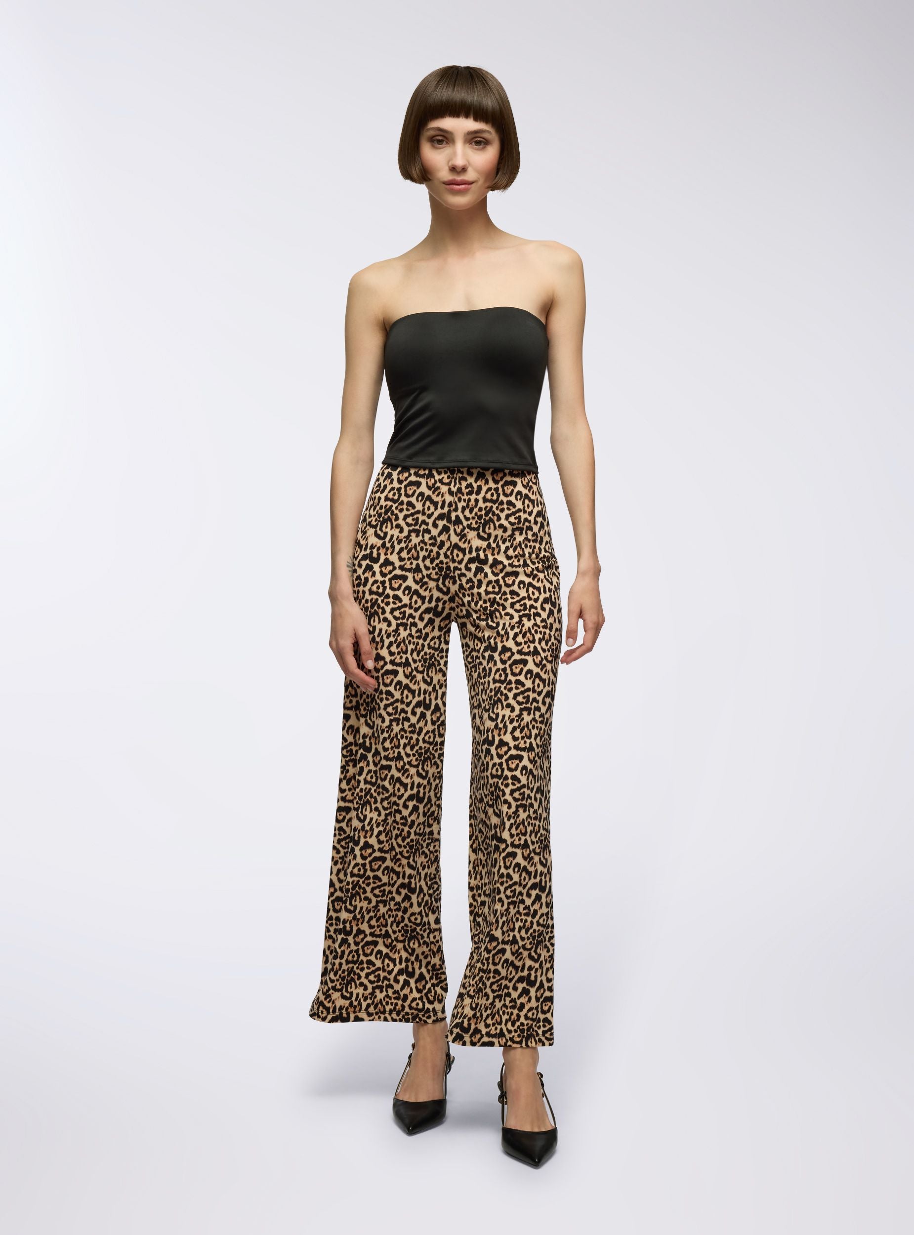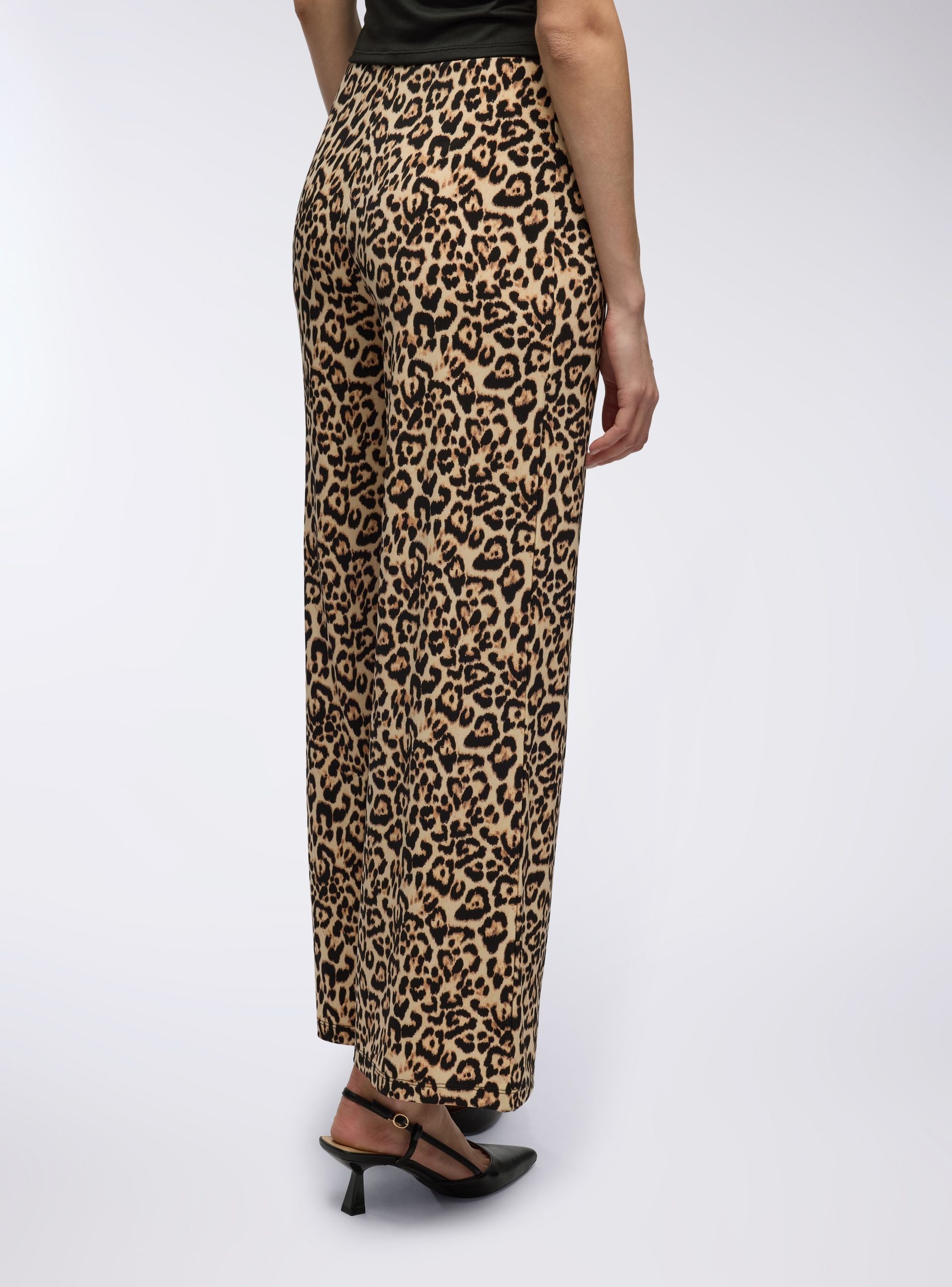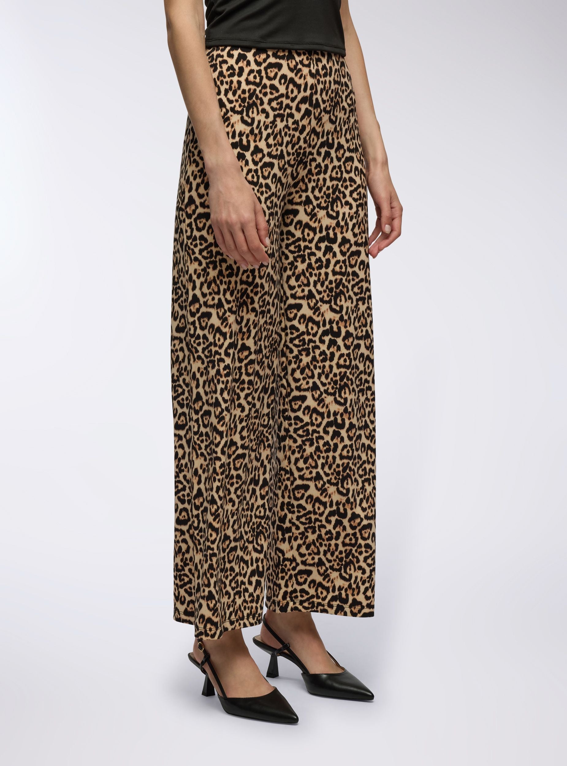 Pantaloni da donna, modello wide leg, realizzati in tessuto elasticizzato. Sono ideali per un look trendy e audace, perfetti per il tempo libero o per un outfit casual. Caratterizzati da una vestibilità ampia, presentano un design con stampa animalier. Una scelta versatile per chi cerca stile e comfort in ogni occasione..Dettagli