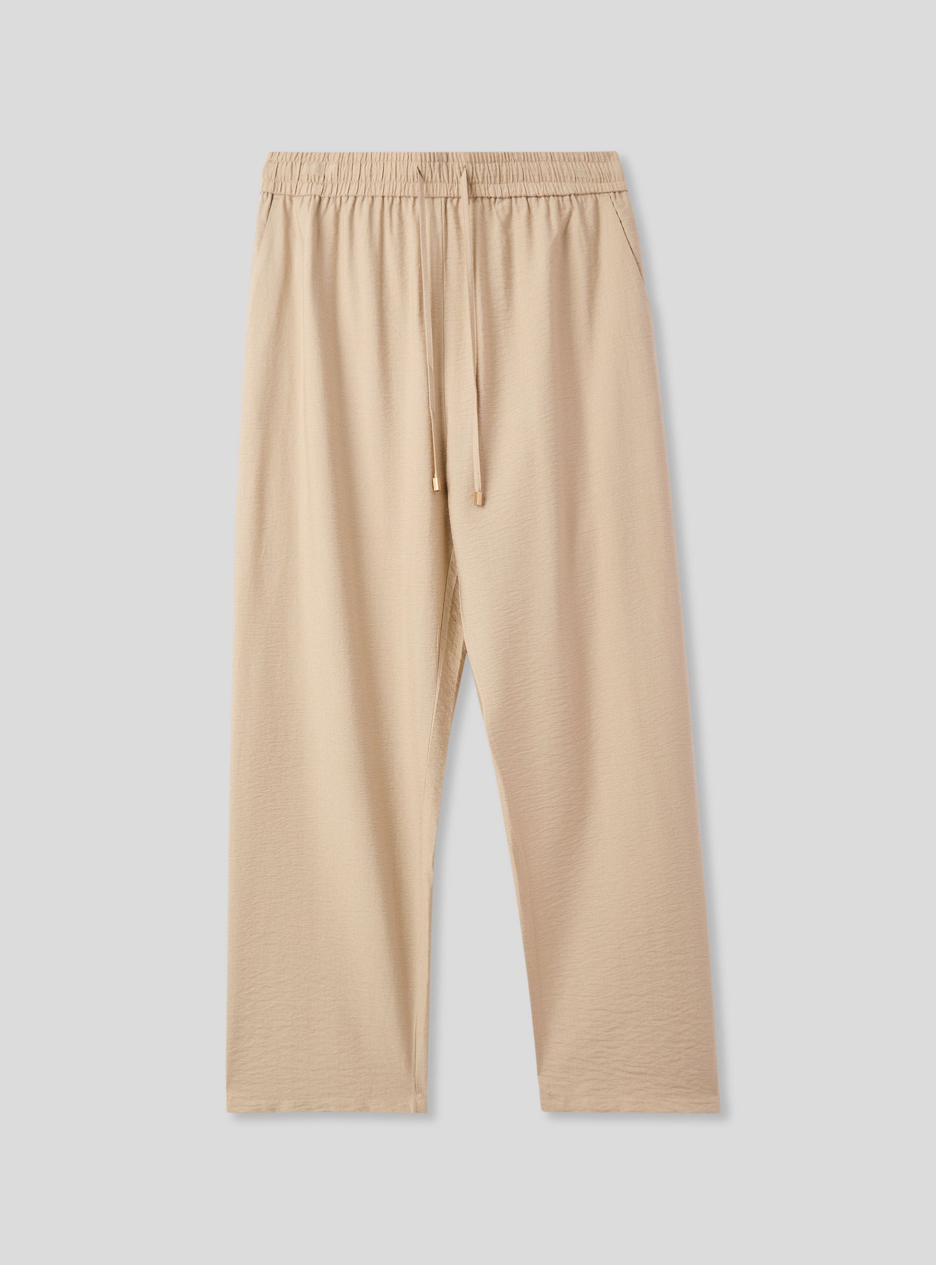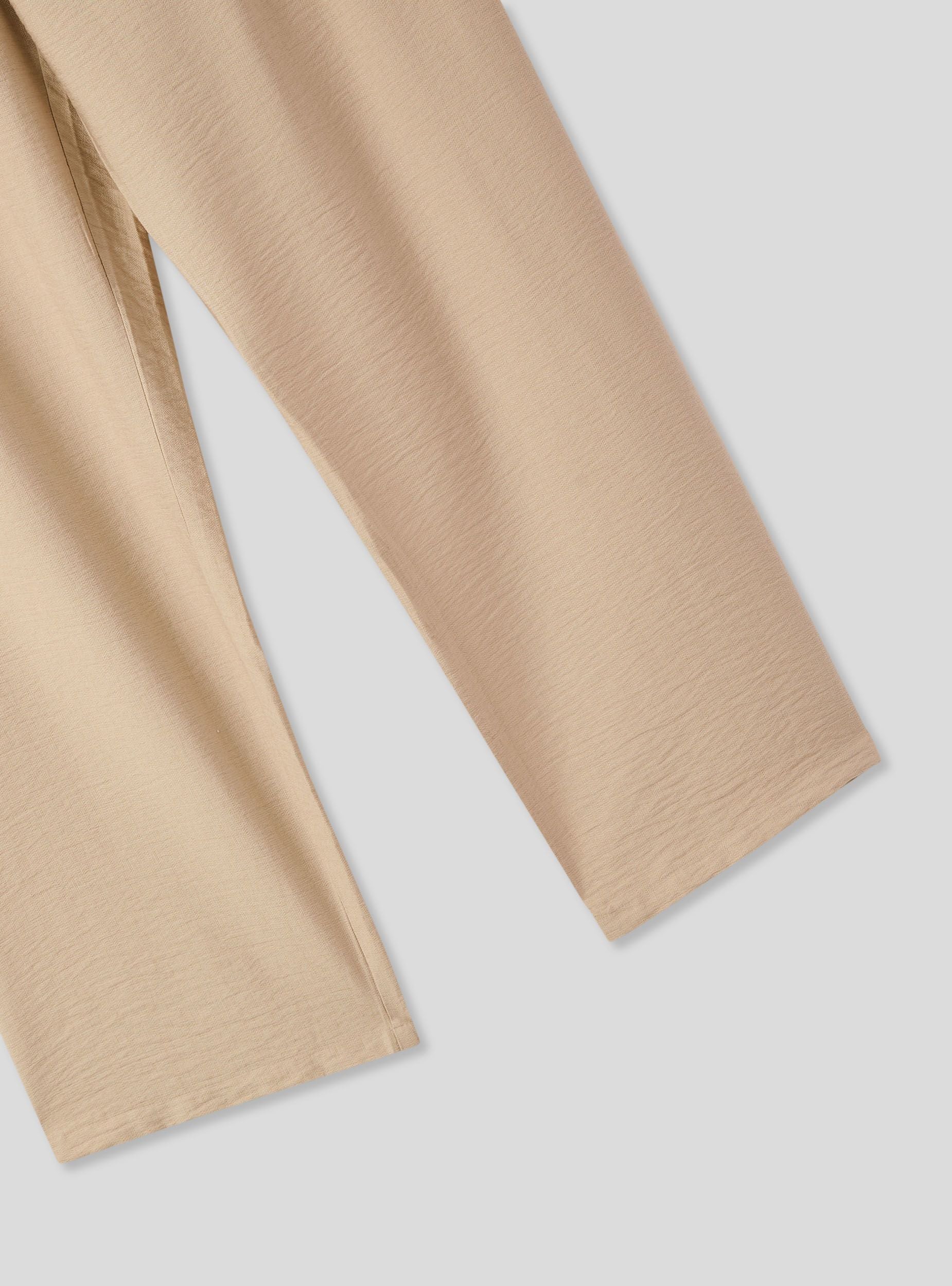 Pantaloni da donna dal taglio wide leg, perfetti per creare look freschi e rilassati. La vita elasticizzata con coulisse assicura una vestibilità confortevole e regolabile, mentre le tasche laterali aggiungono praticità. Il design a tinta unita e l'effetto lino li rendono ideali per outfit casual da giorno, perfetti con una t-shirt e sandali o con una camicia leggera per un tocco più sofisticato.Dettagli