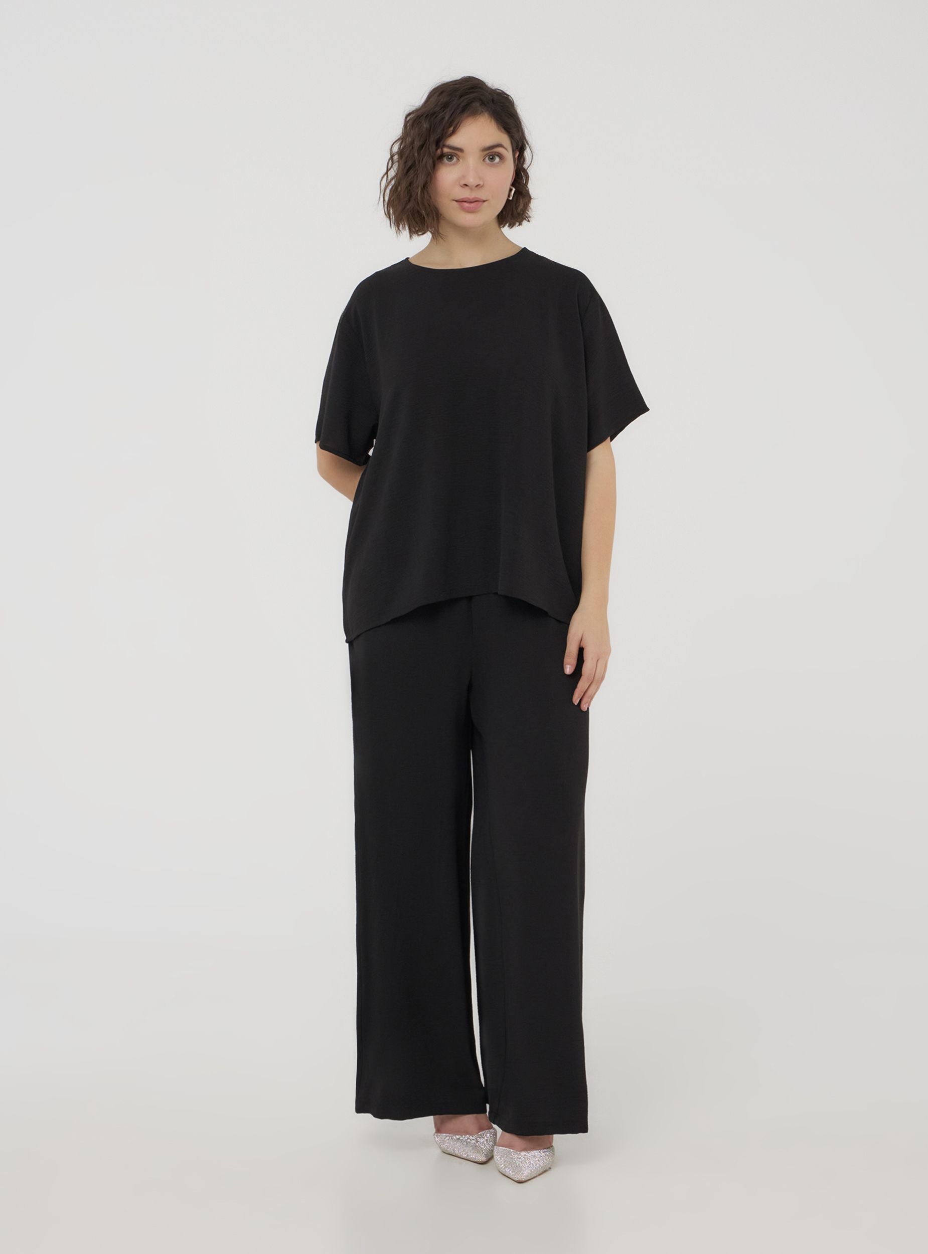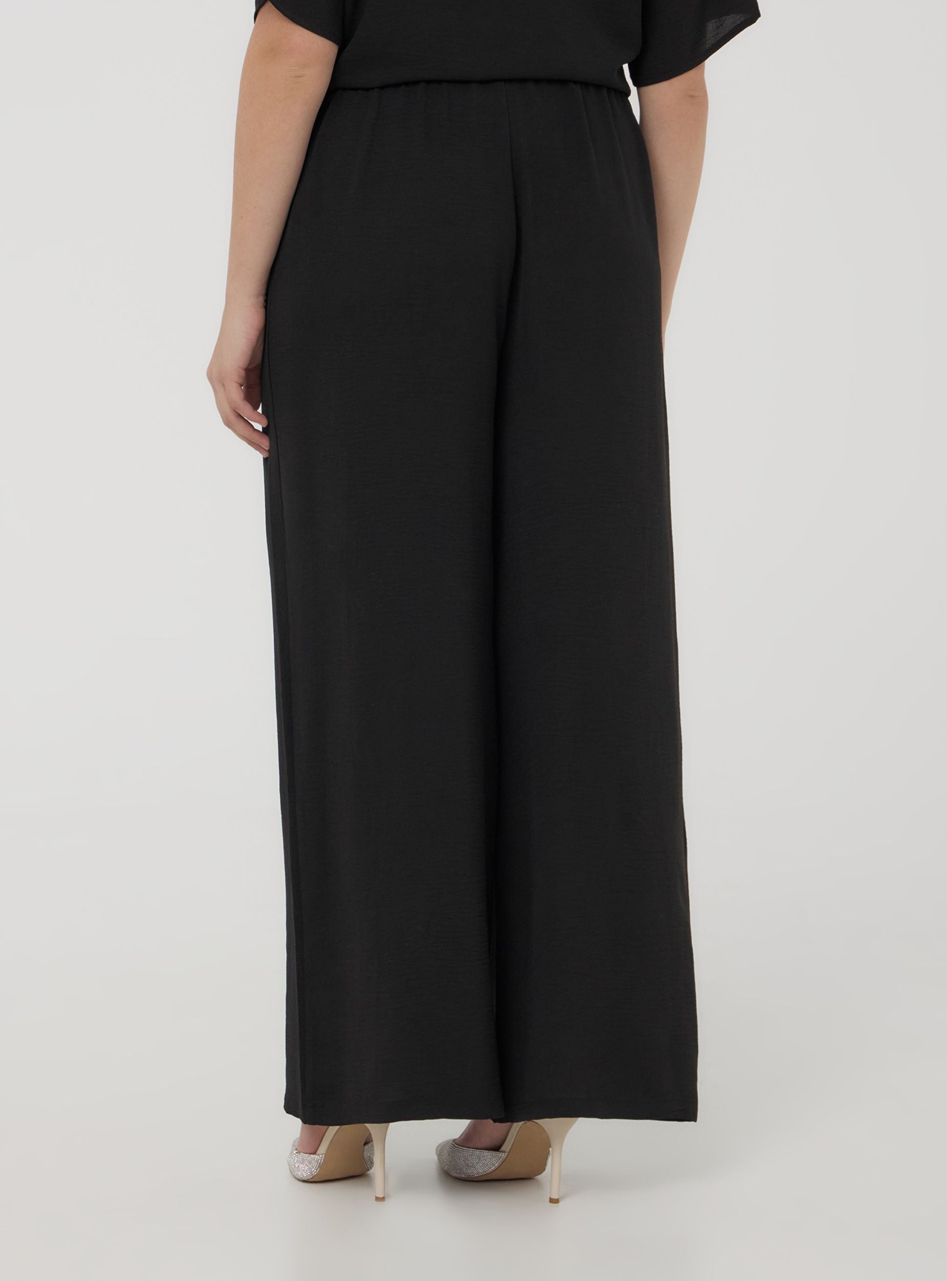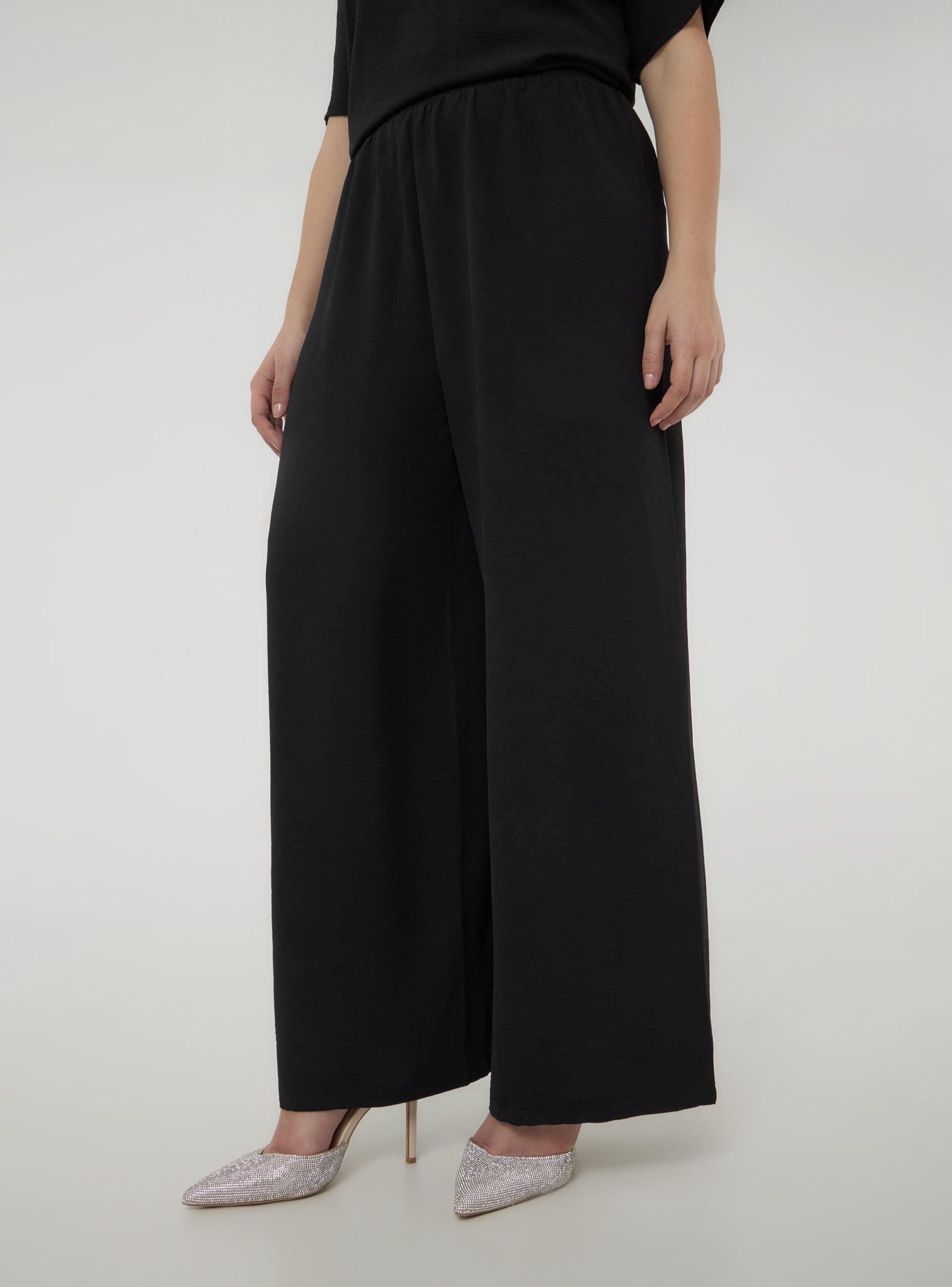 Pantaloni da donna dal taglio wide leg, perfetti per chi cerca comfort e stile in un unico capo. La vita elasticizzata garantisce una vestibilità pratica e adatta a diverse silhouette, mentre il design a tinta unita li rende ideali per creare outfit versatili. Da abbinare con bluse leggere e sandali per un look raffinato o con t-shirt e sneakers per un tocco casual. Perfetti per il tempo libero, giornate in città o occasioni informali, aggiungono un tocco di eleganza senza rinunciare alla comodità.Dettagli