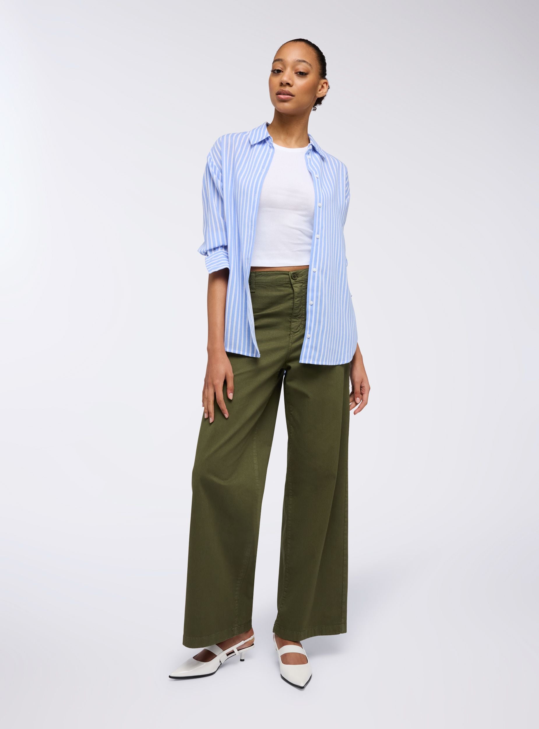 Pantaloni da donna con design moderno e versatile. Ideali per un look casual o urbano, si abbinano perfettamente a camicie o magliette per un outfit comodo e alla moda. La vestibilità ampia e il taglio lungo li rendono adatti a diverse occasioni, garantendo comfort e stile. Perfetti per essere indossati con scarpe basse o tacchi per un tocco di eleganza.Dettagli