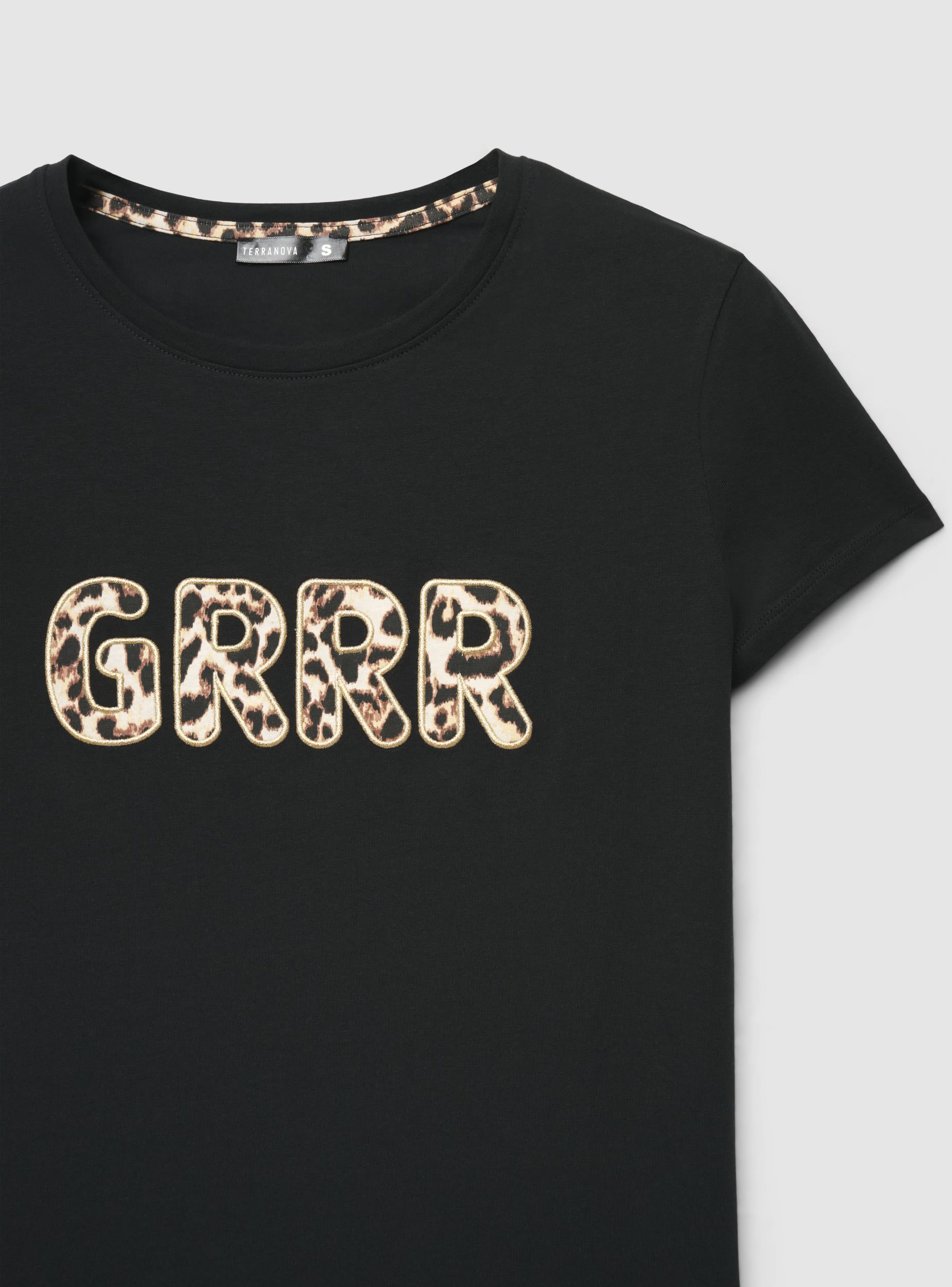 Pigiama da donna composto da maglietta a maniche corte e pantaloncini, ideale per le serate rilassate e il tempo libero a casa. La maglietta presenta collo tondo e grafica con scritta in stampa animalier, vestibilità confortevole e look giocoso. Si abbina a pantaloncini coordinati, perfetti per la stagione calda grazie alla linea pratica e leggera.Dettagli