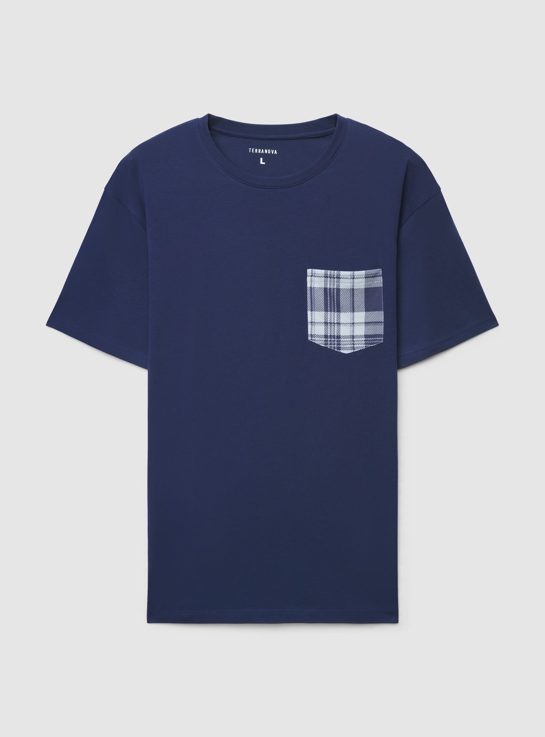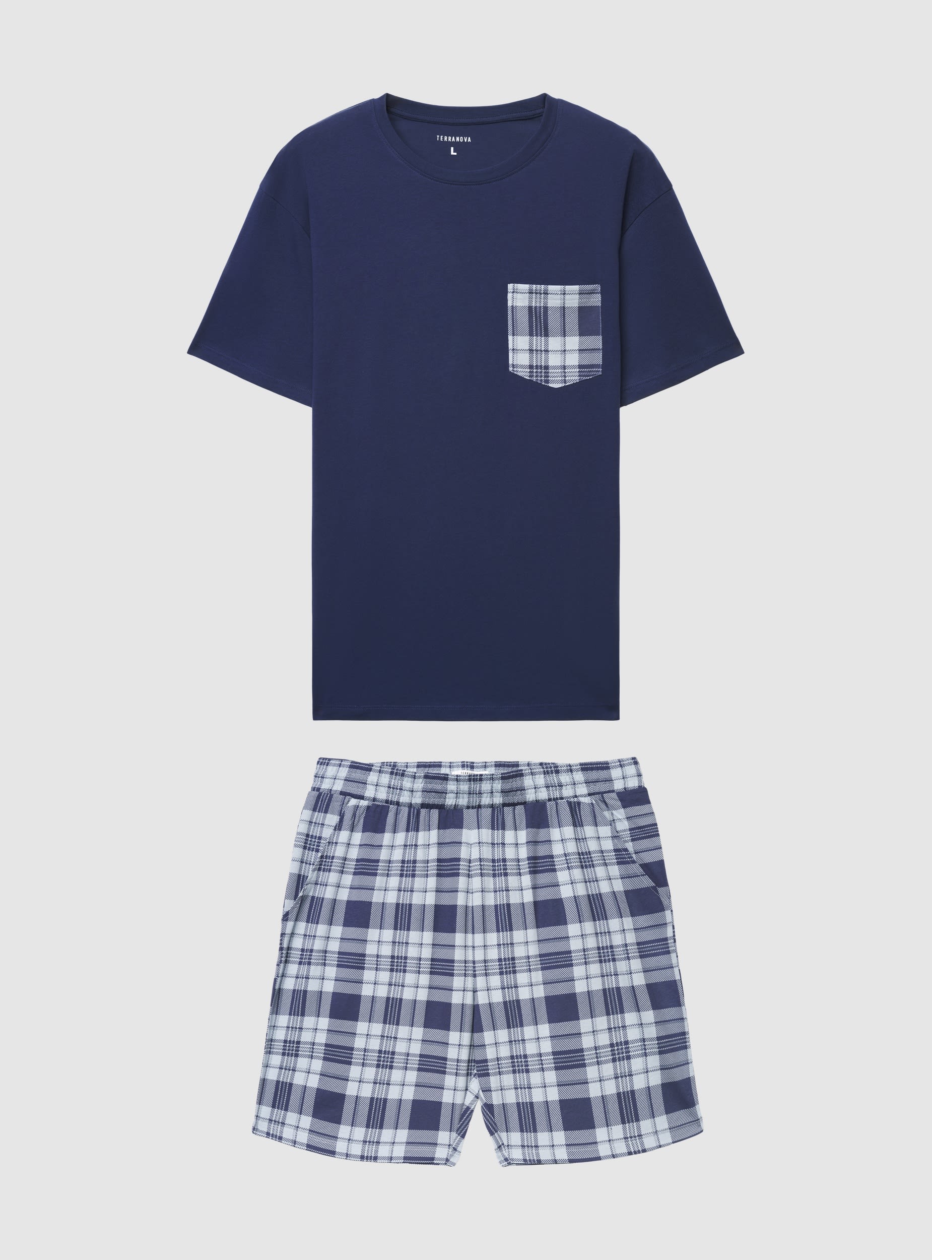 Pigiama da uomo composto da maglietta girocollo a maniche corte con taschino e bermuda coordinati. Il pantaloncino presenta vita con elastico per una vestibilità comoda e tasche laterali pratiche. Il motivo a quadri dona un tocco curato e rilassato, ideale per la notte e per i momenti di relax in casa, da abbinare anche a una vestaglia nelle mezze stagioni.Dettagli